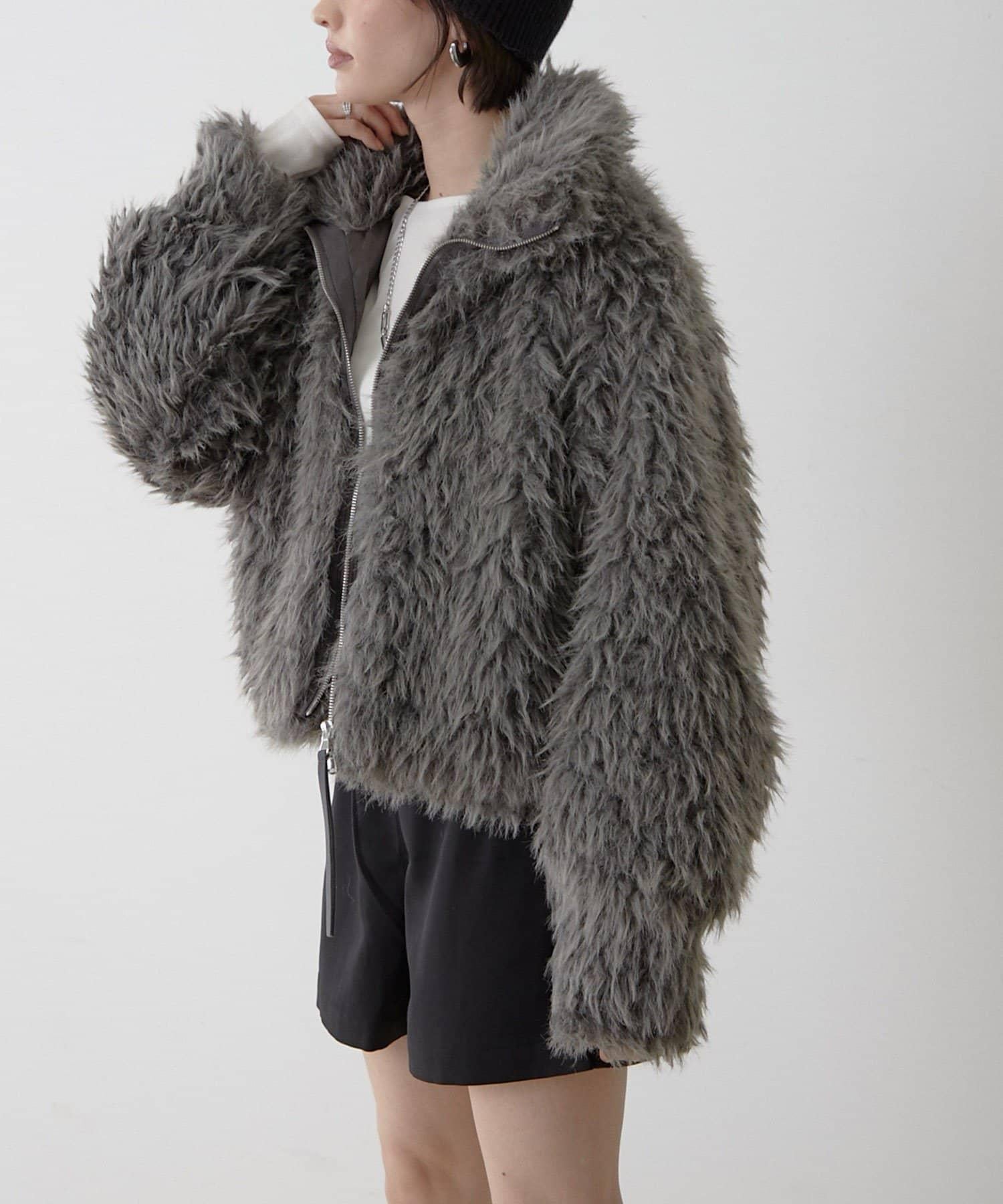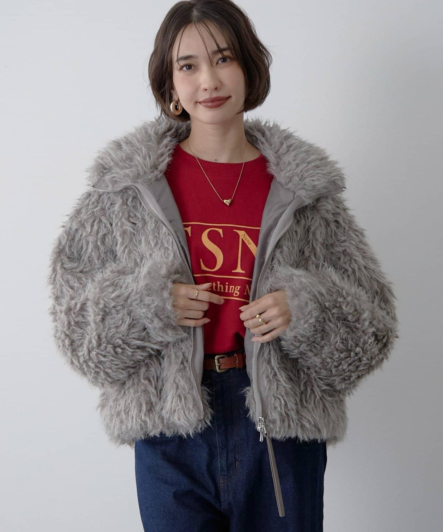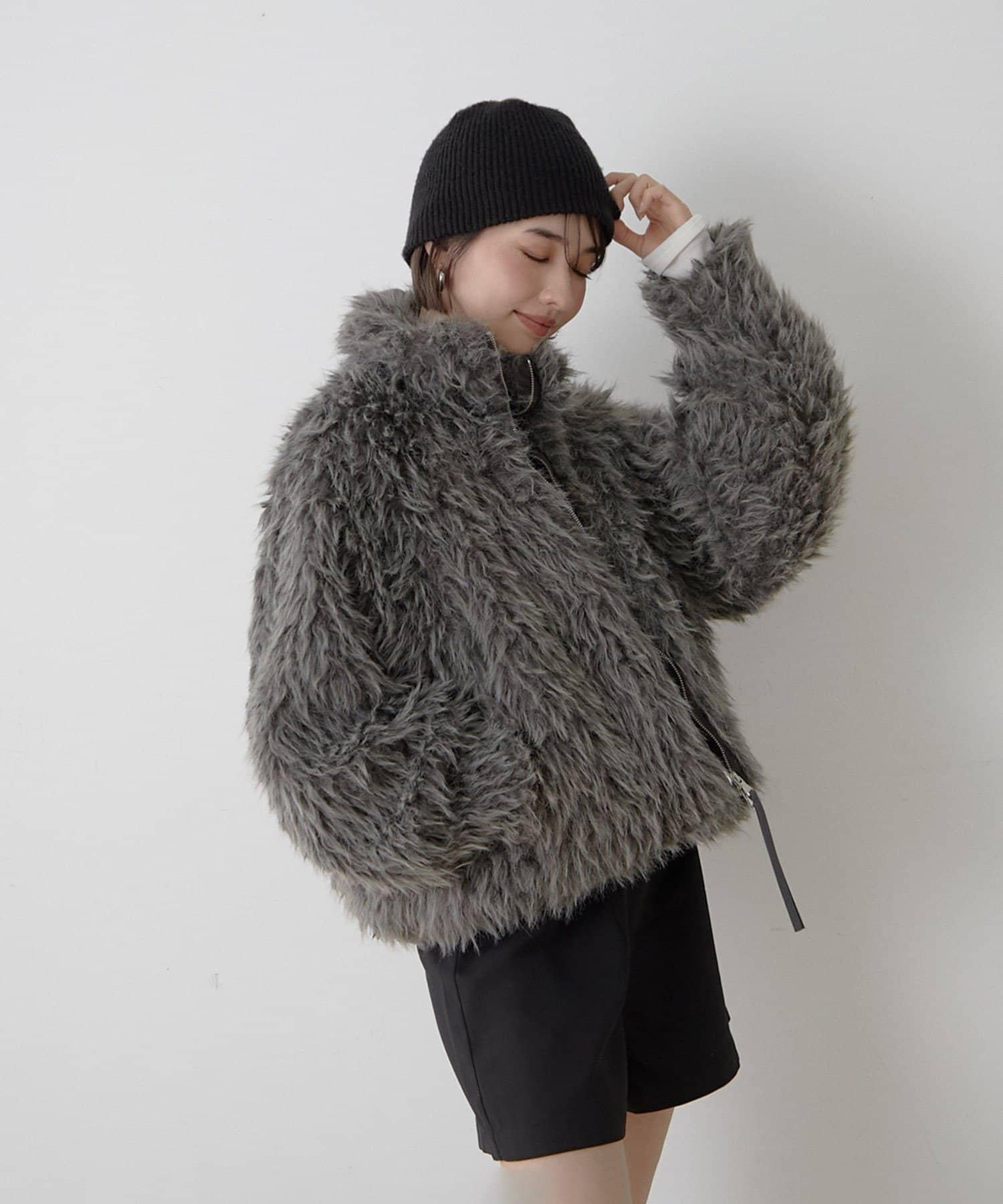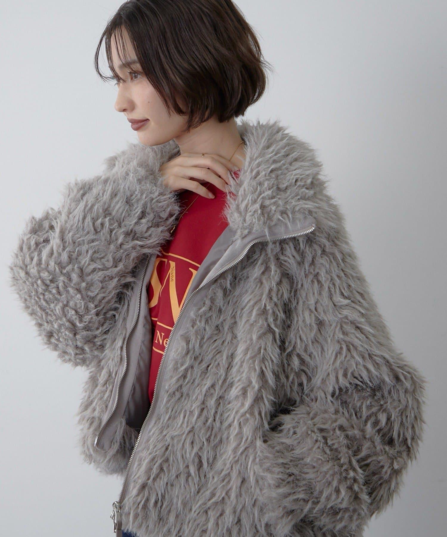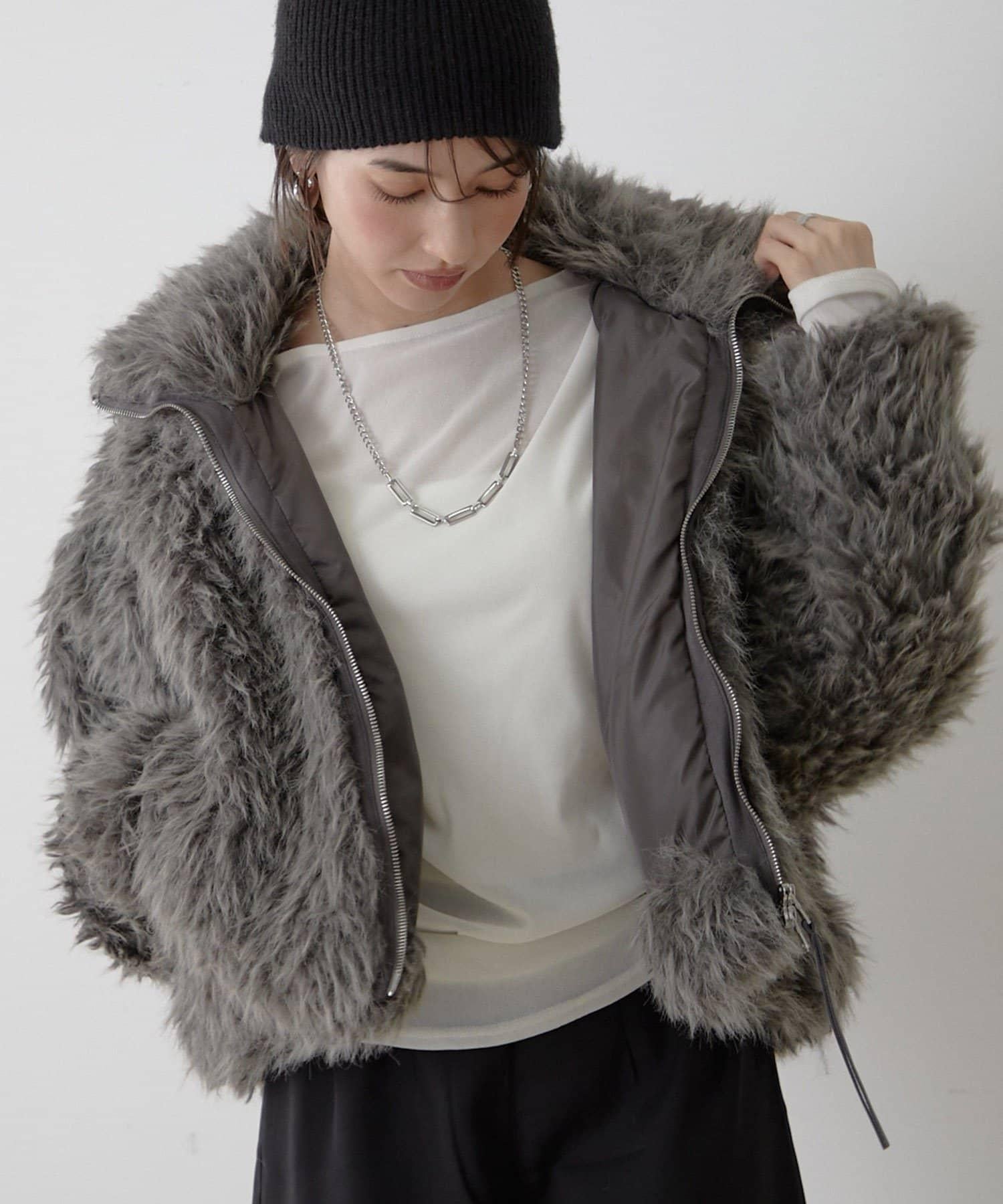 【nane】【Suzuki セレクト】雙拉鍊拼接仿毛皮飛行夾克