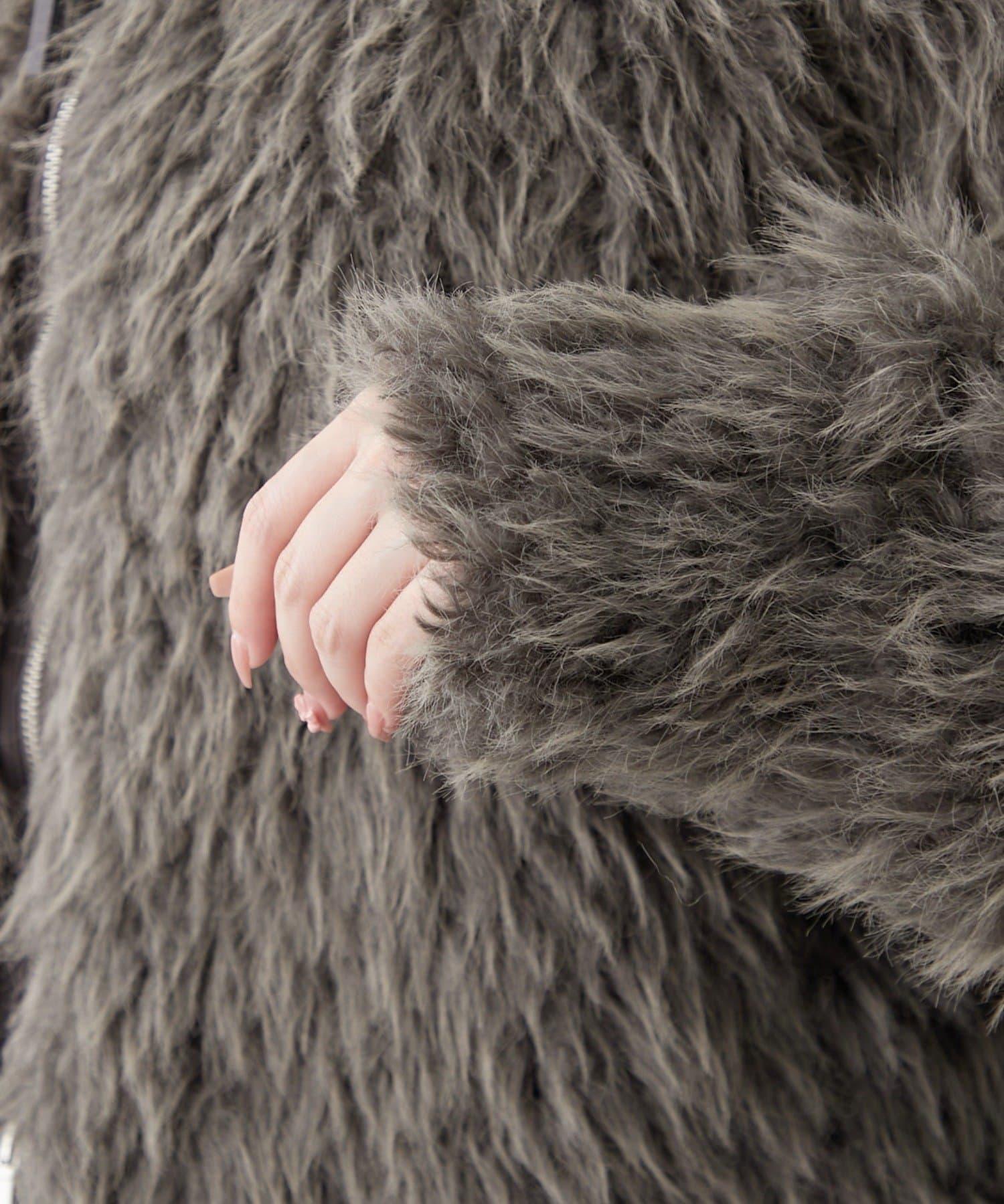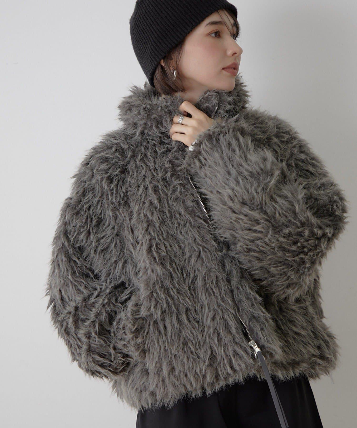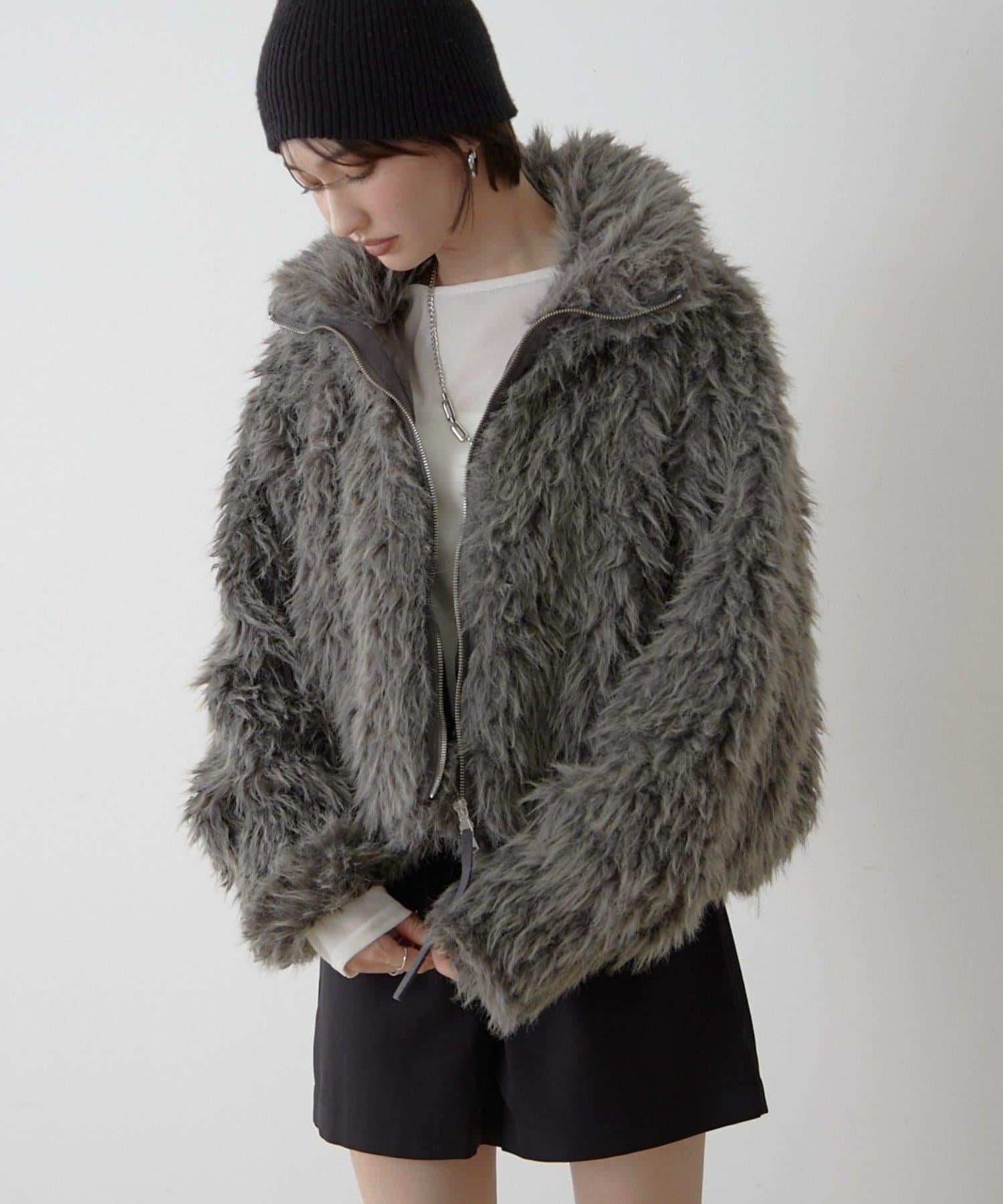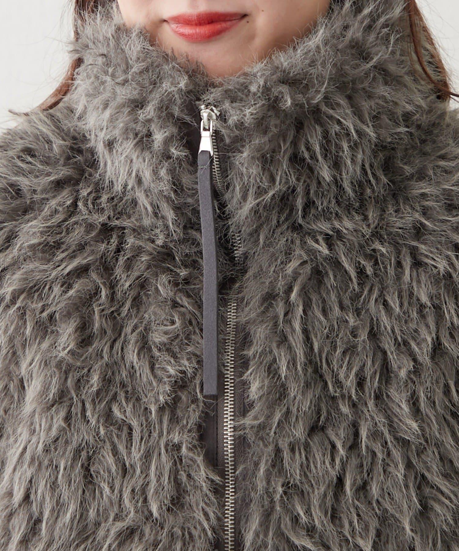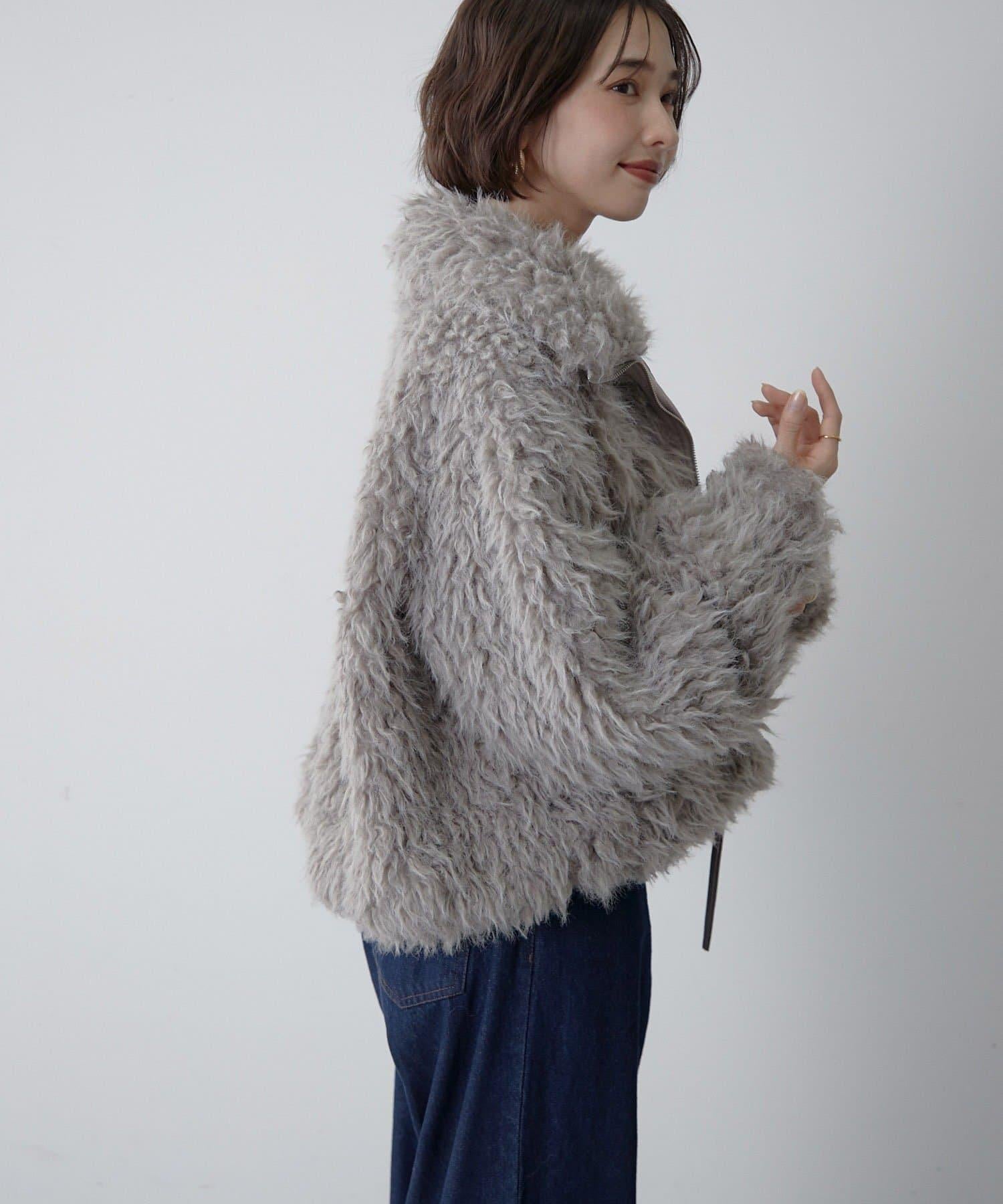 【nane】【Suzuki セレクト】雙拉鍊拼接仿毛皮飛行夾克