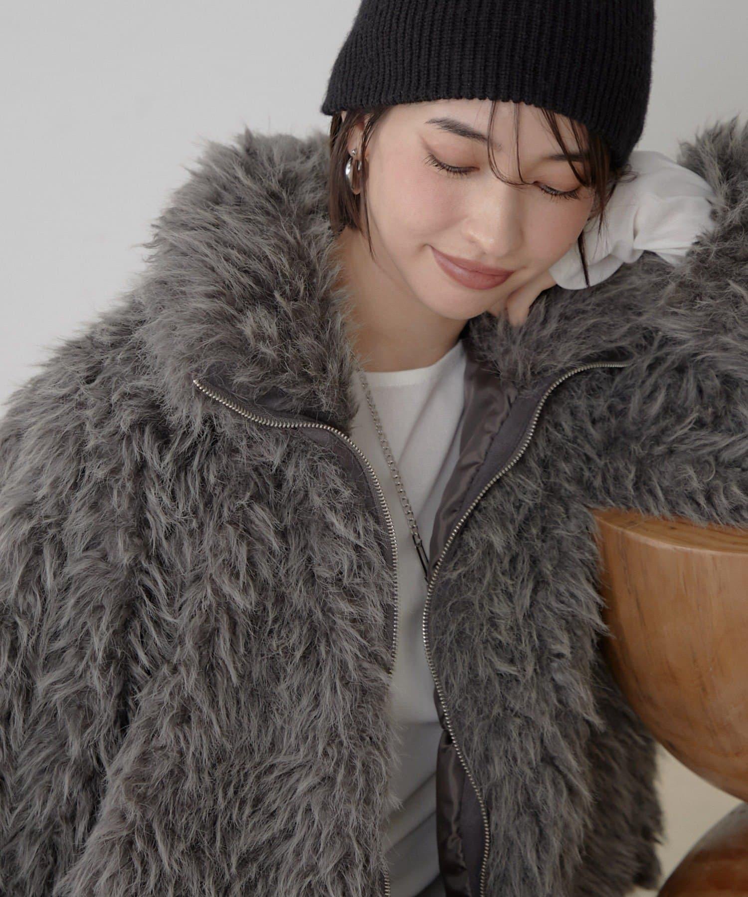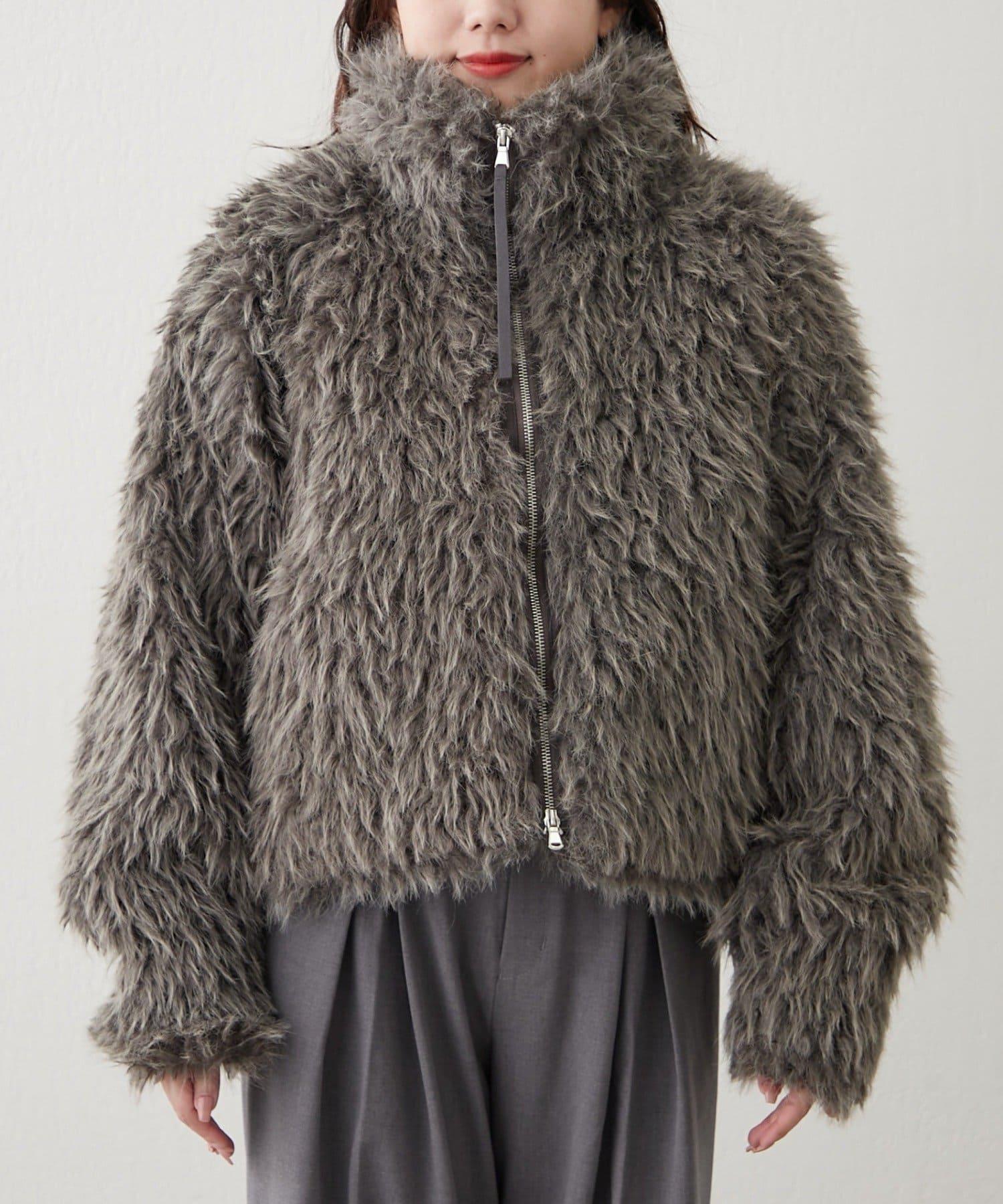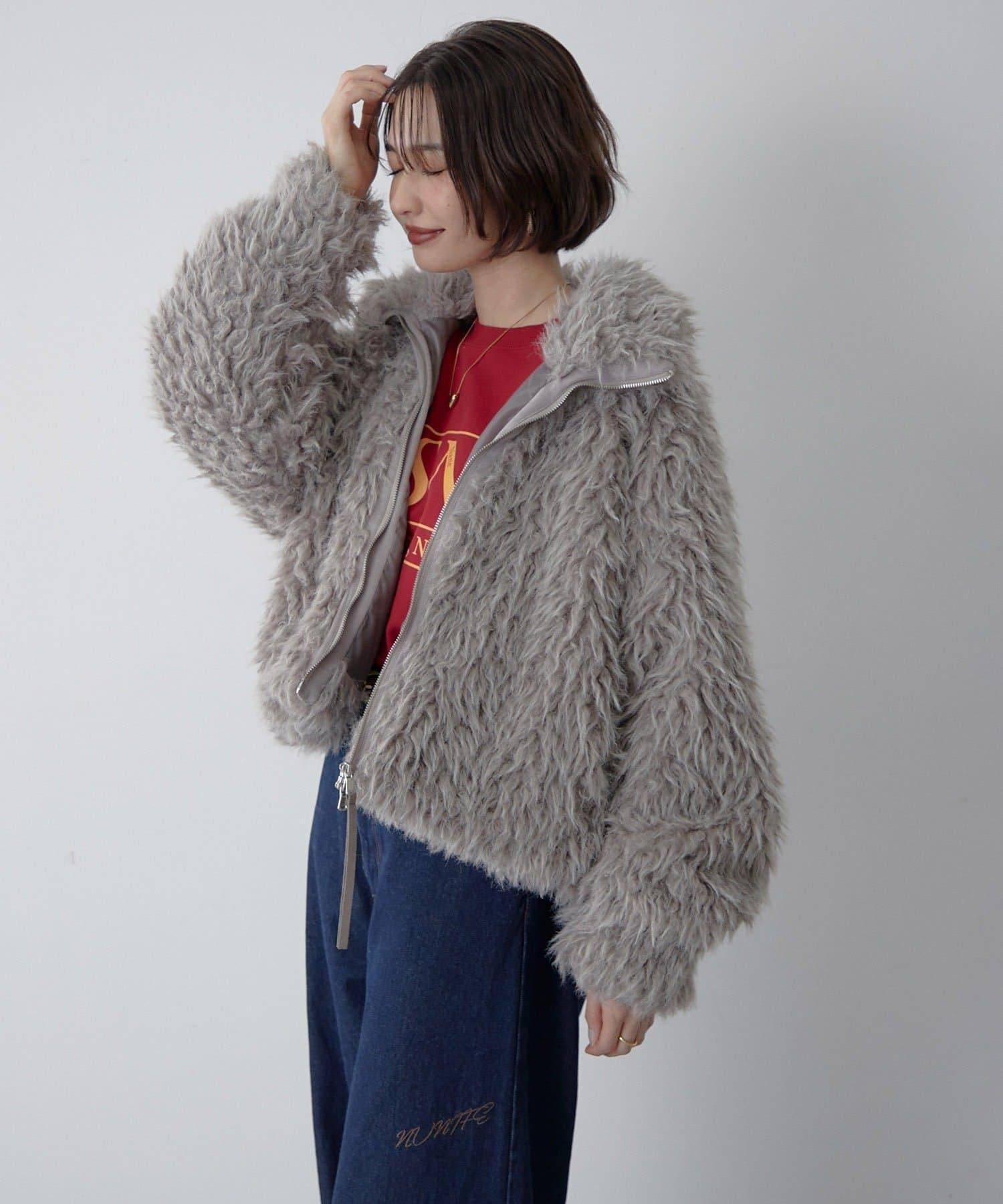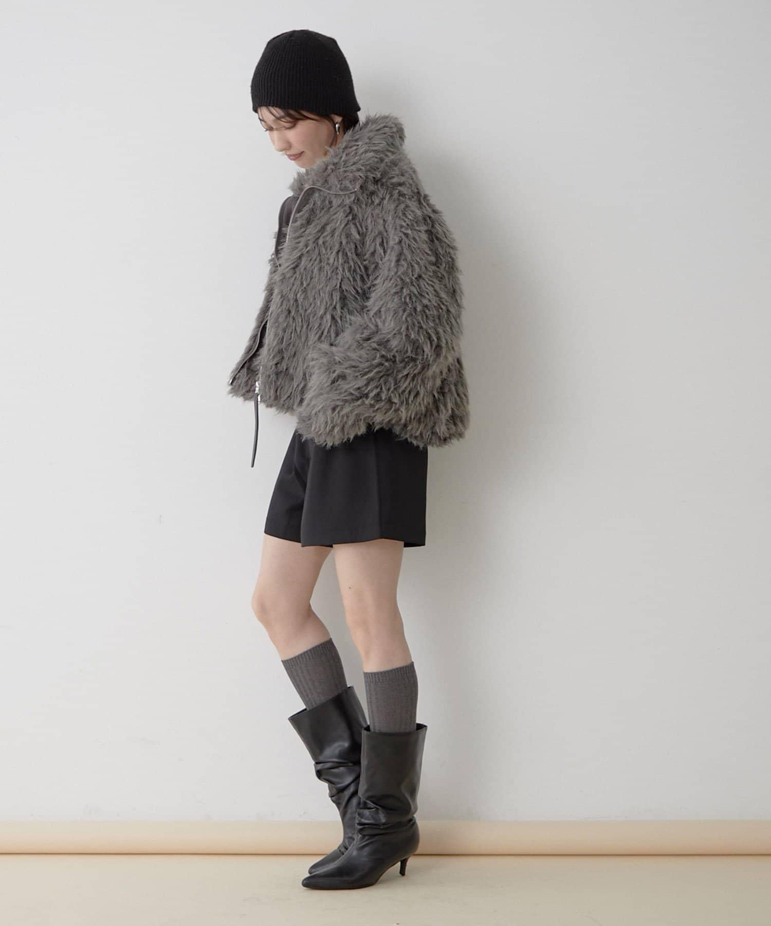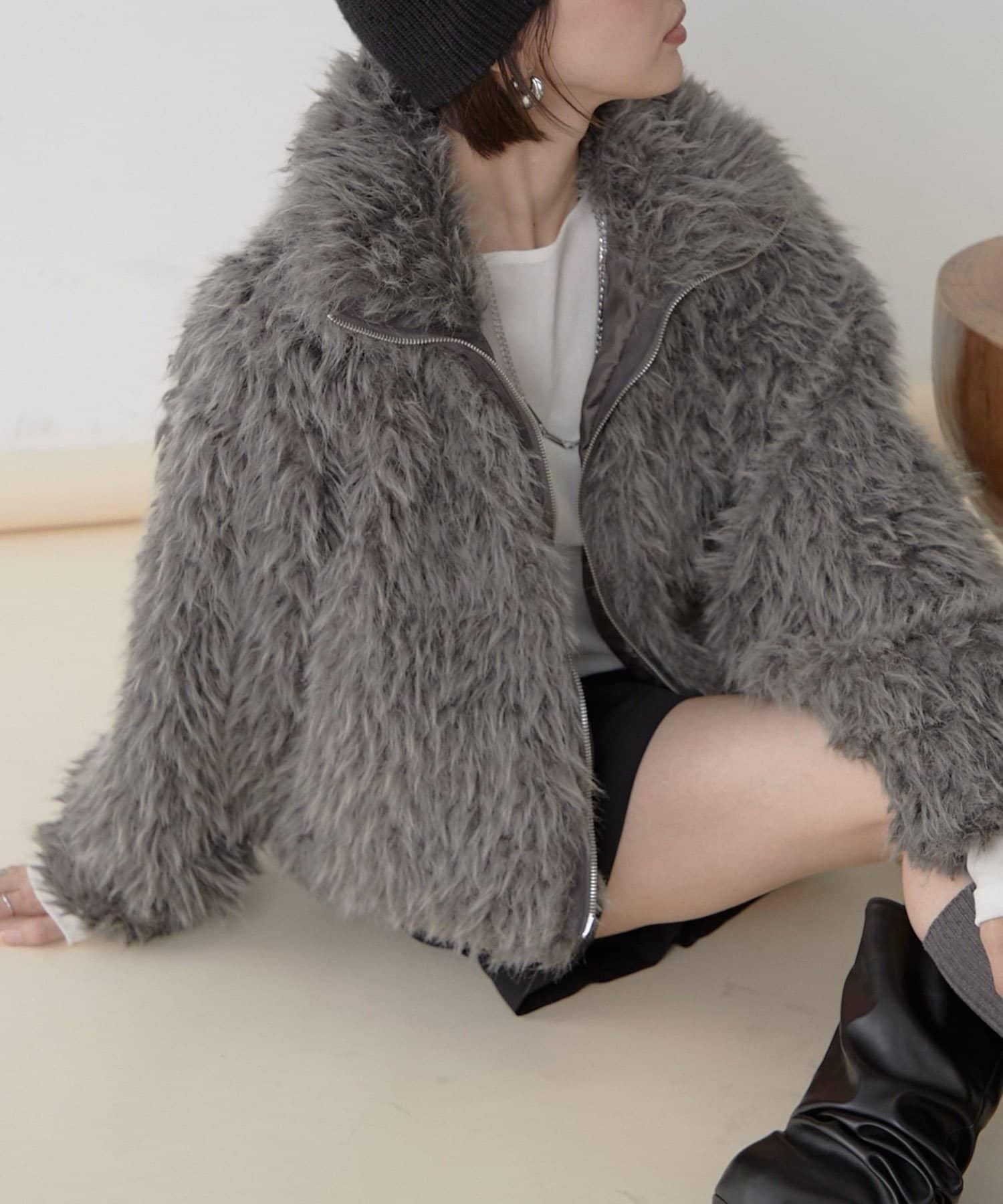【nane】【Suzuki セレクト】雙拉鍊拼接仿毛皮飛行夾克