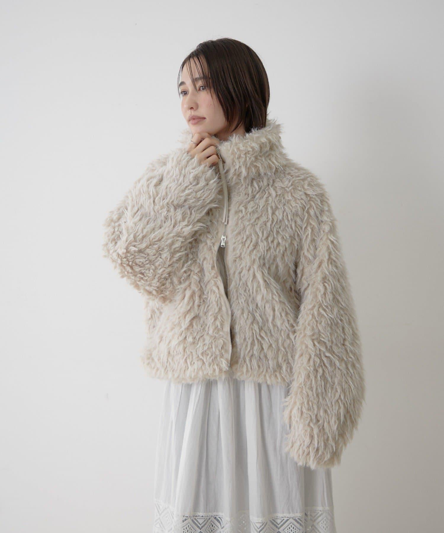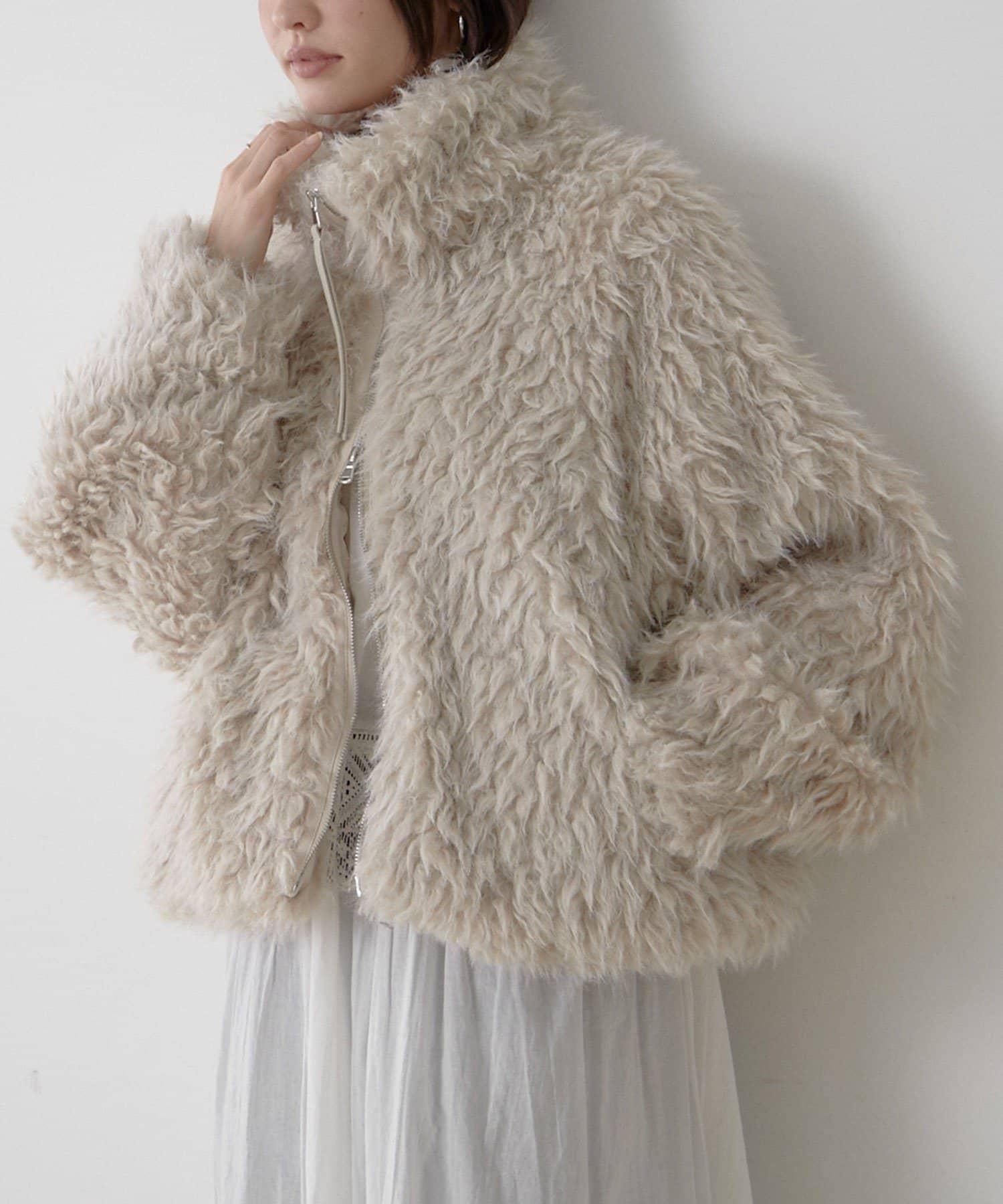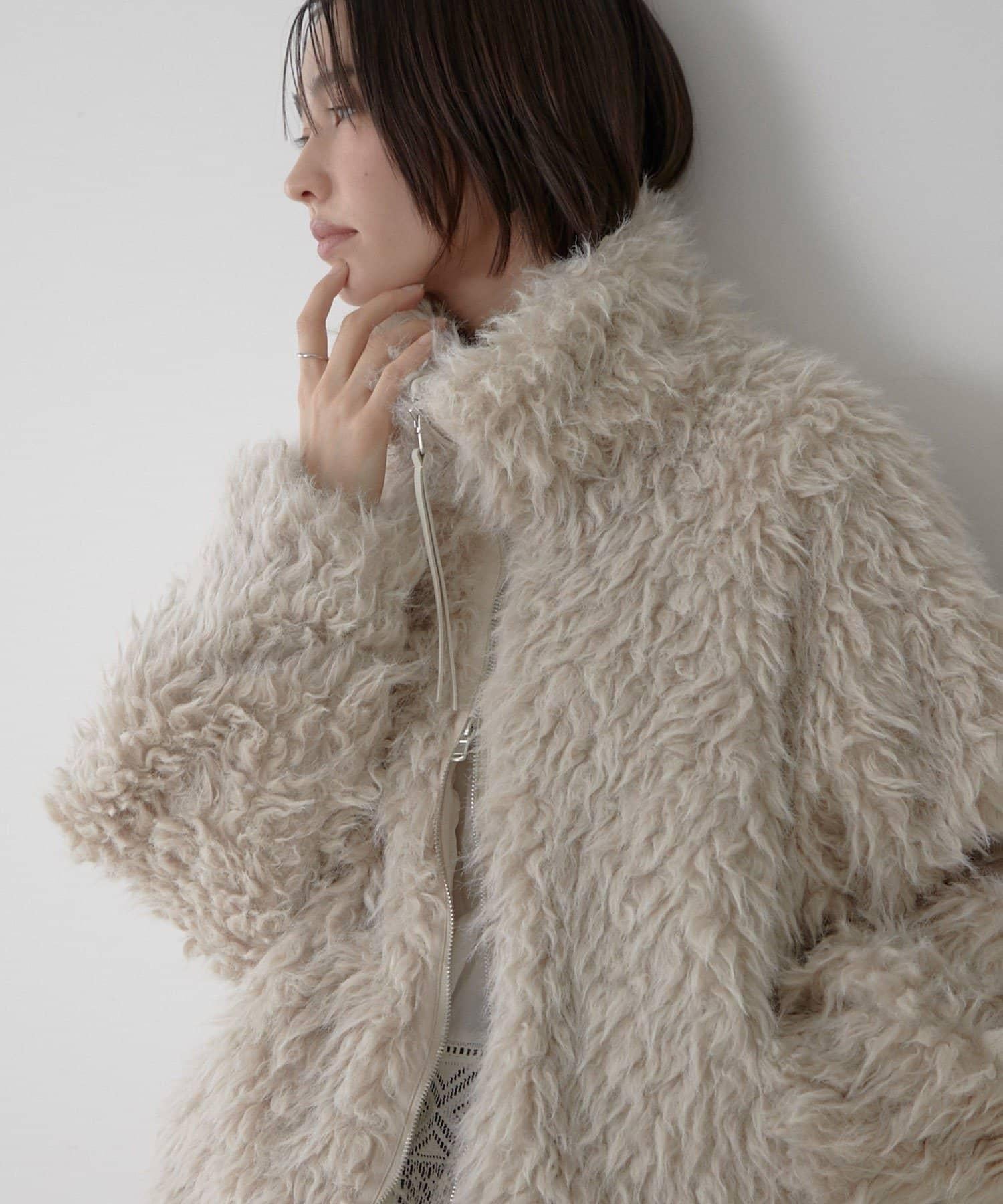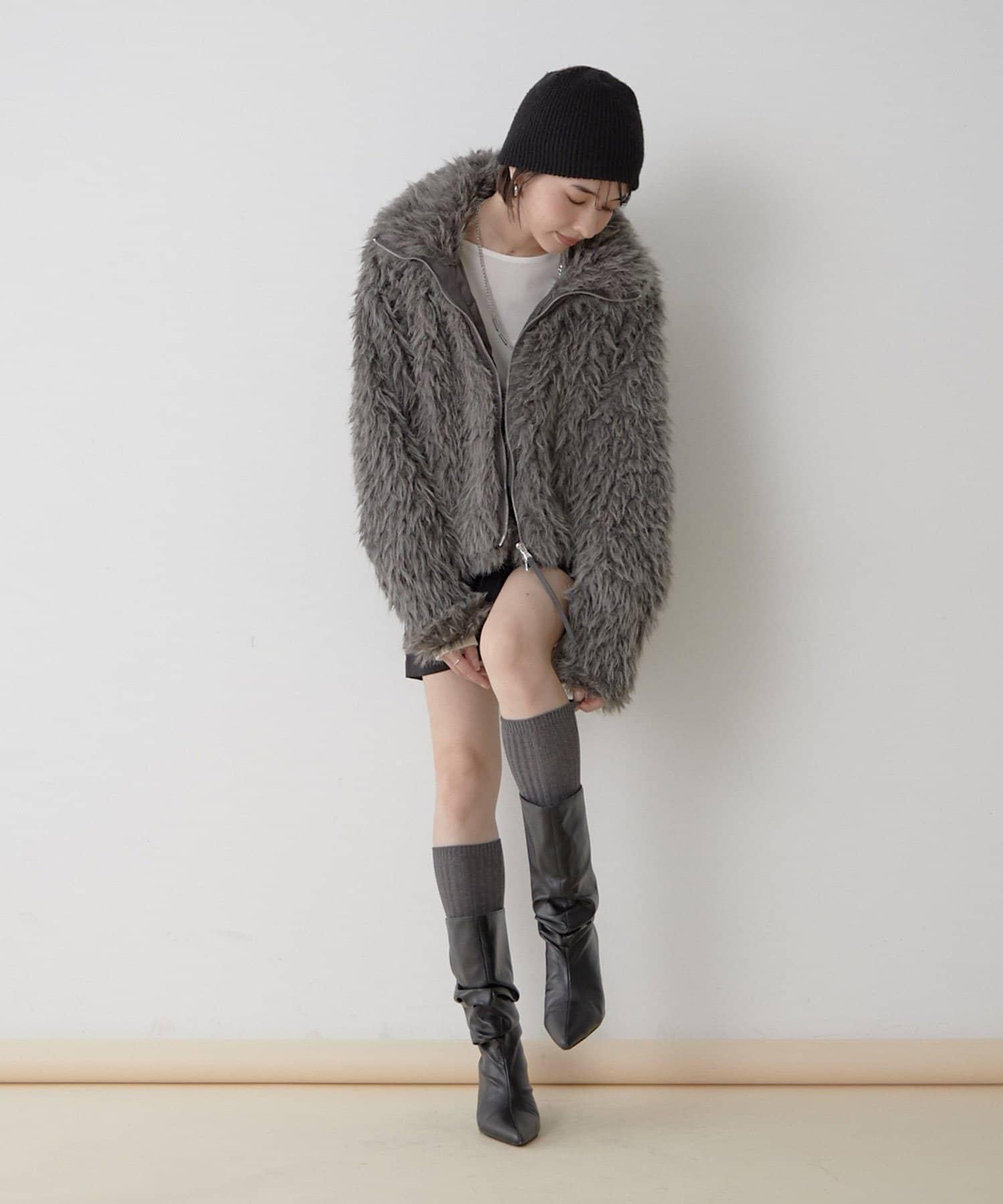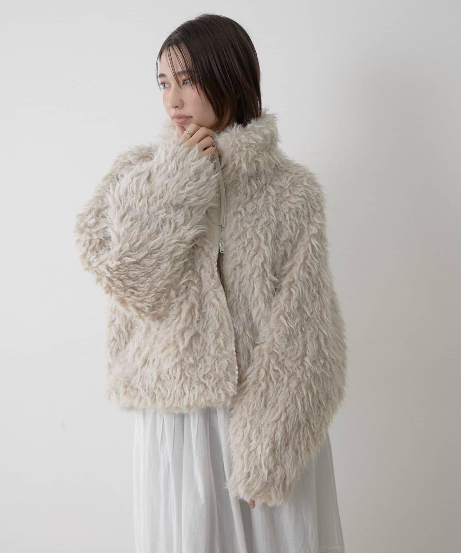 【nane】【Suzuki セレクト】雙拉鍊拼接仿毛皮飛行夾克