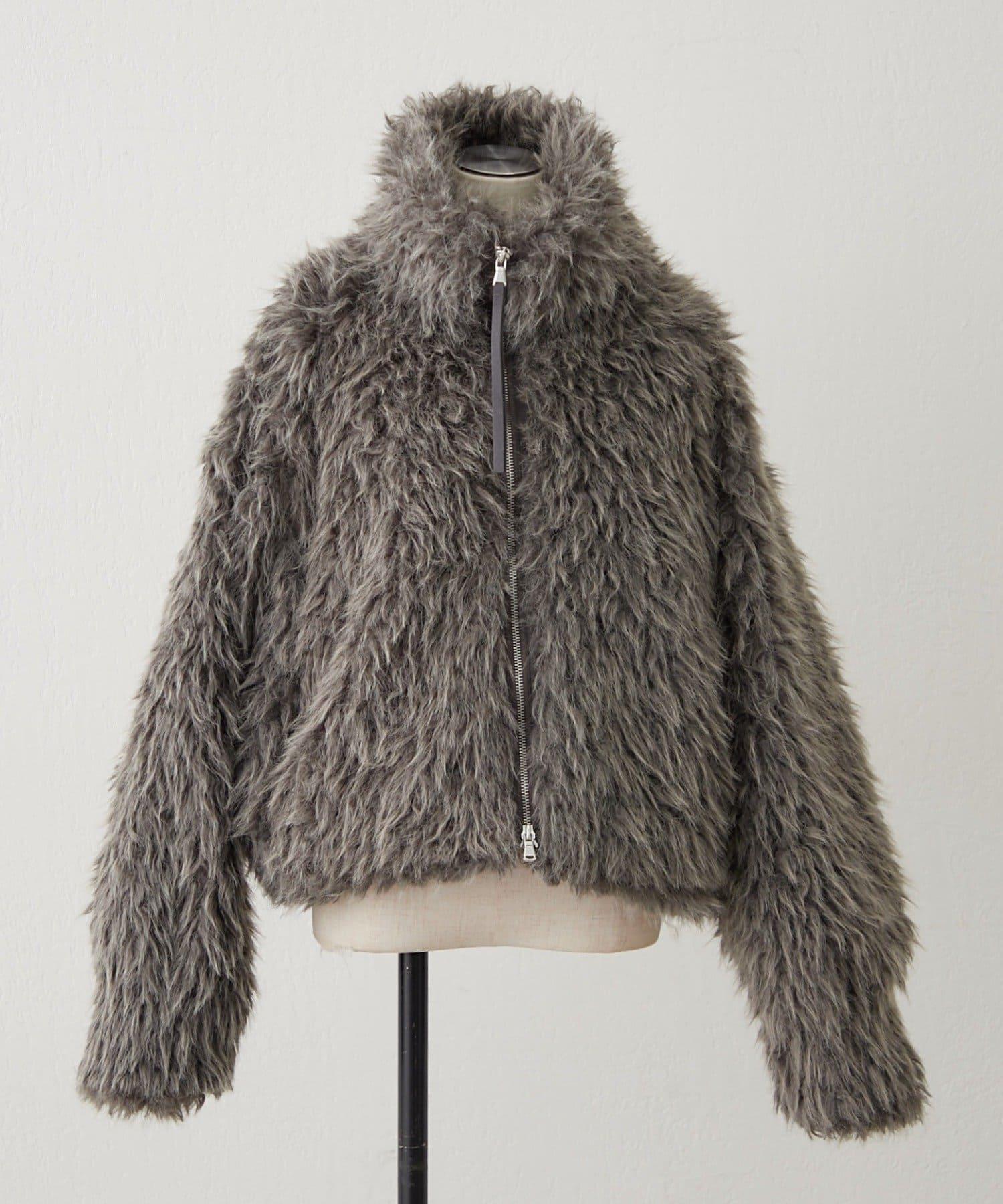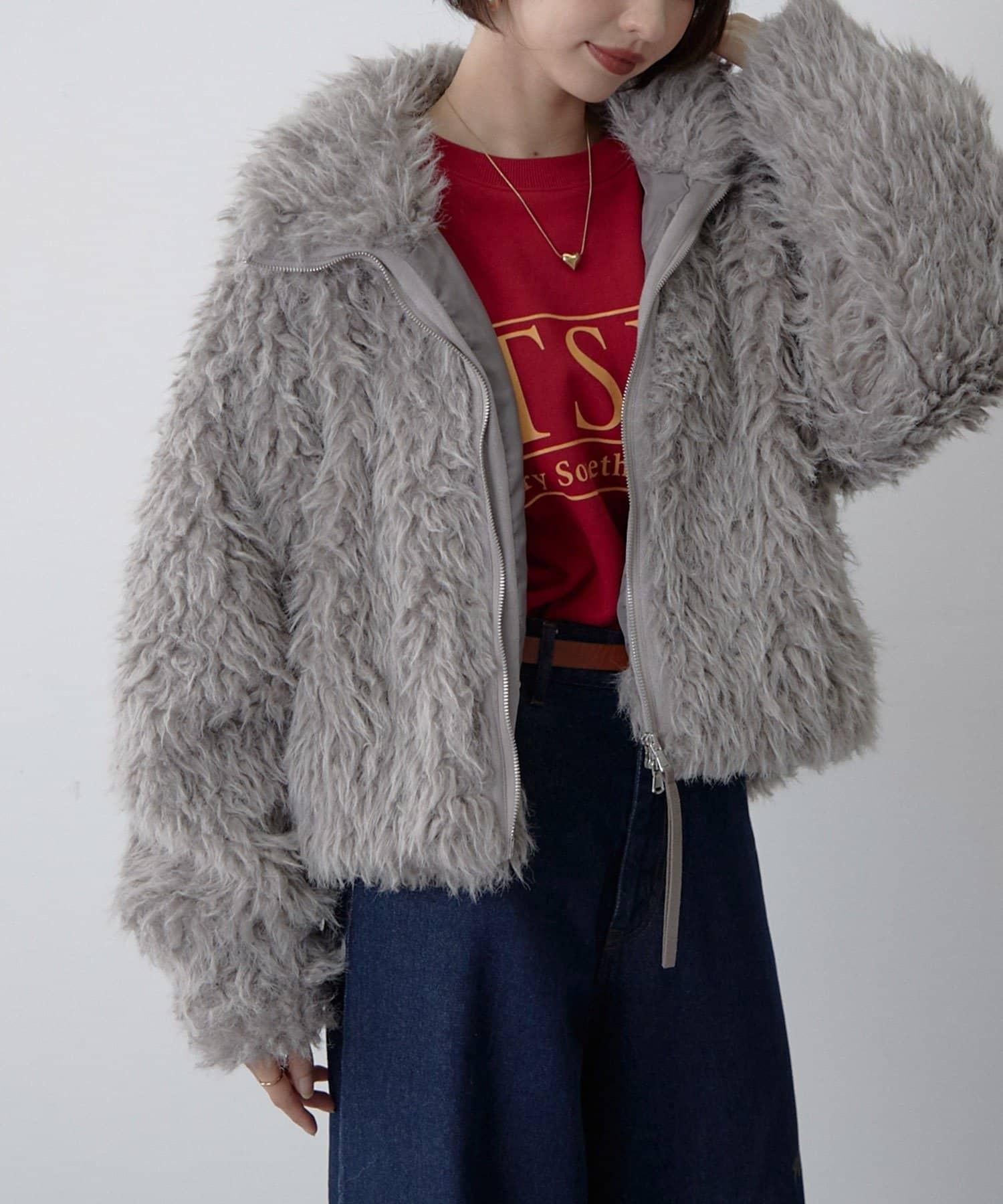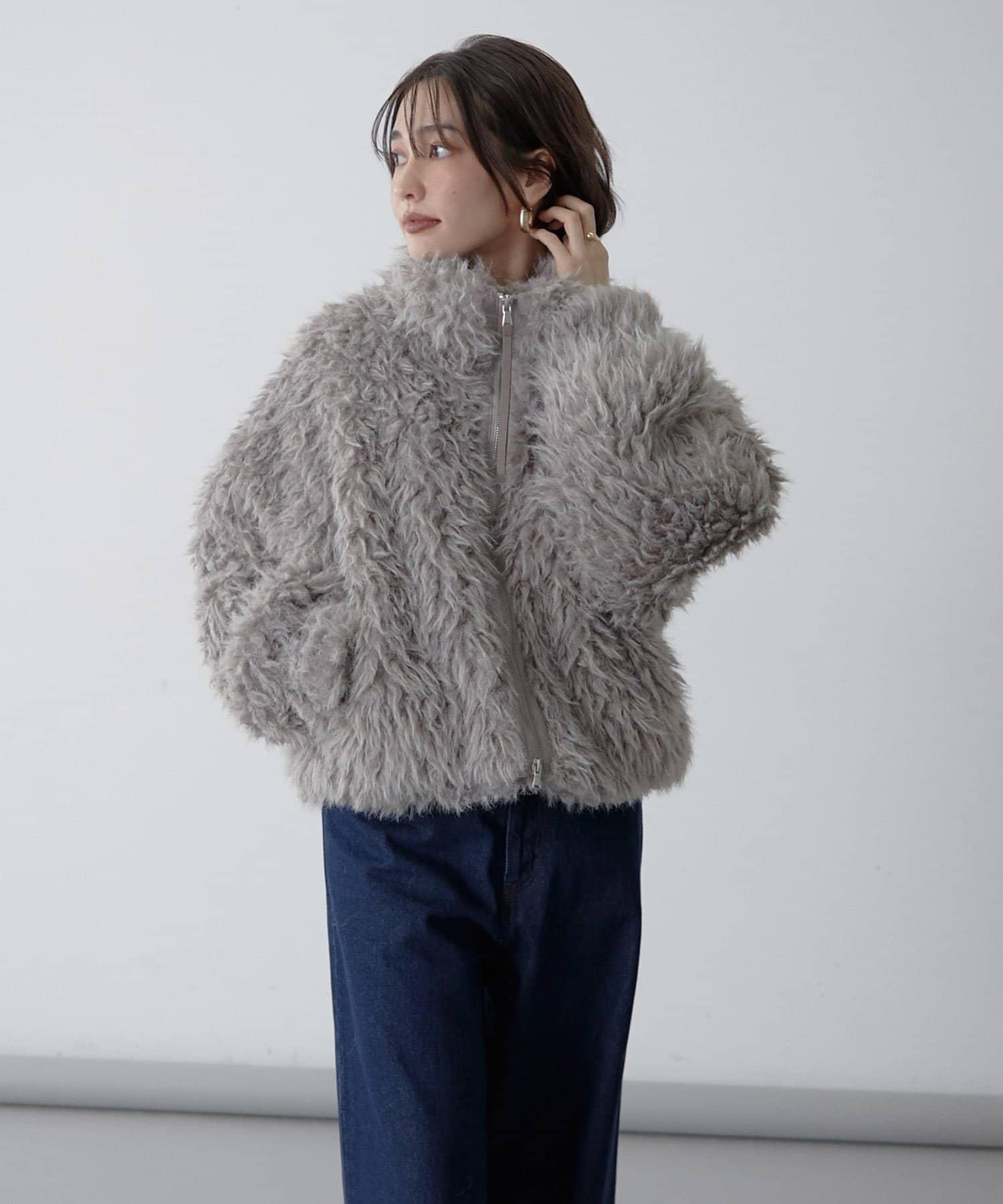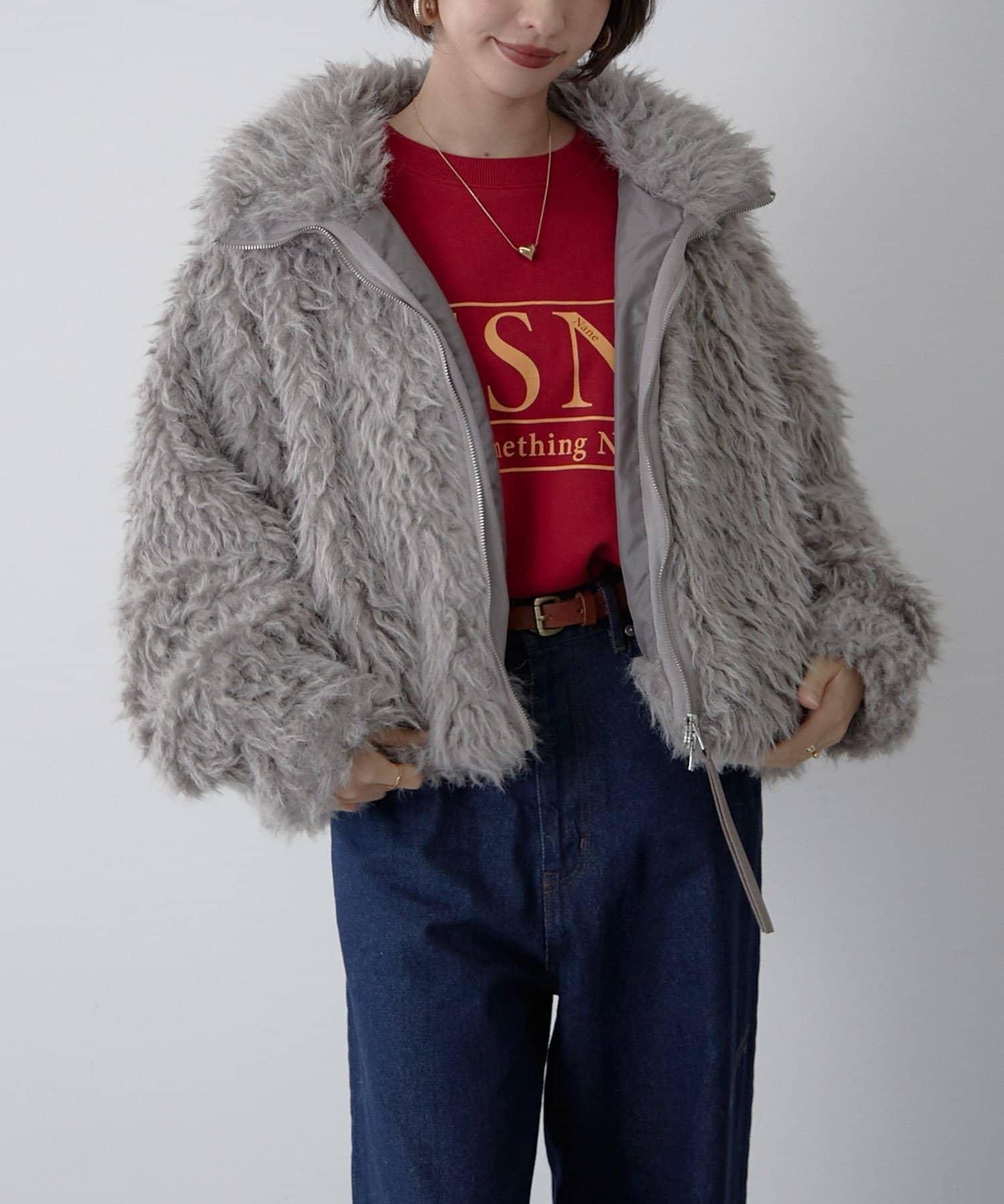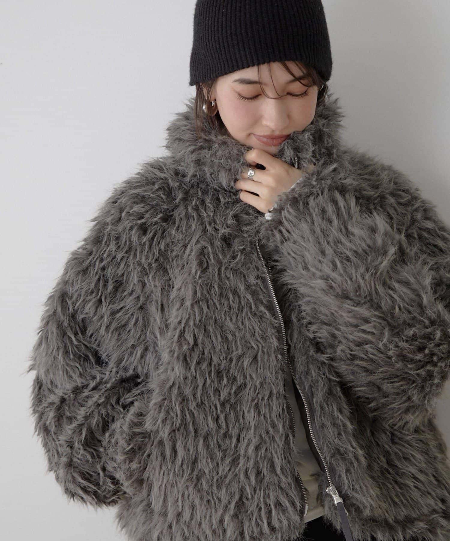 【nane】【Suzuki セレクト】雙拉鍊拼接仿毛皮飛行夾克