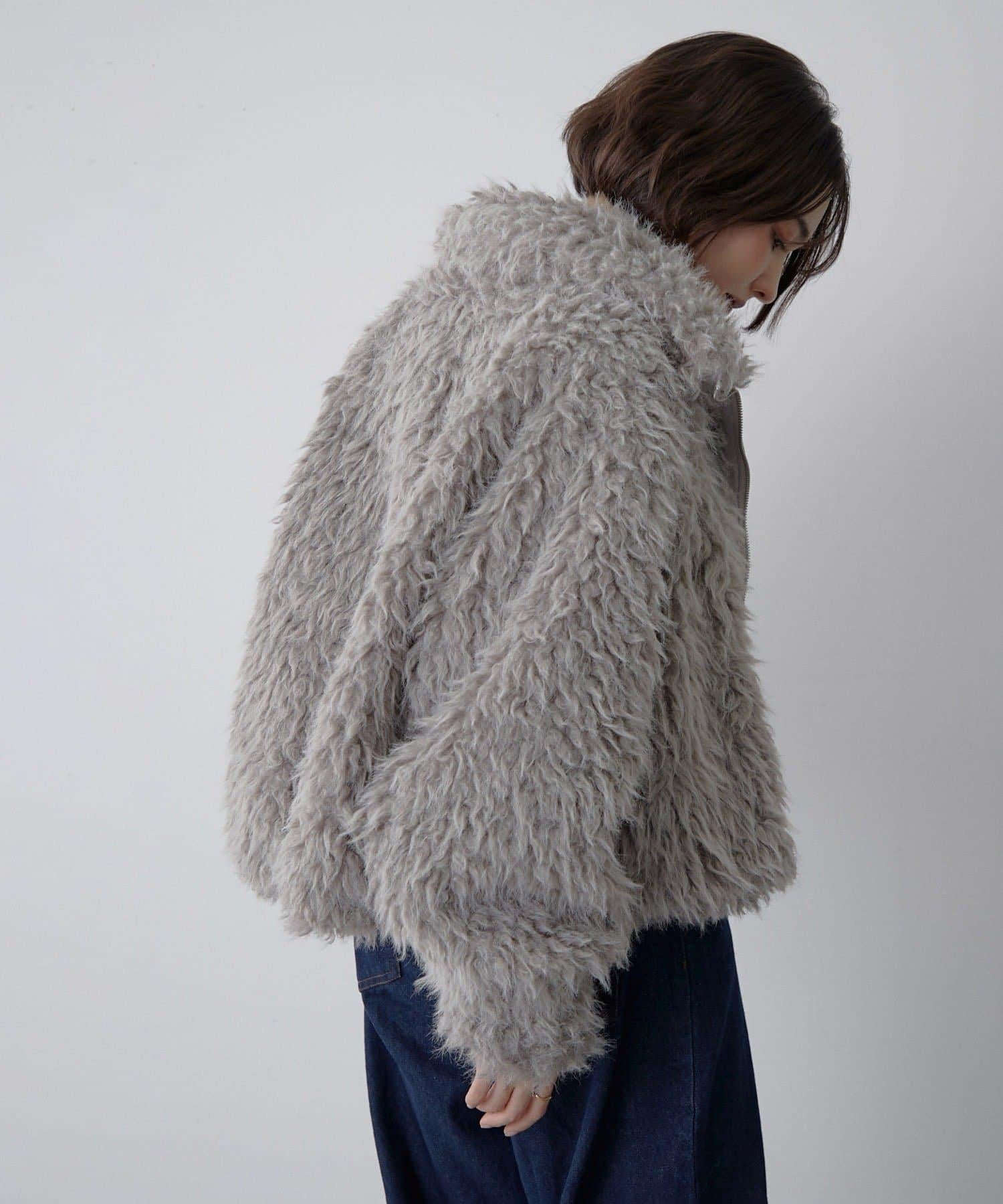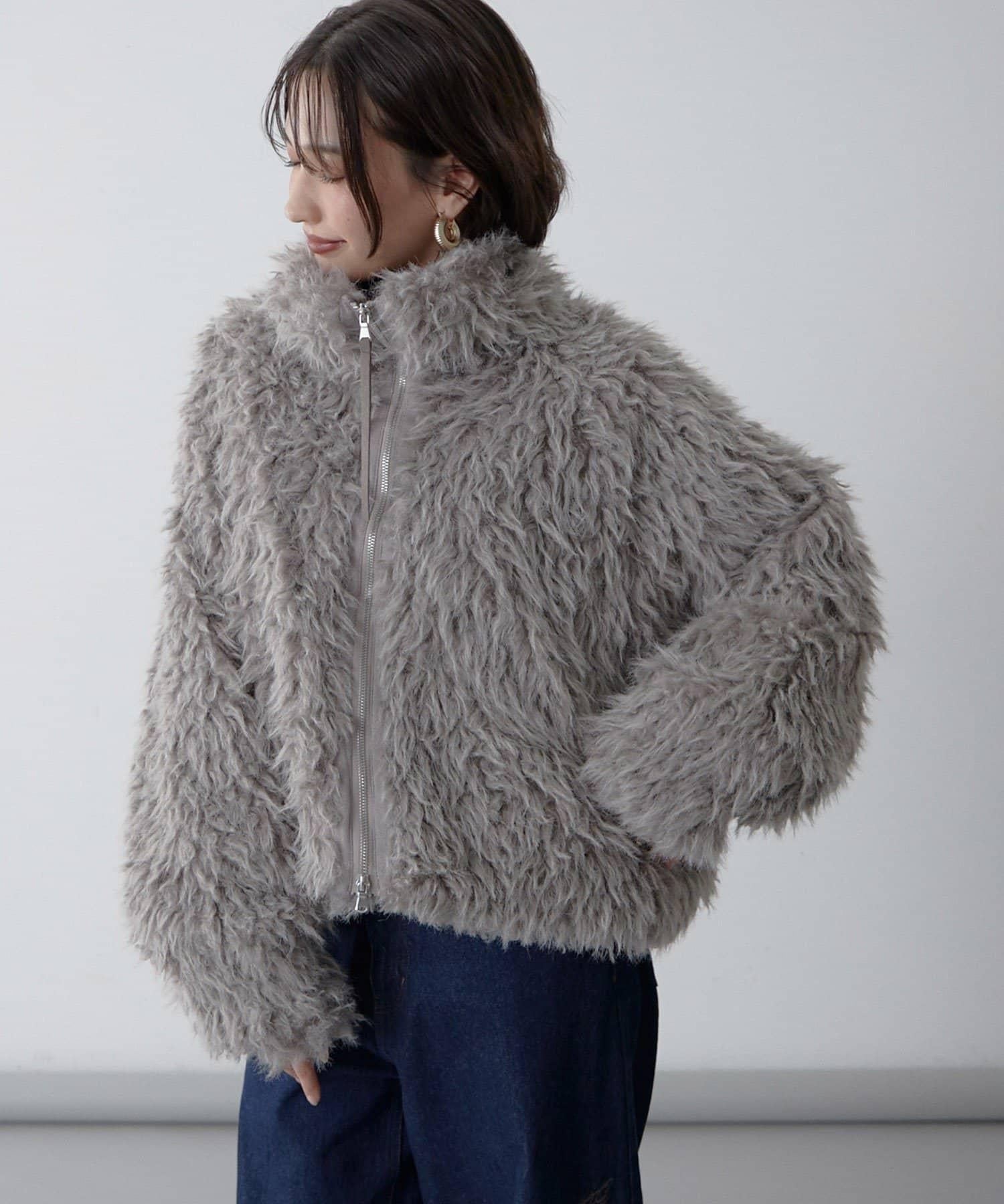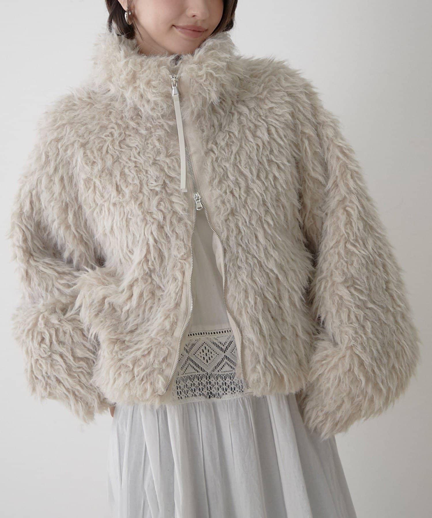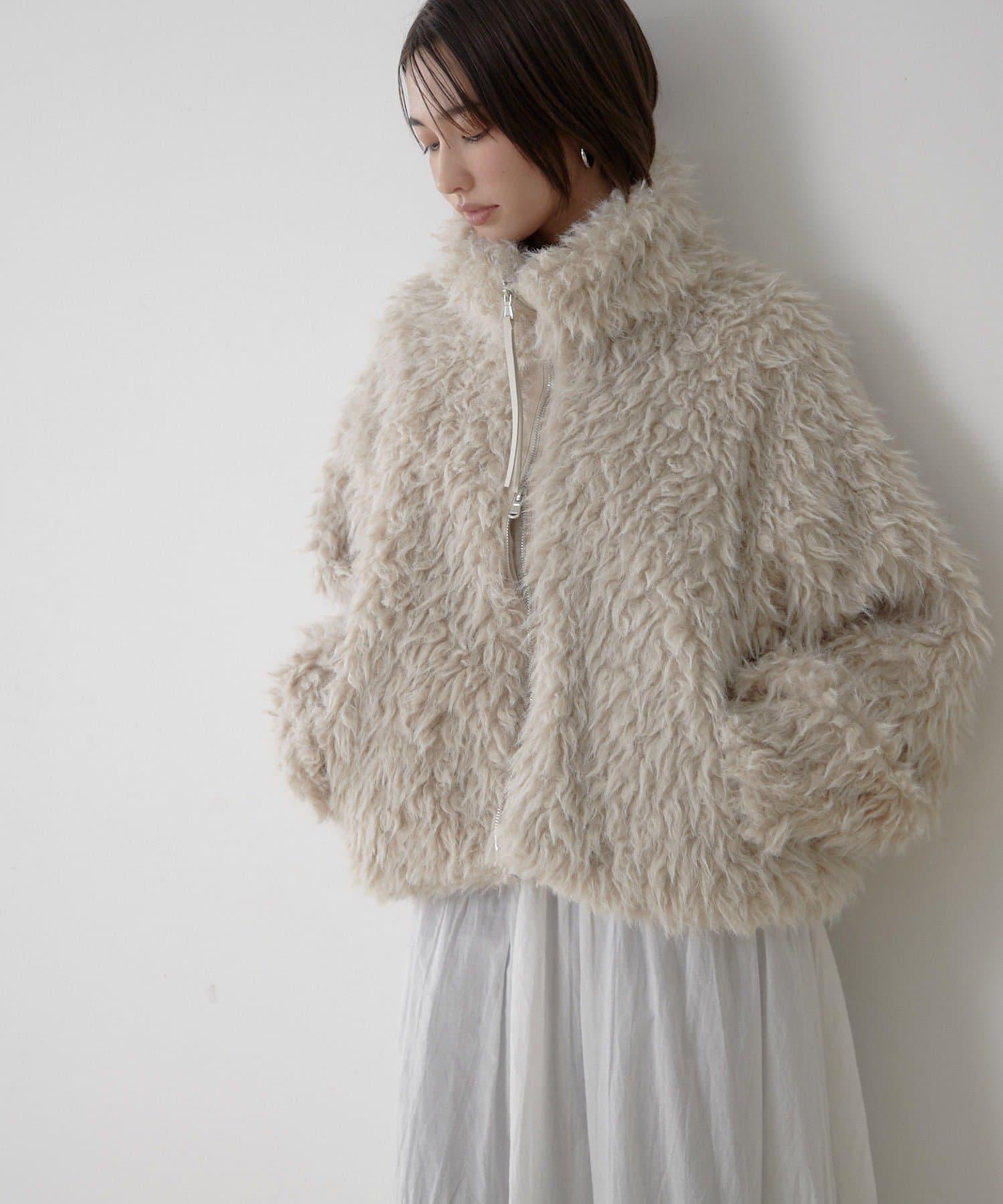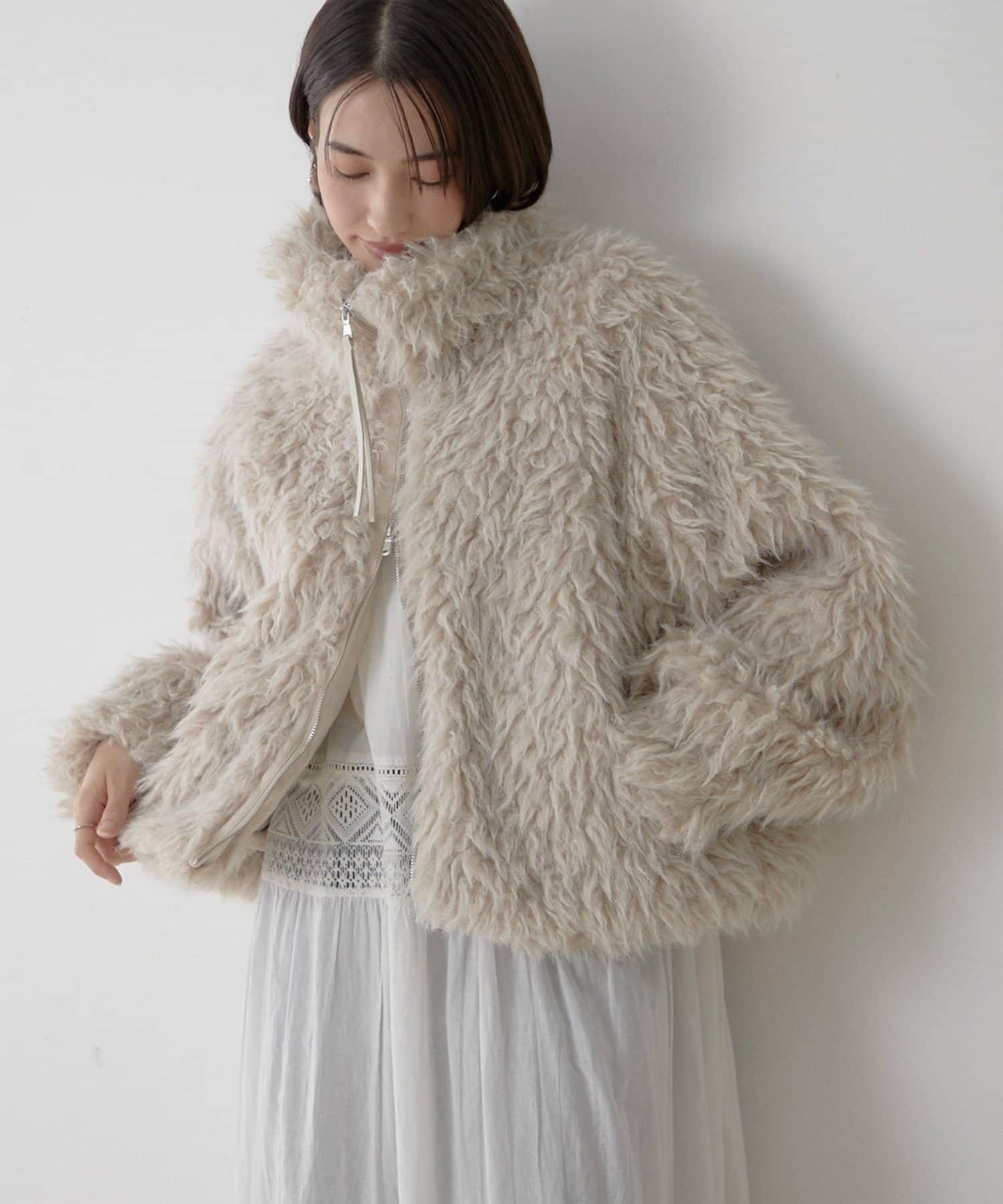 【nane】【Suzuki セレクト】雙拉鍊拼接仿毛皮飛行夾克