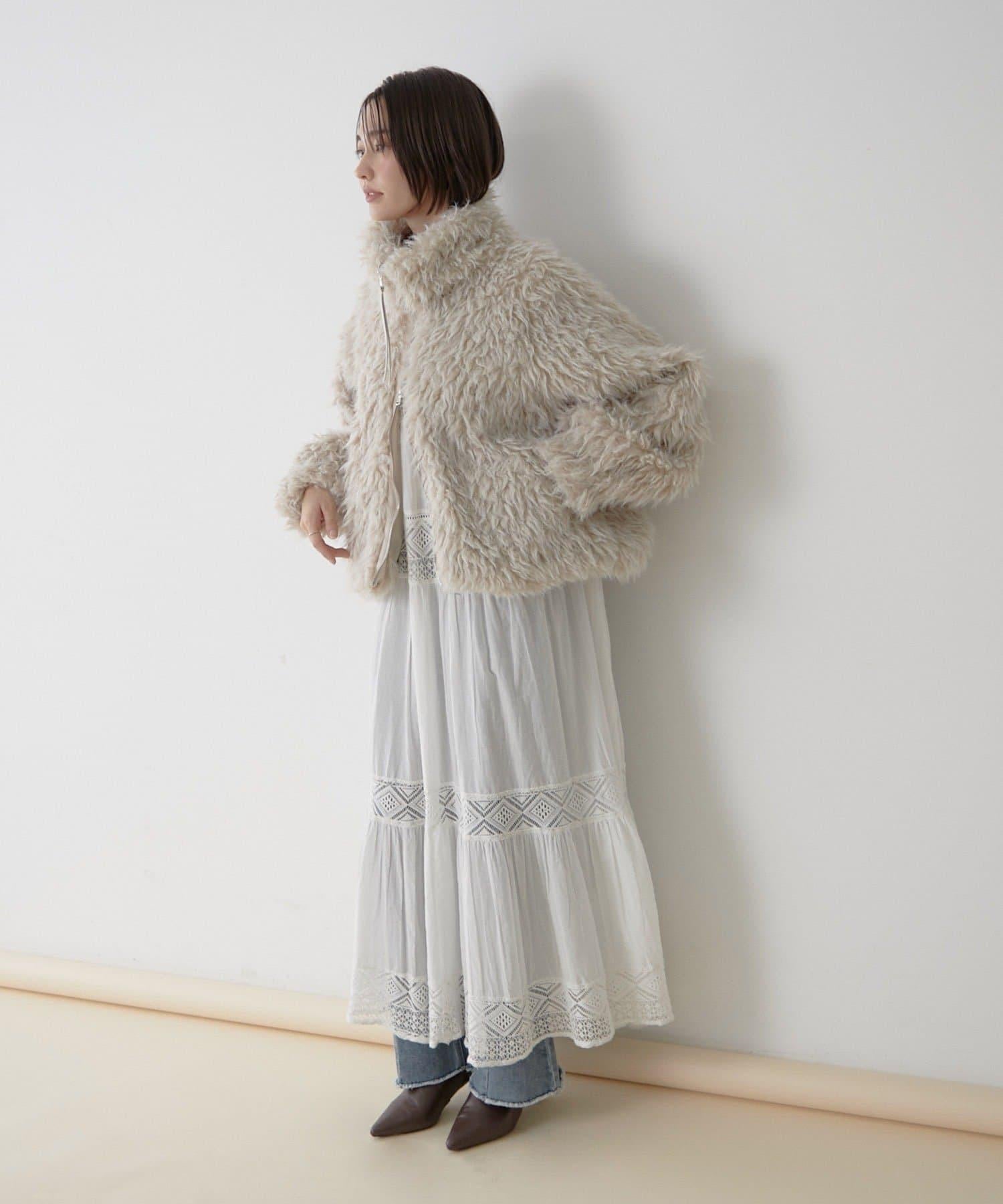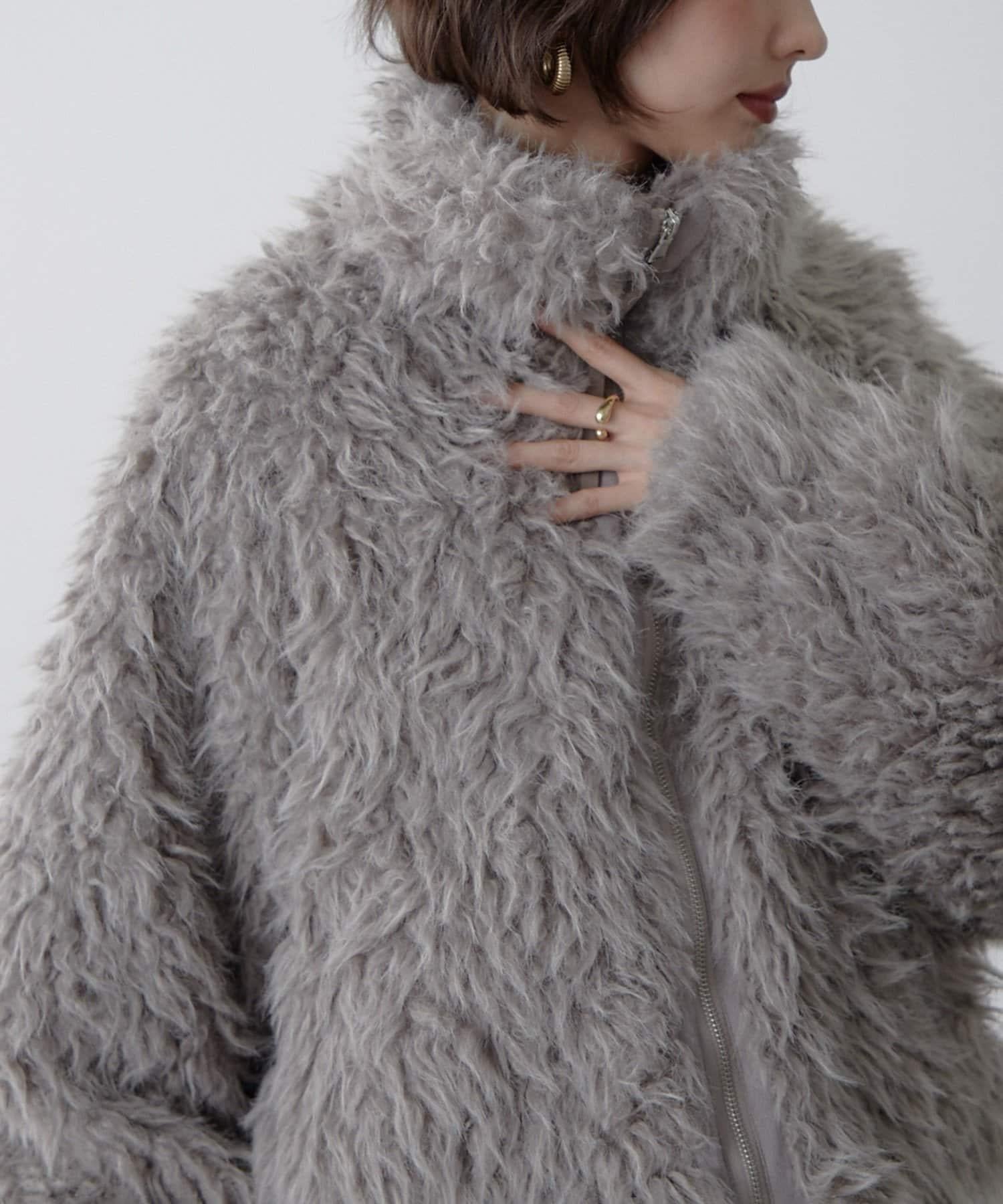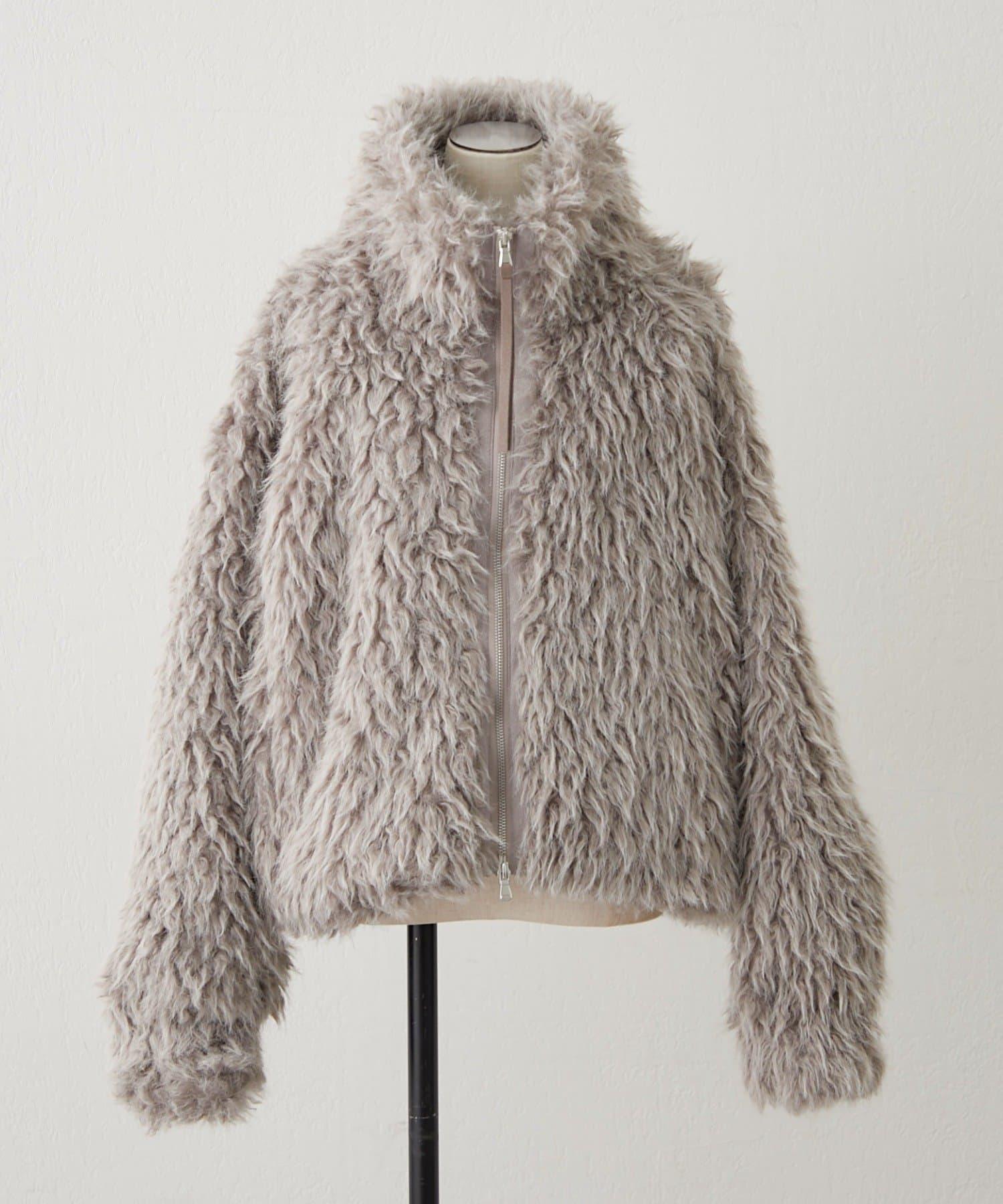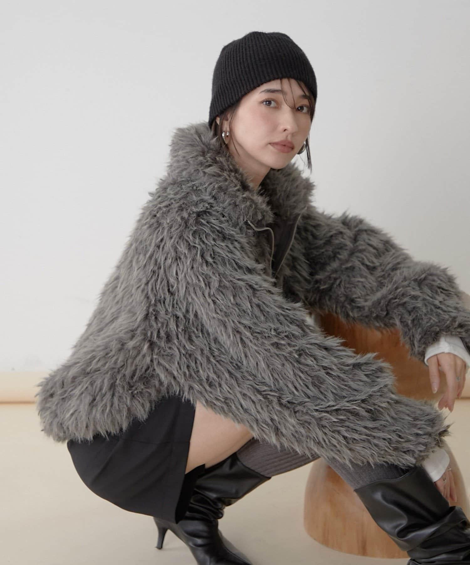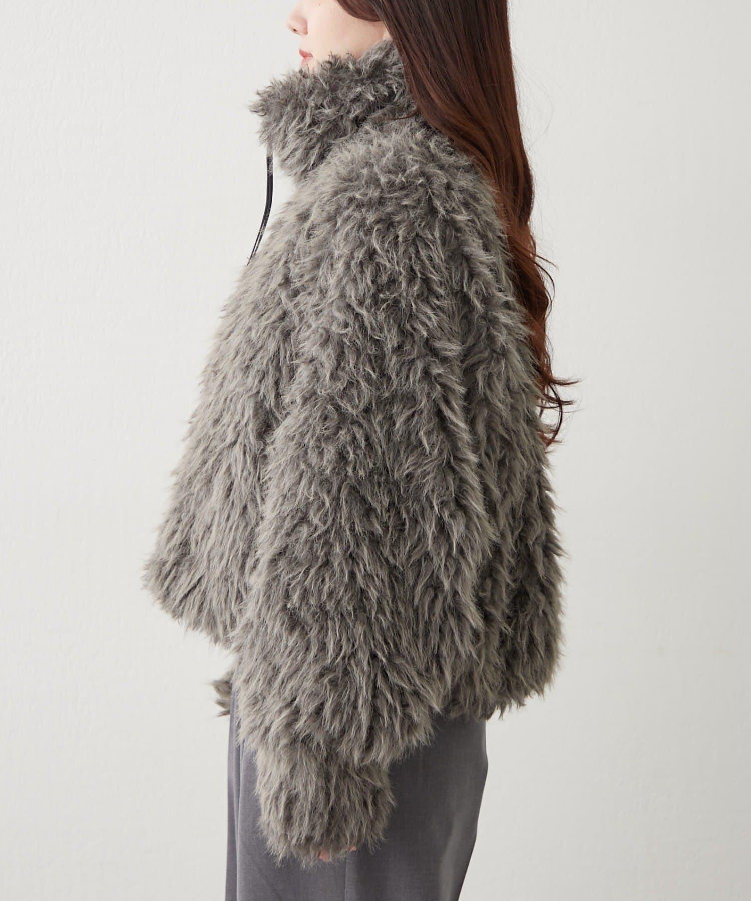【nane】【Suzuki セレクト】雙拉鍊拼接仿毛皮飛行夾克