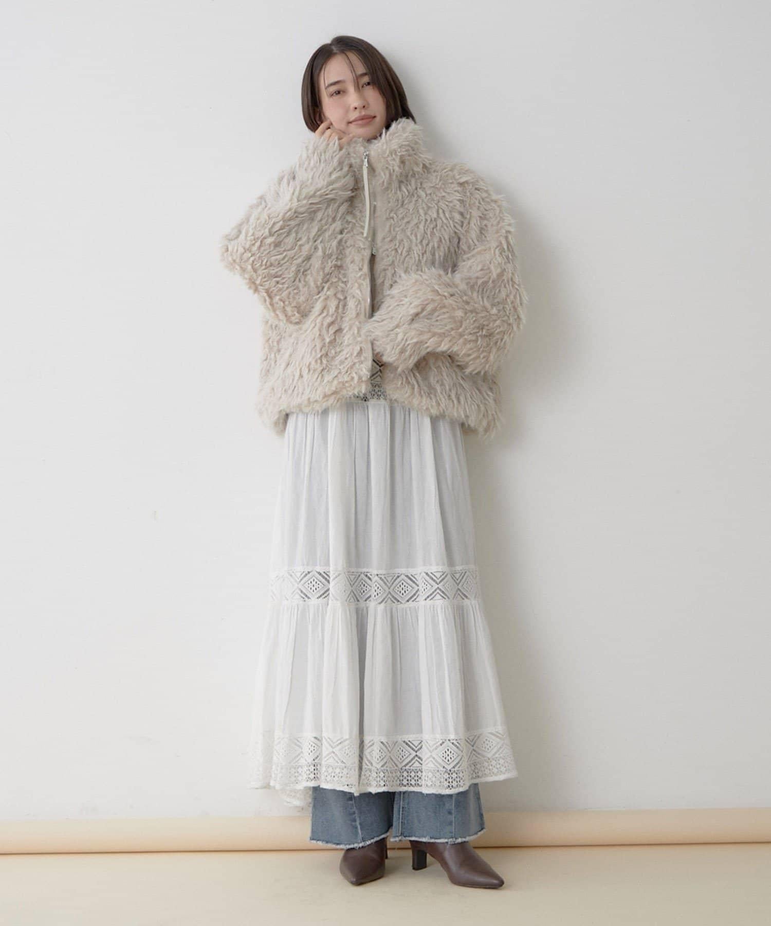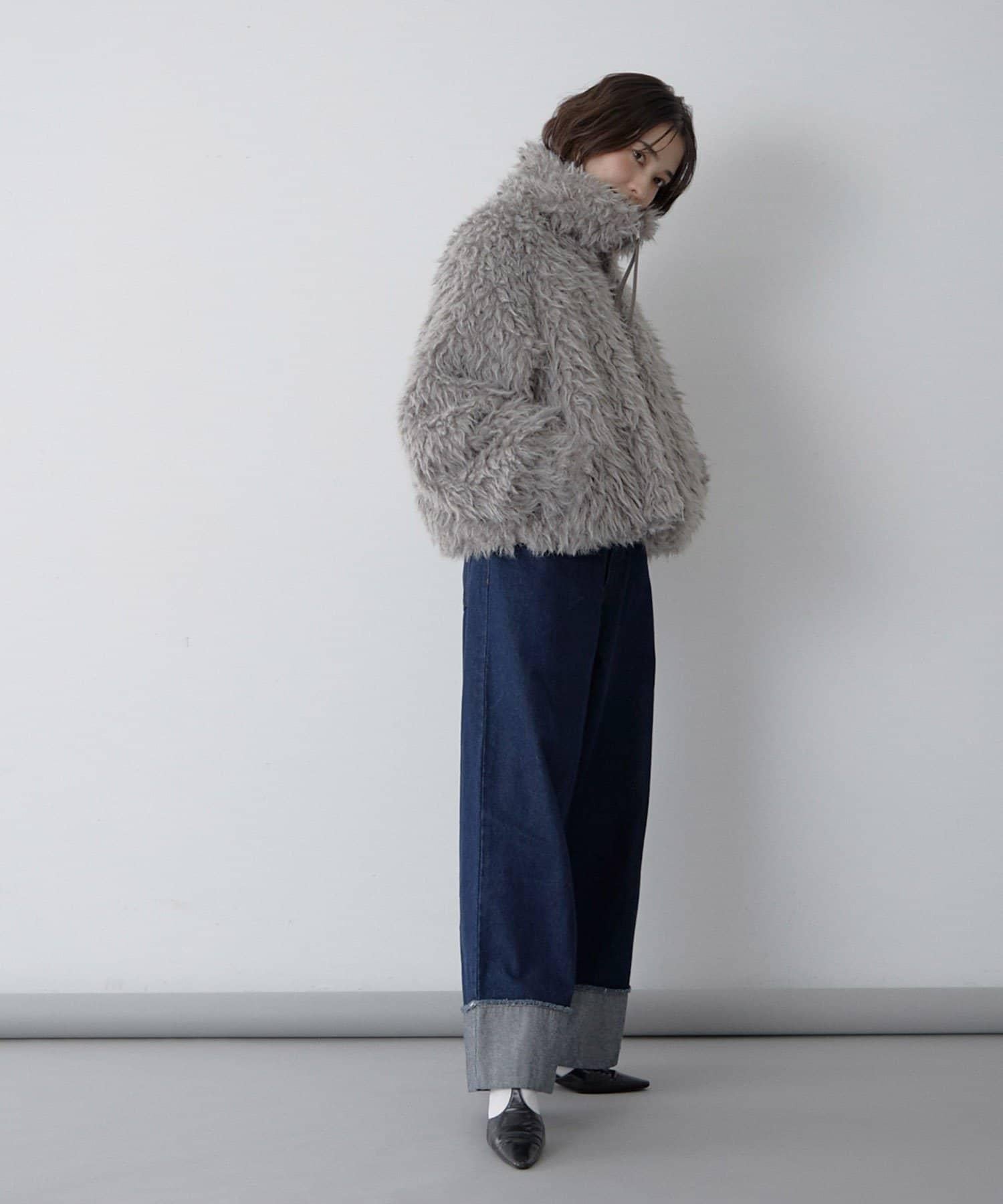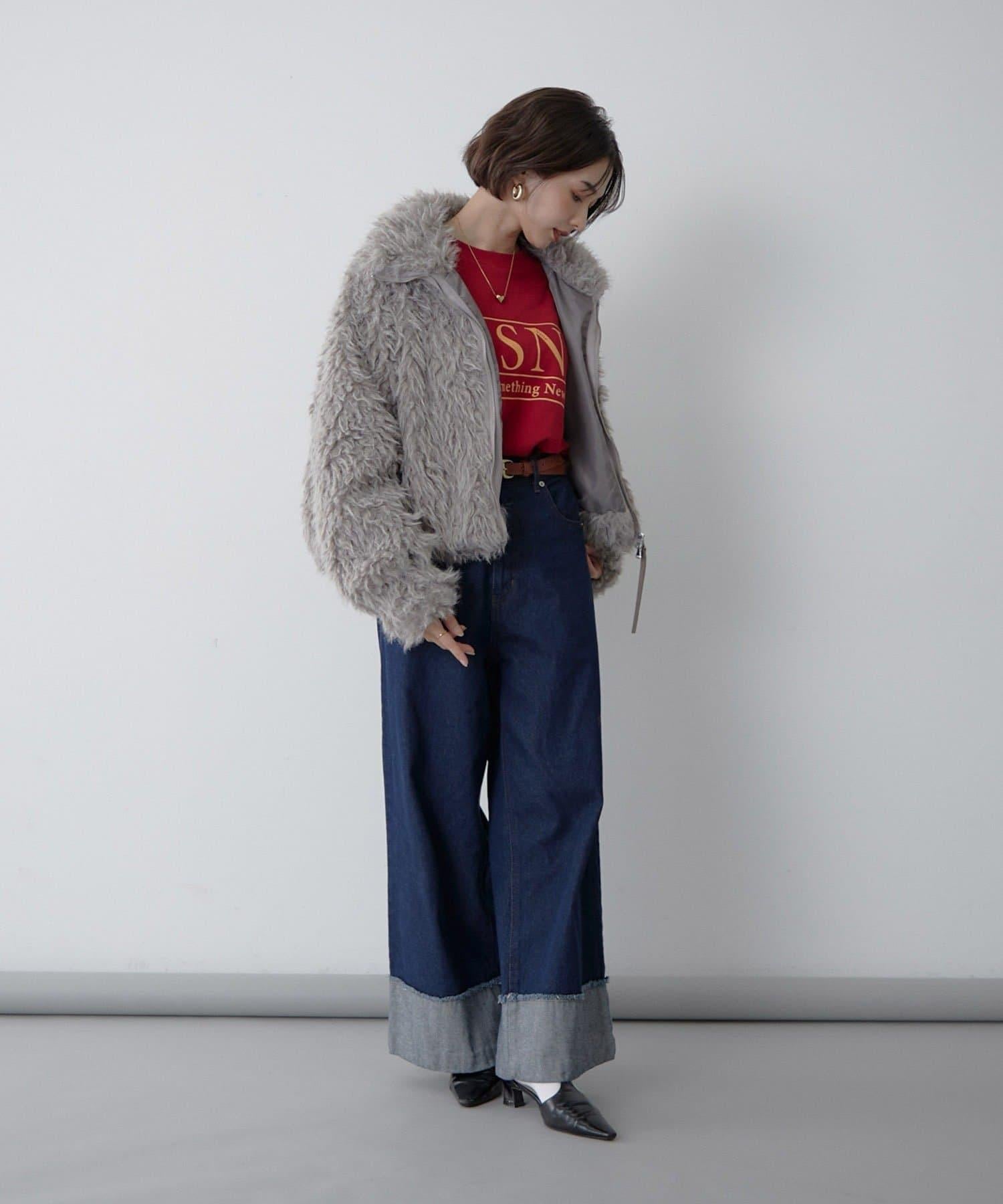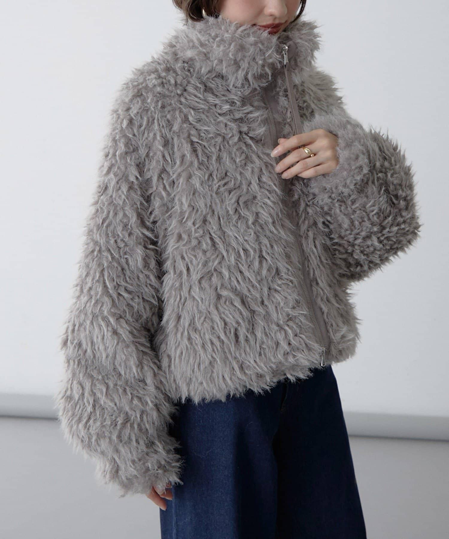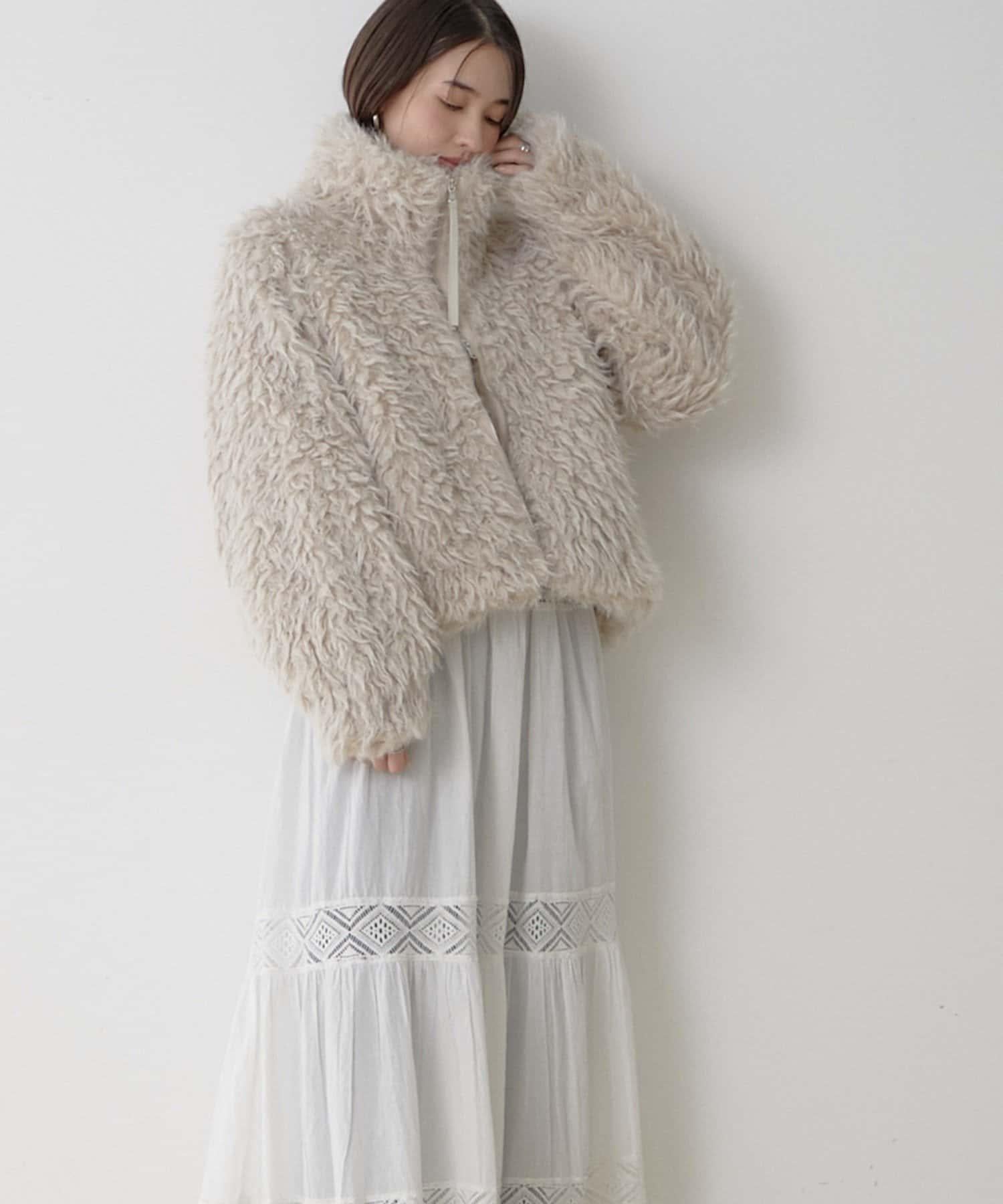 【nane】【Suzuki セレクト】雙拉鍊拼接仿毛皮飛行夾克