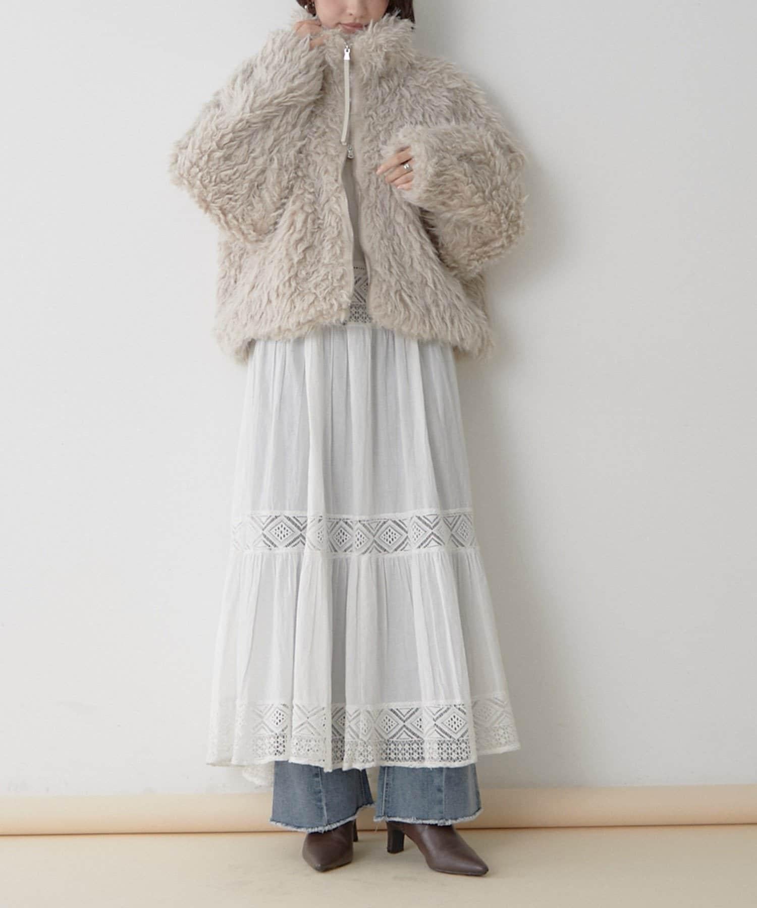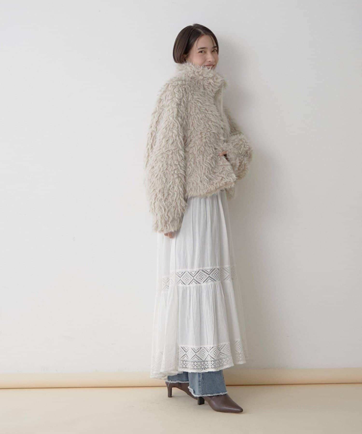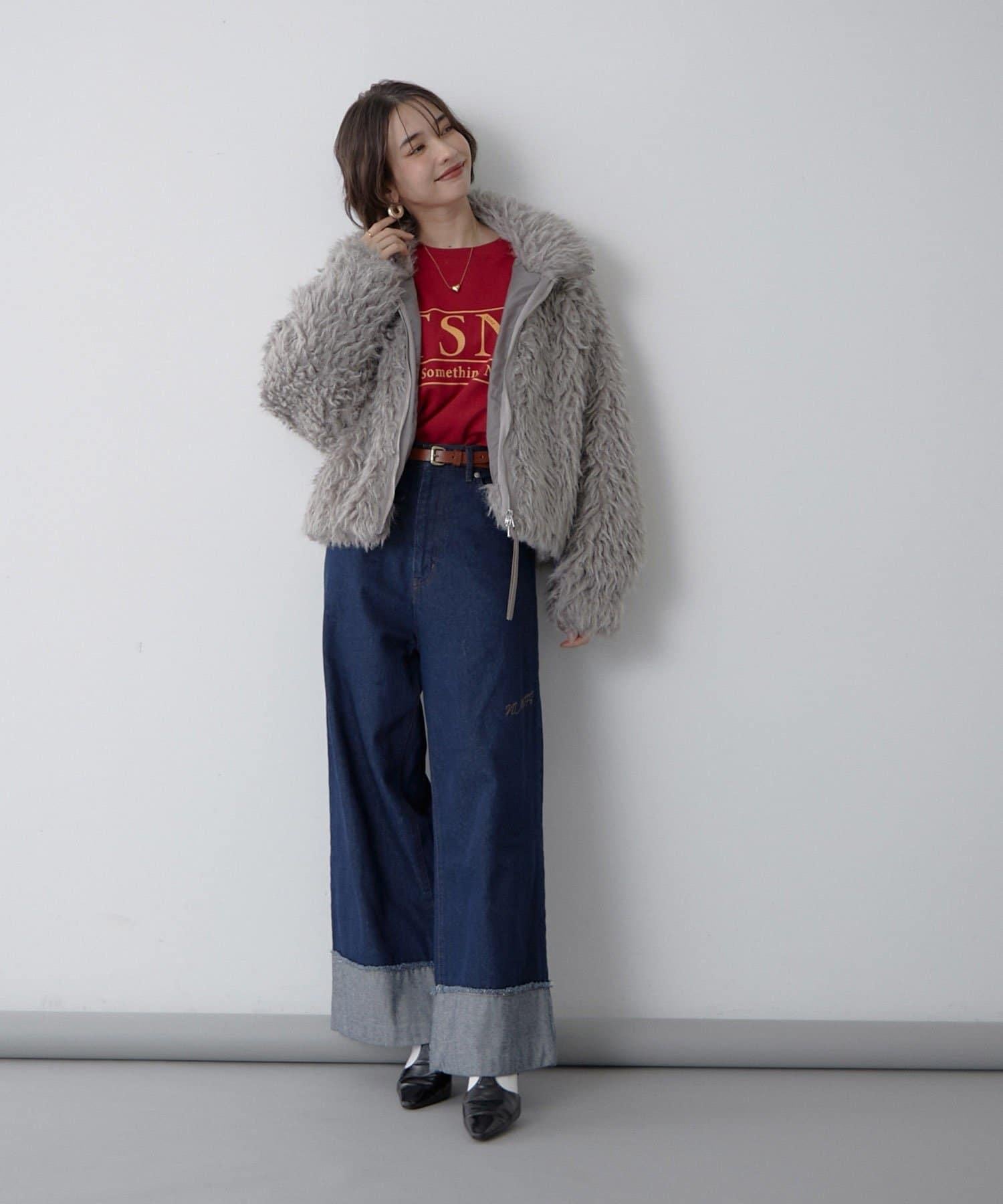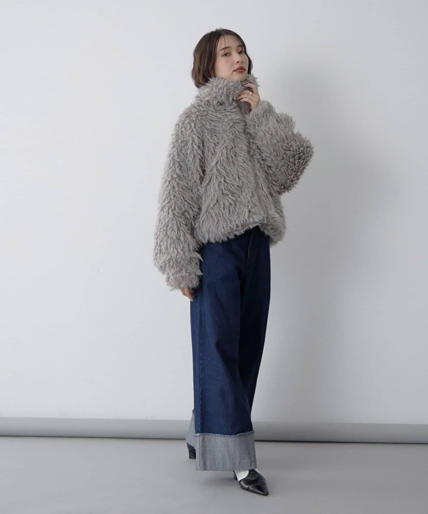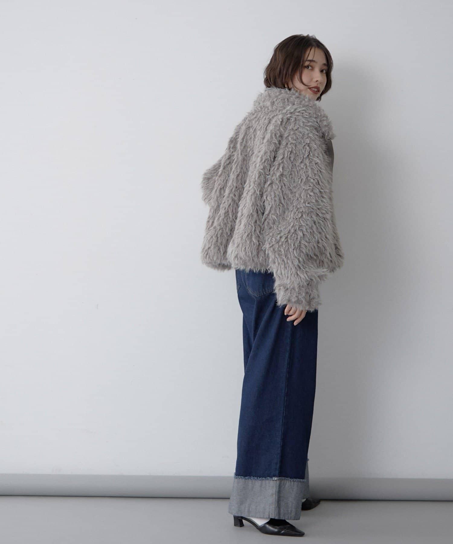 【nane】【Suzuki セレクト】雙拉鍊拼接仿毛皮飛行夾克