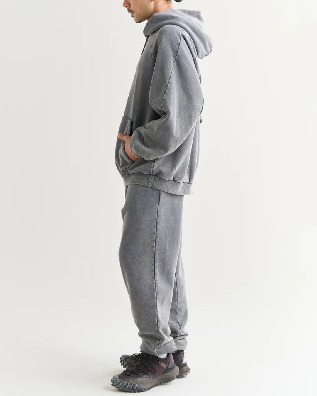 寬鬆的廓形給人一種輕鬆的感覺,但其表面處理又散發出一種街頭服飾的存在感。與牛仔褲和寬大的長褲搭配,是一款既休閒又精緻的衛衣連帽衫。