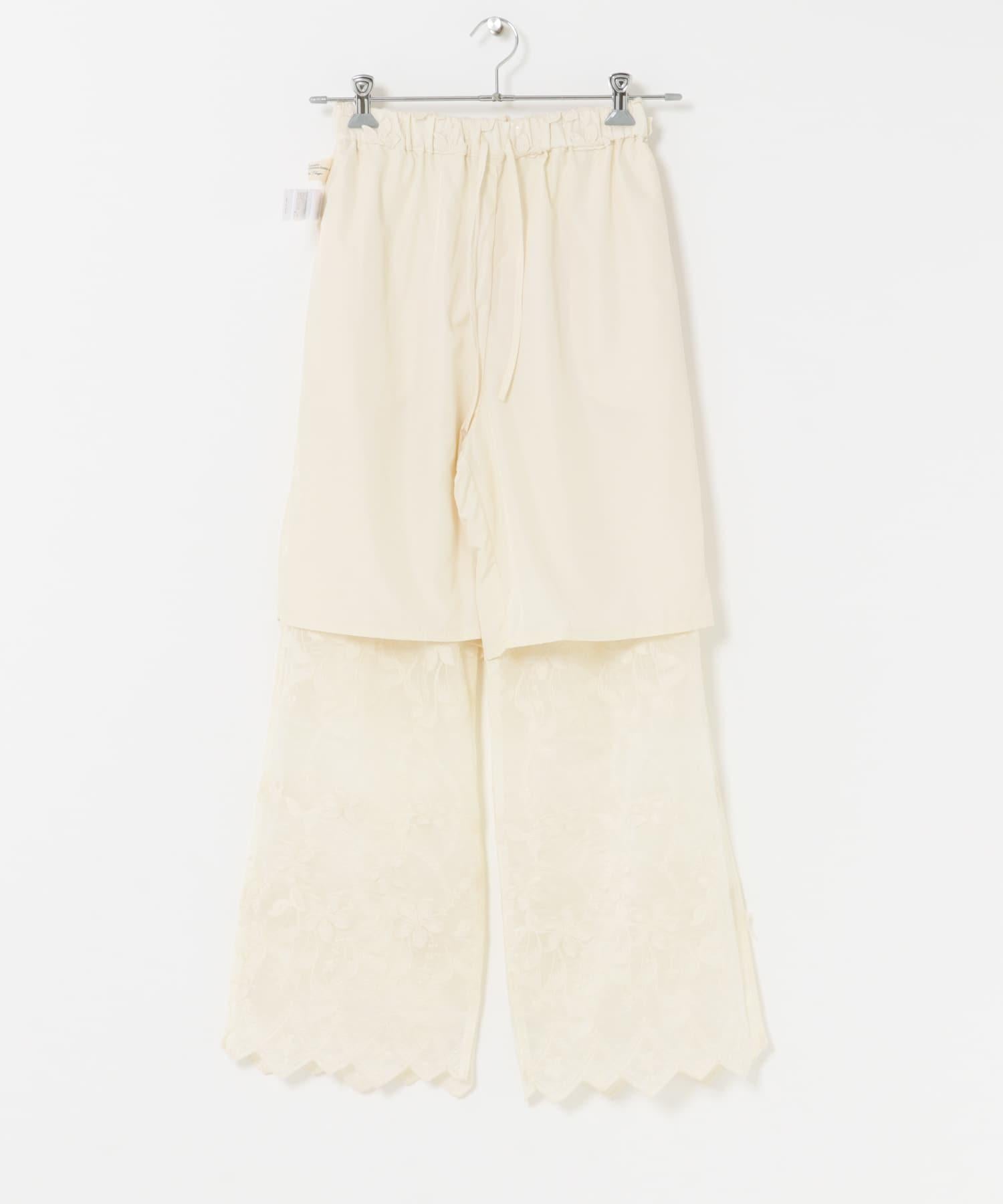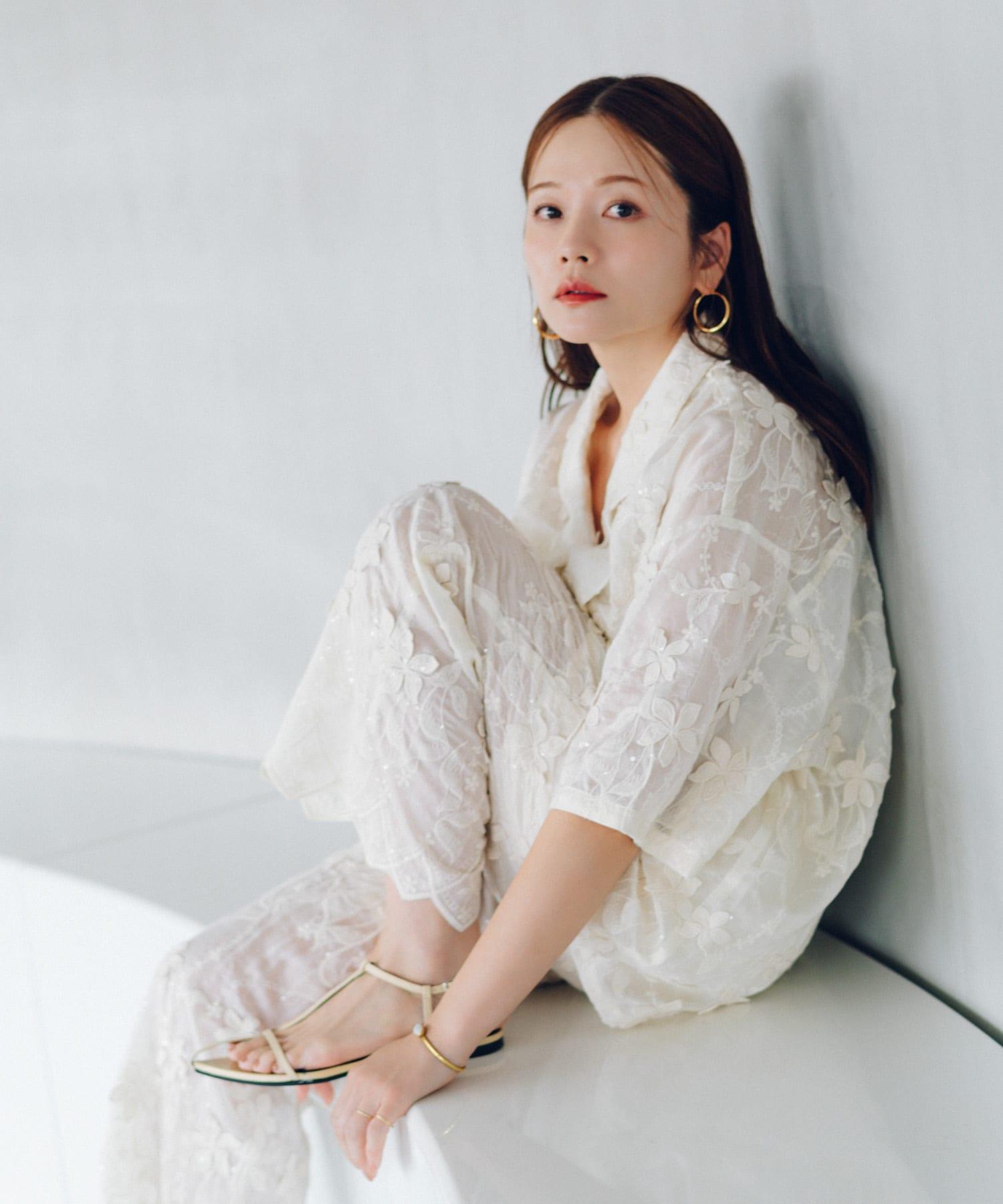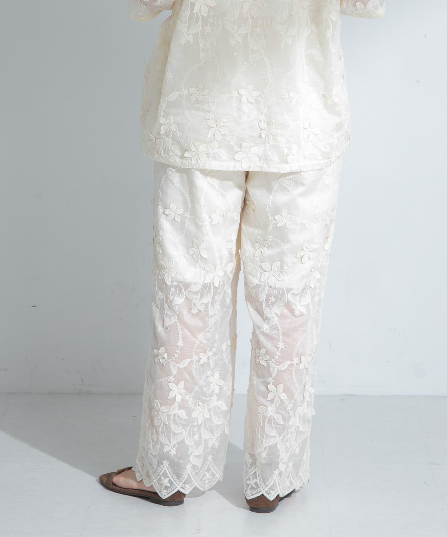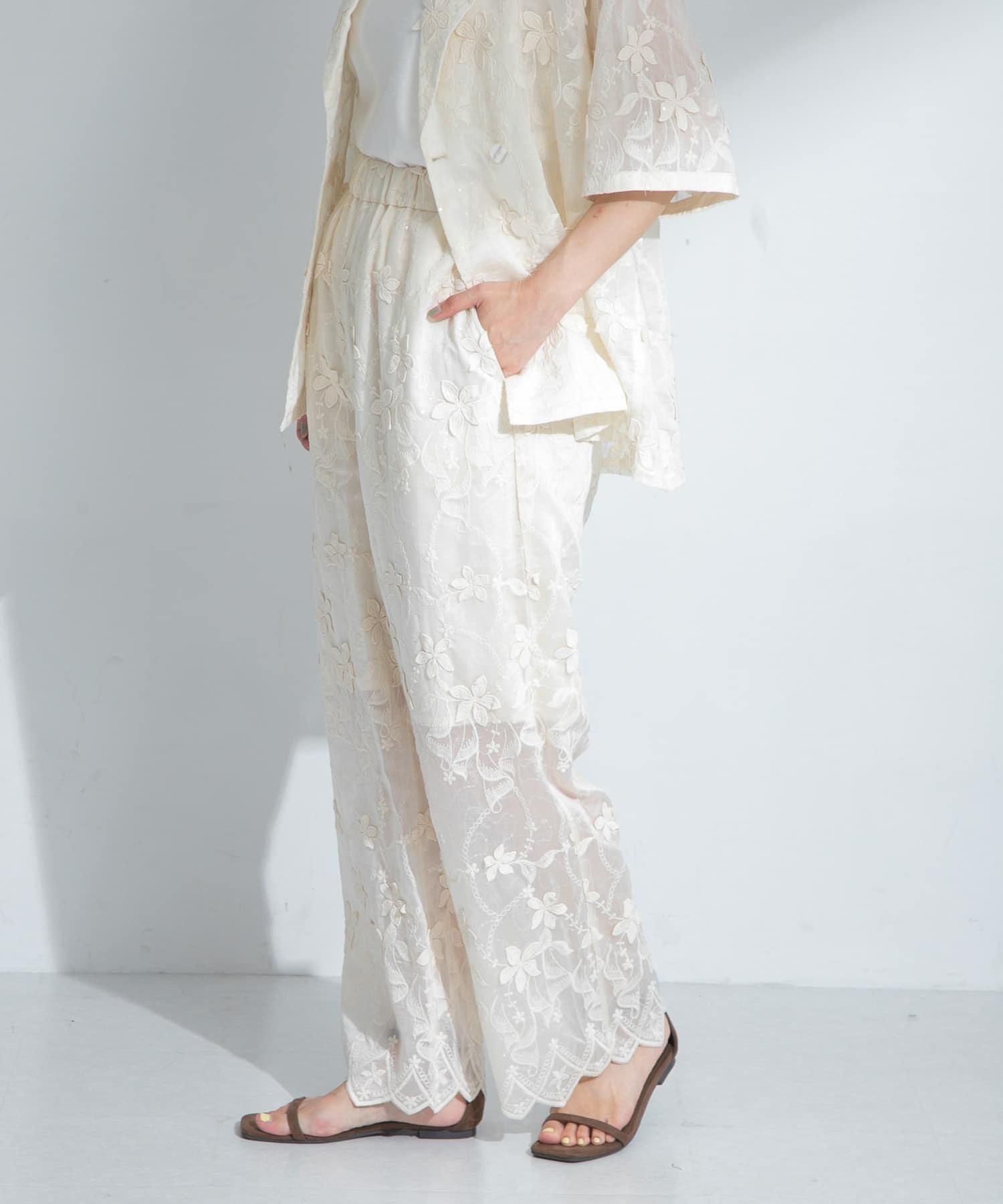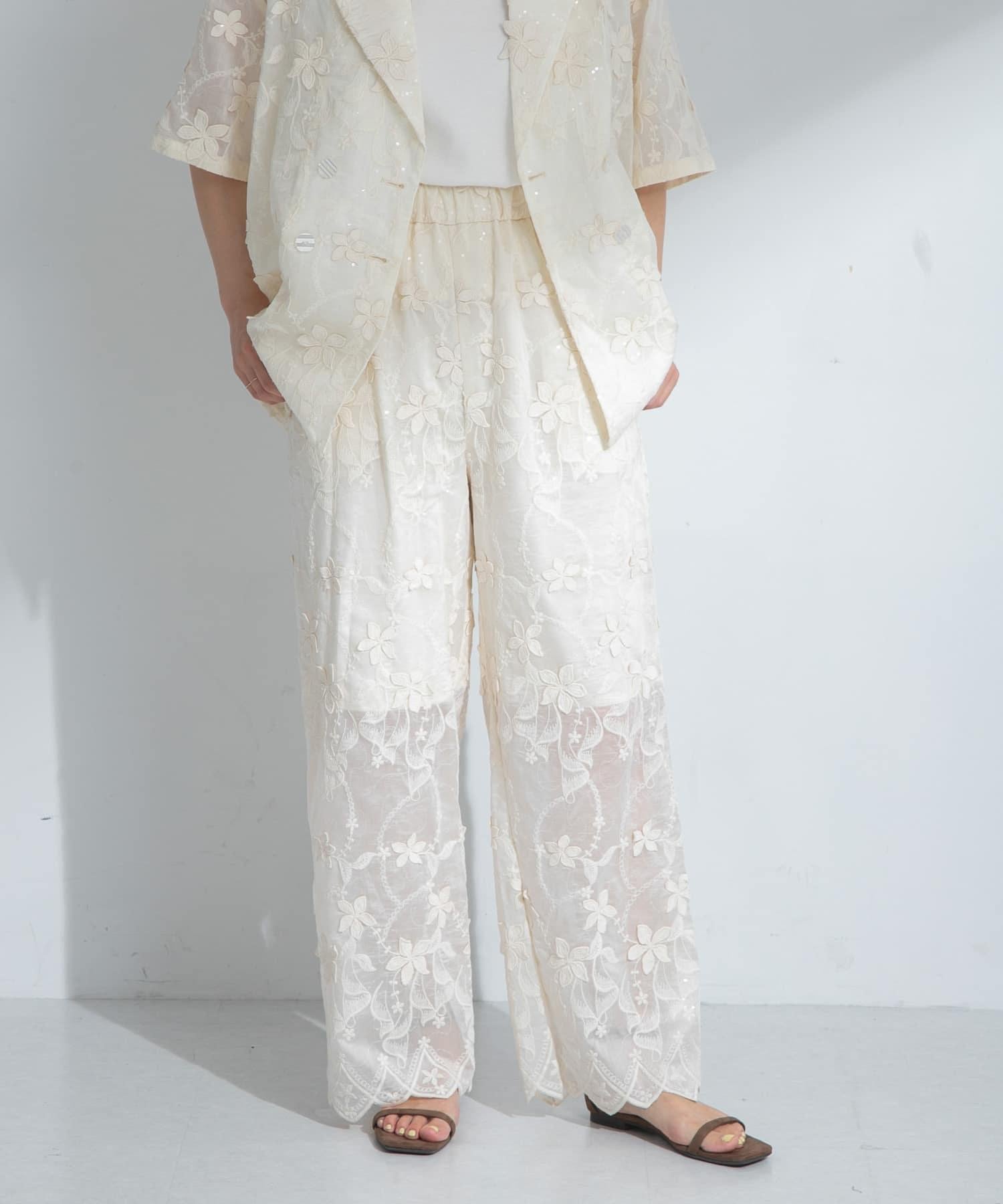 蕾絲面料的簡易長褲,配以精緻的亮片刺繡,復古感十足。