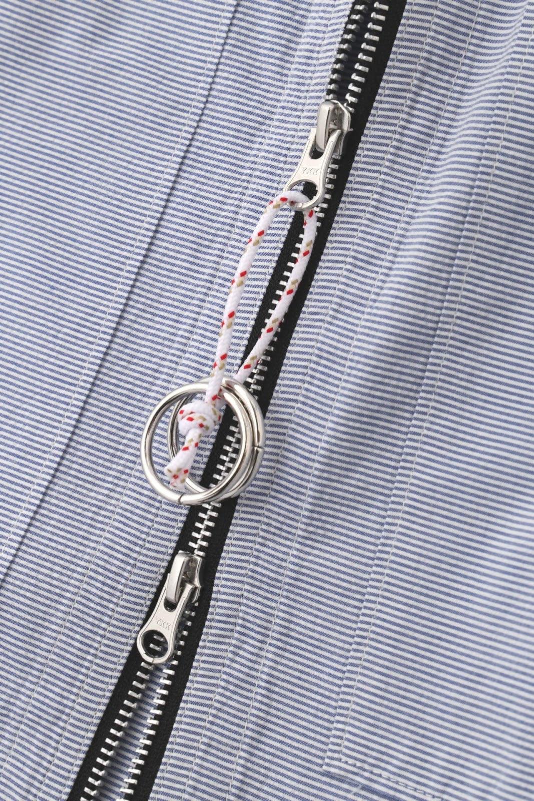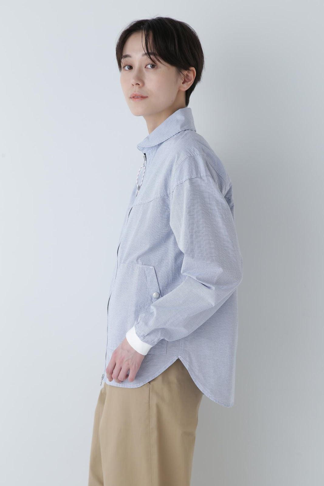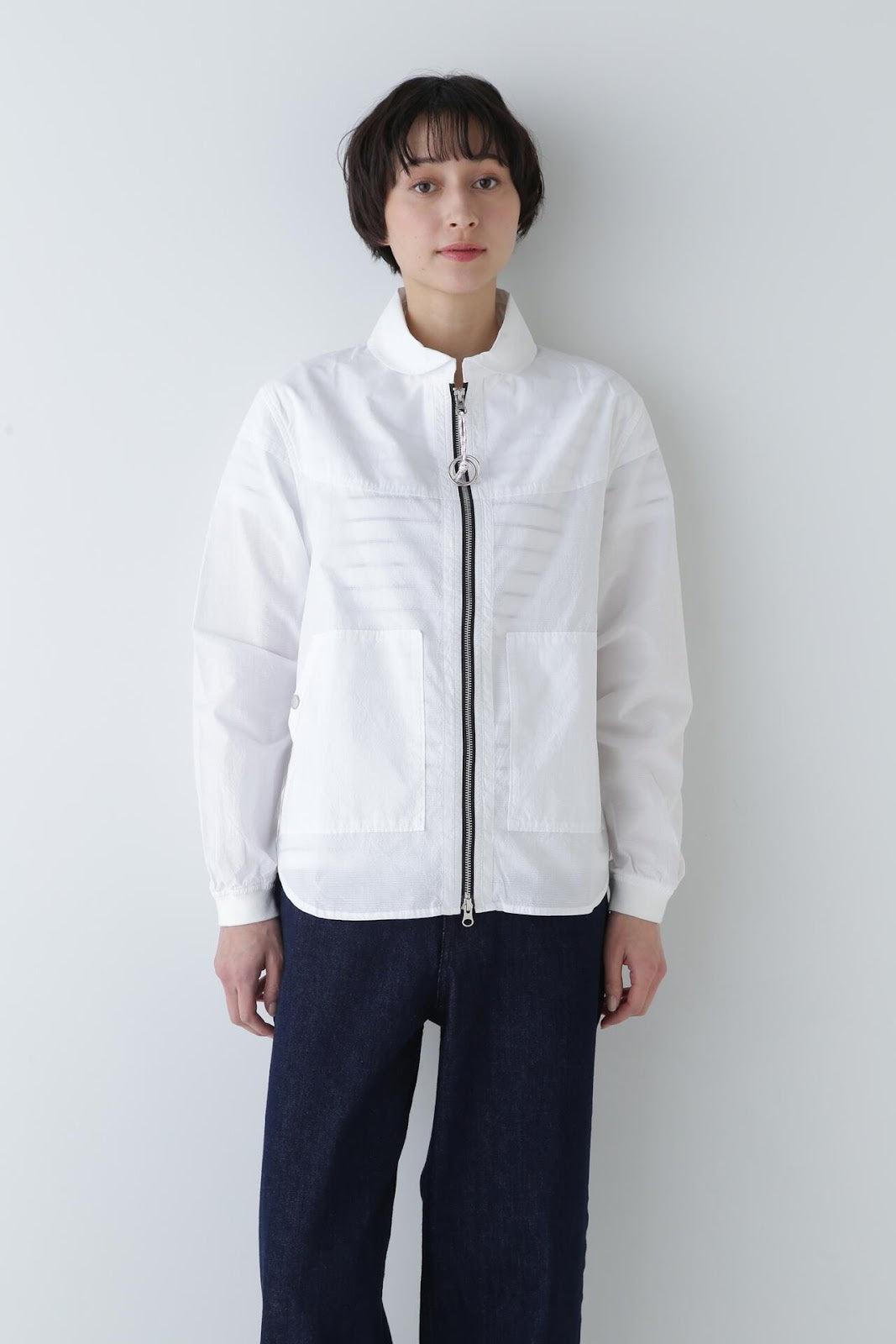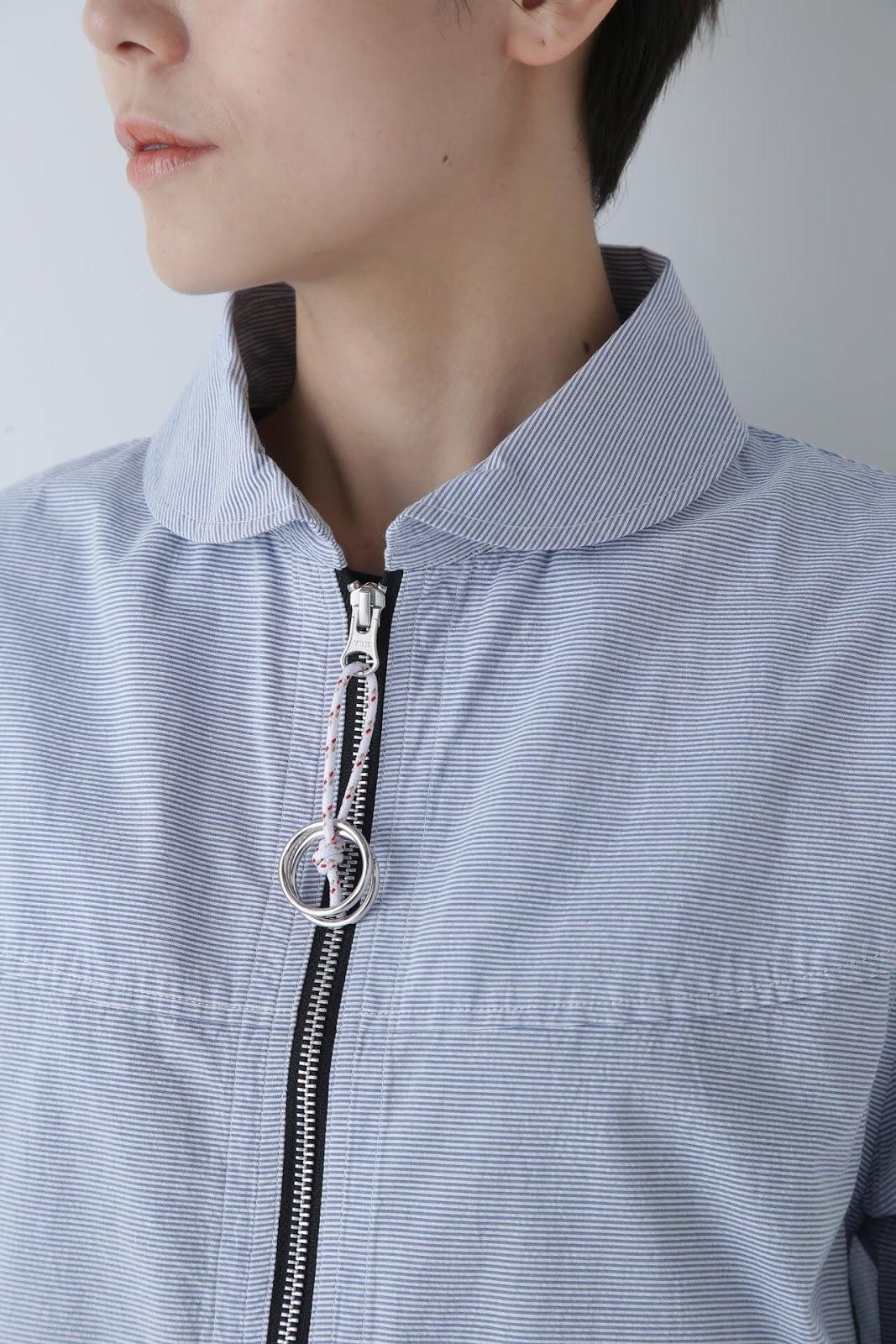 這是一款非常輕便的罩衫,可通過拉鍊開合,從胸後到肩部的拉鍊改為帽肩式。面料為邊框形,圓點紐扣上印有船錨標誌。這是一款從春天到初夏都活躍著海洋氣息的單品。面料為涼爽的棉質微足球,質地細膩,凹凸有致。