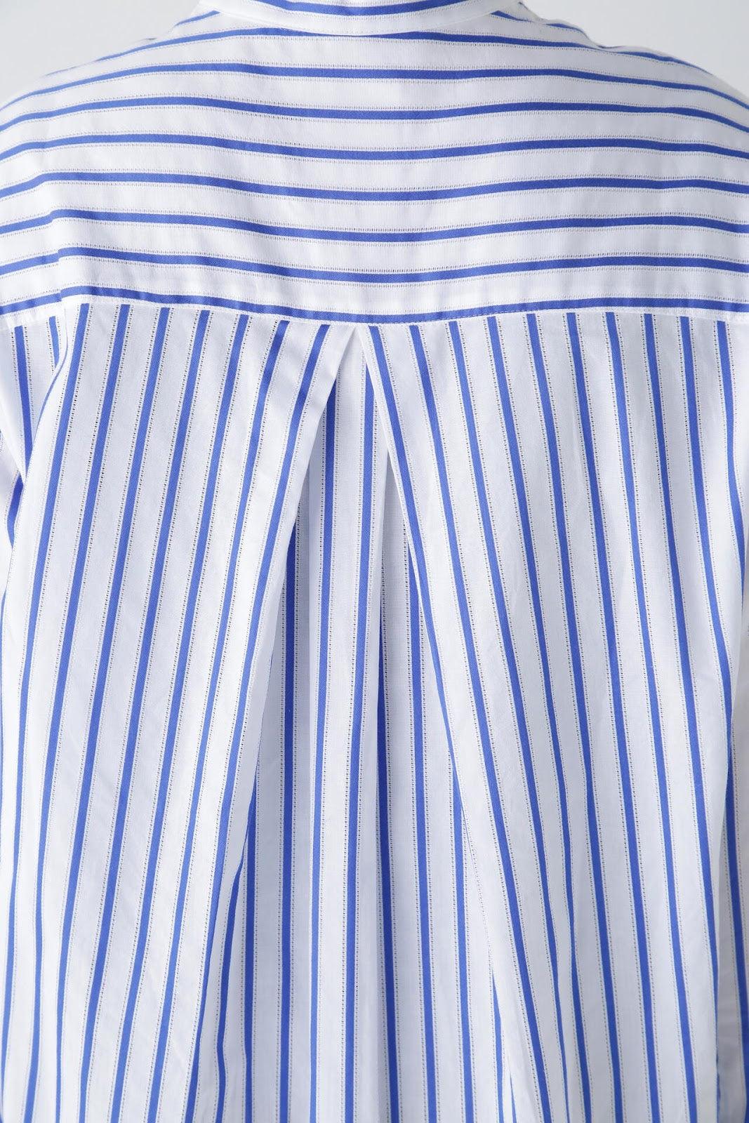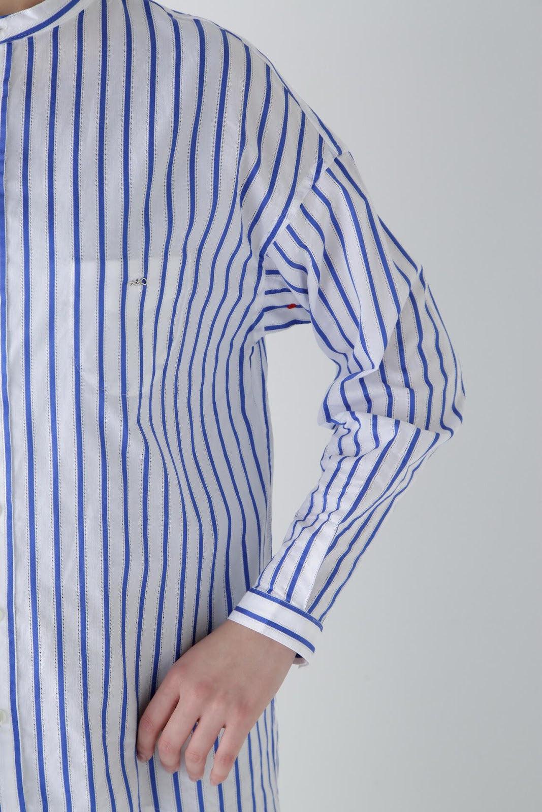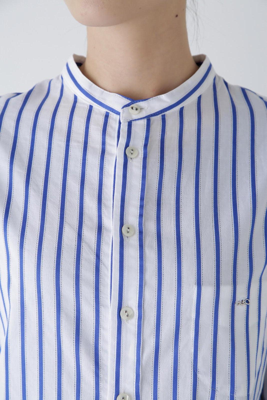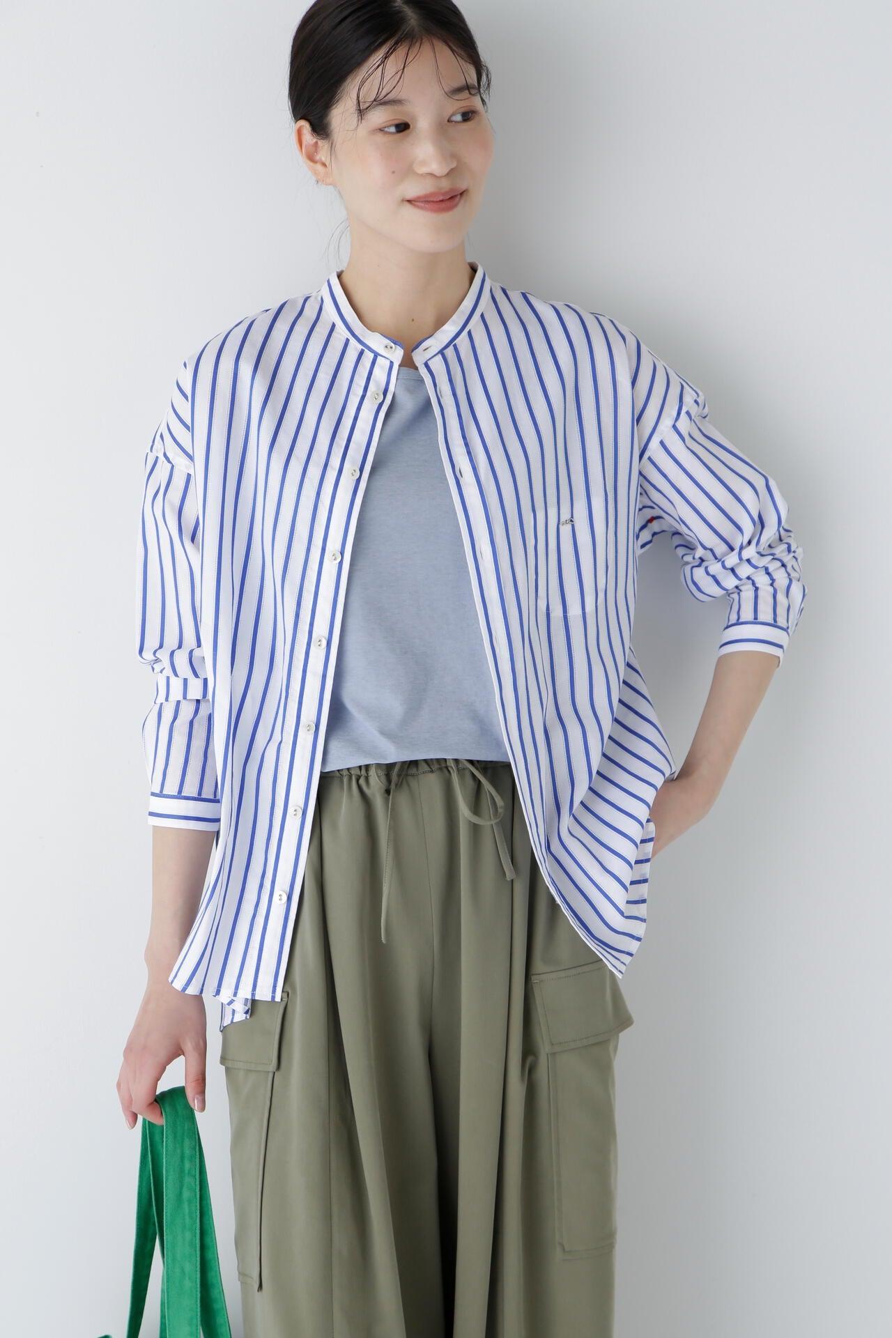 該設計採用罩衫(A 字形)廓形,除了刻意下垂的肩部外,後背還採用了雙襉設計,具有體積感。前短後長的功能性設計適用於運動裝,胸前的口袋為內袋規格,紐扣是可以用別針拆卸的👍紐扣。帶有度假風情的條紋襯衫非常適合在海邊穿著。條紋圖案採用 100%純棉面料,兩側有細孔。適合春夏穿著的面料,透氣性好,穿著涼爽。natic] na = 海軍,t = 技術,i = 創新,c = 合作。