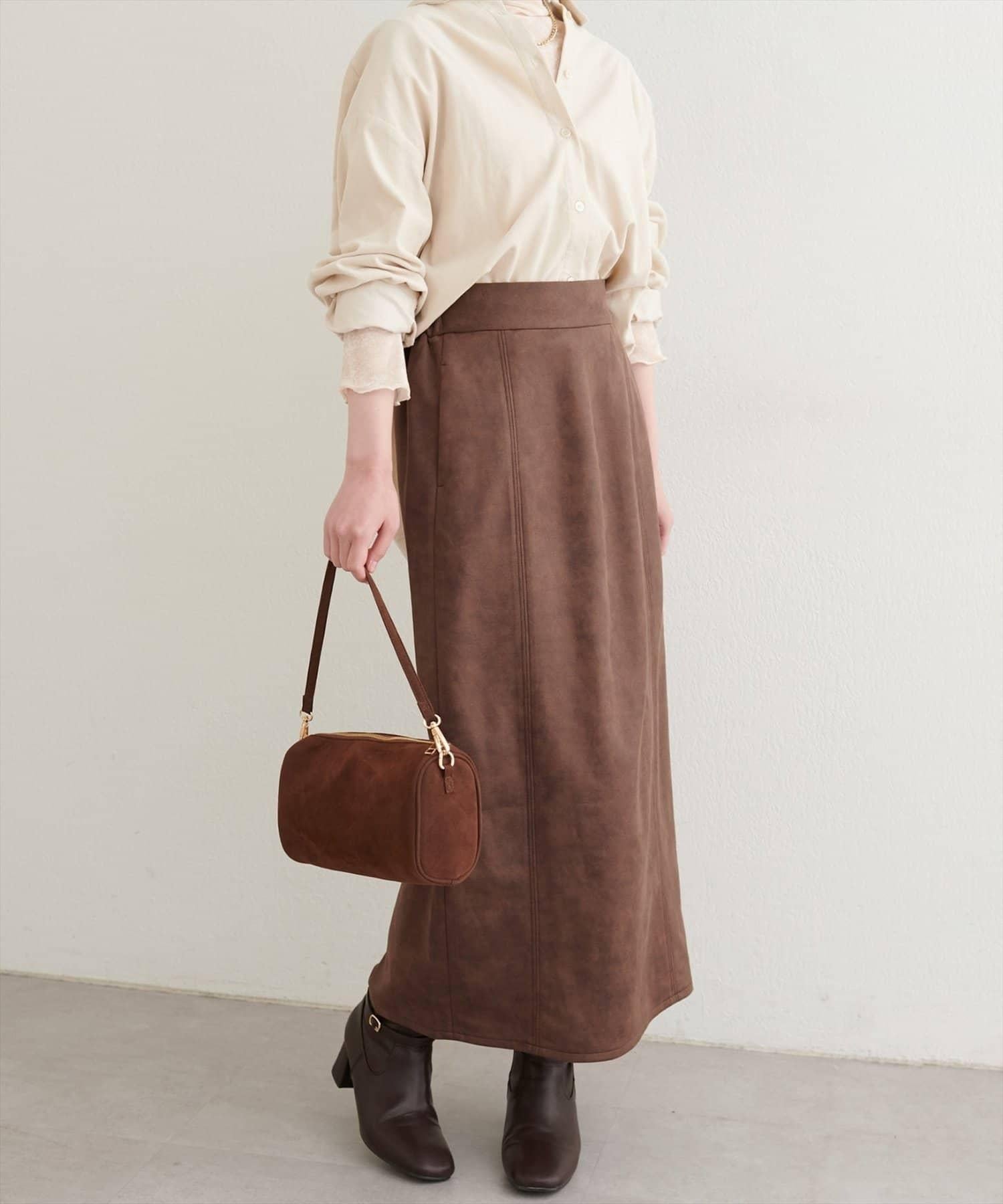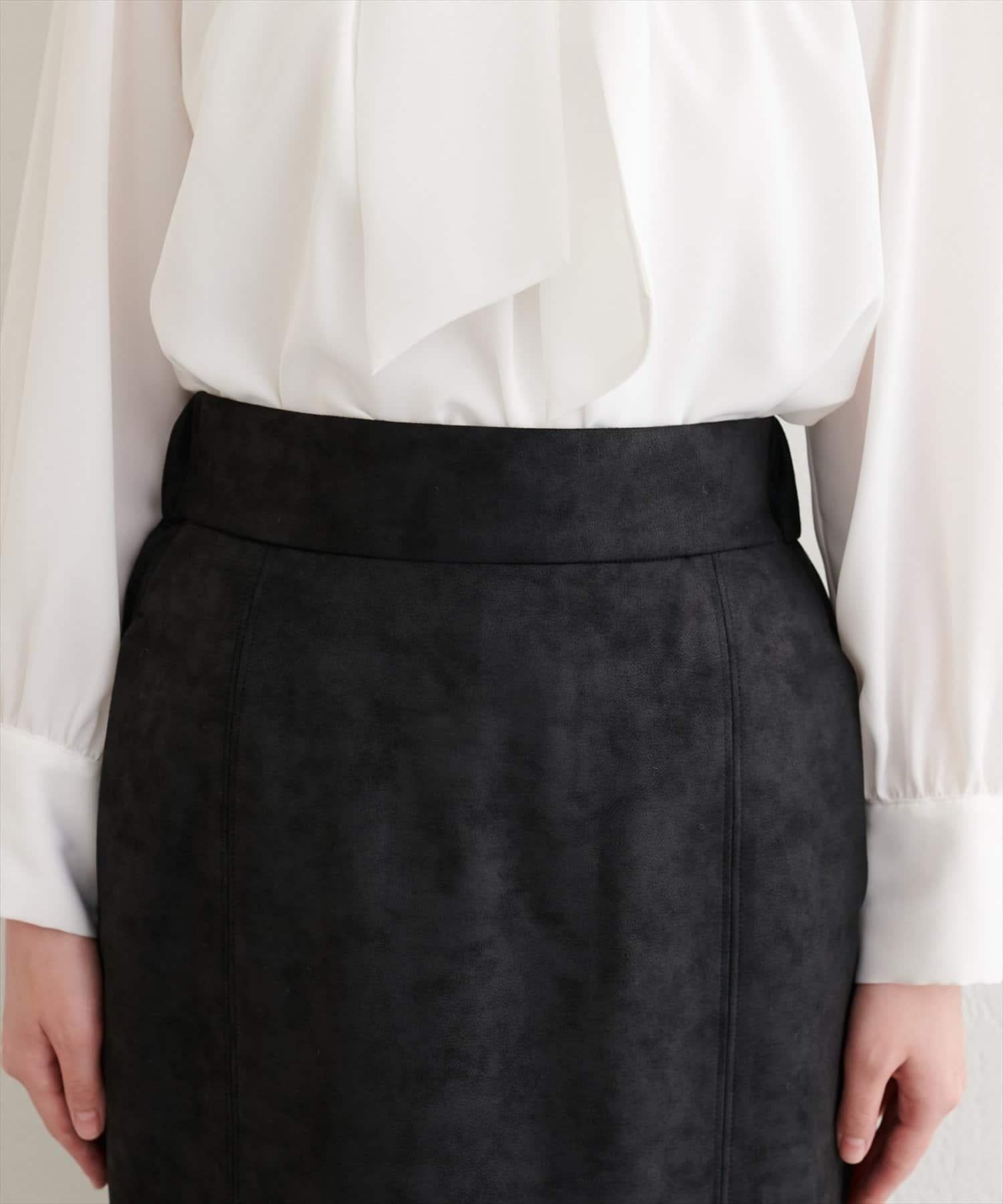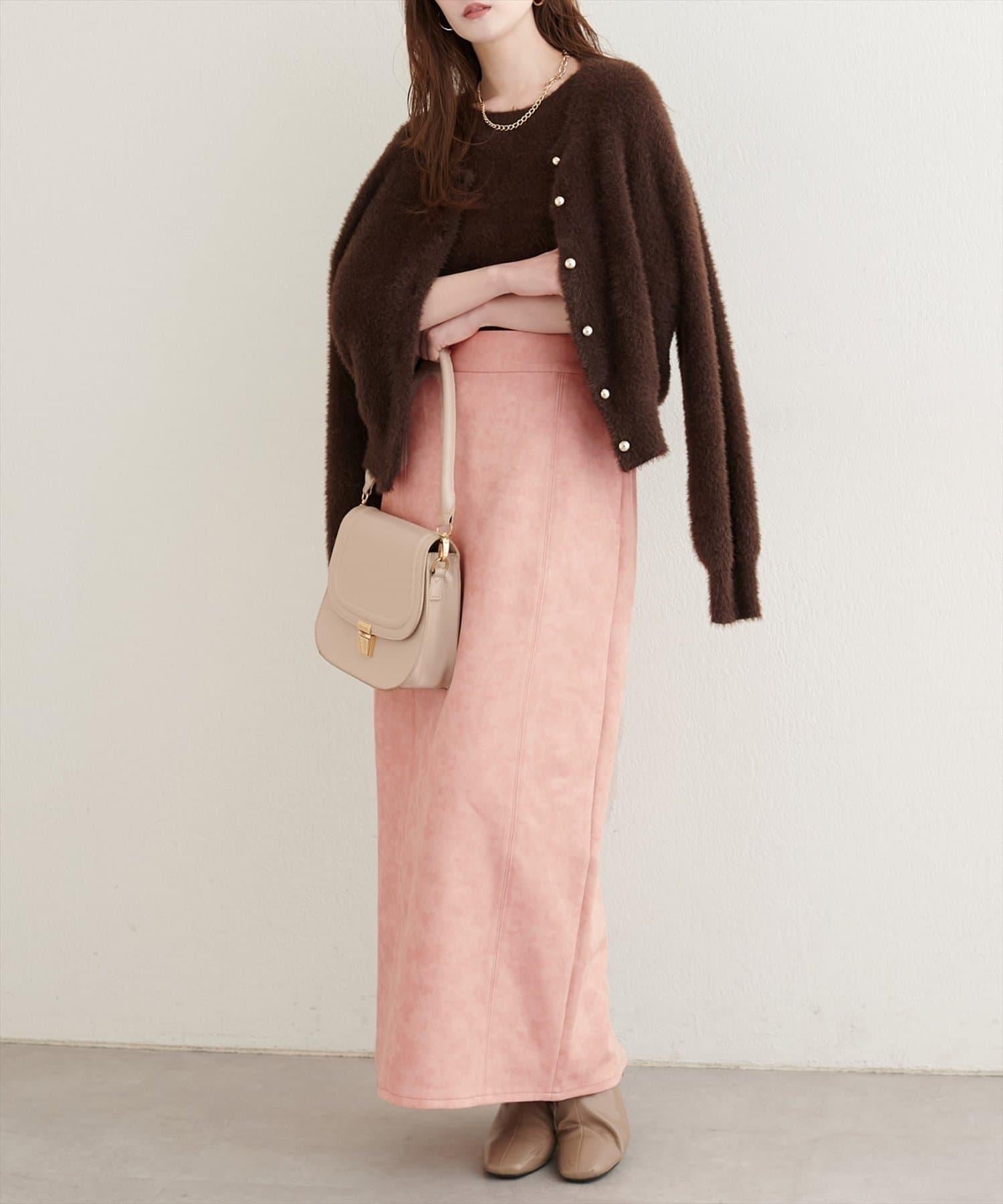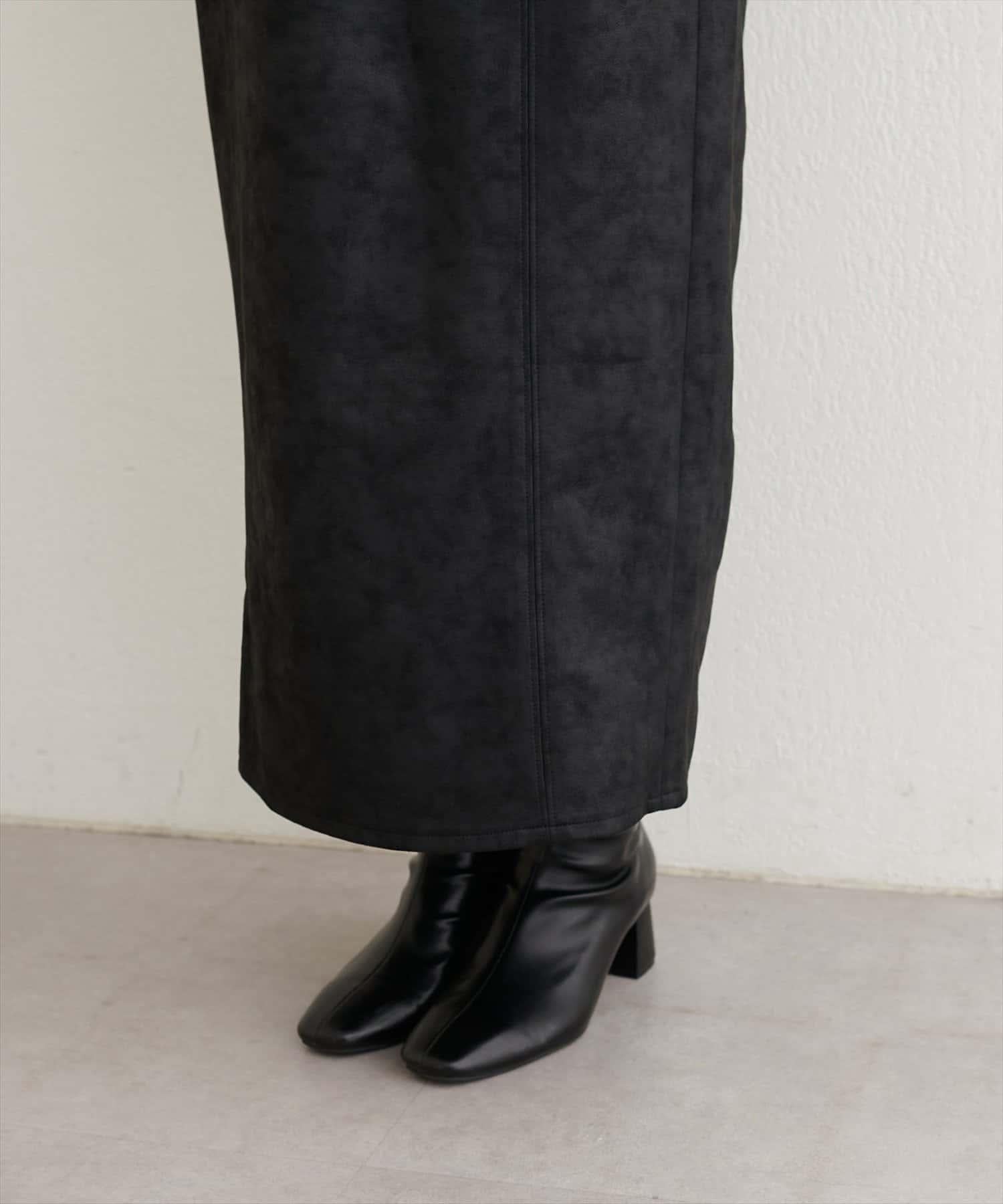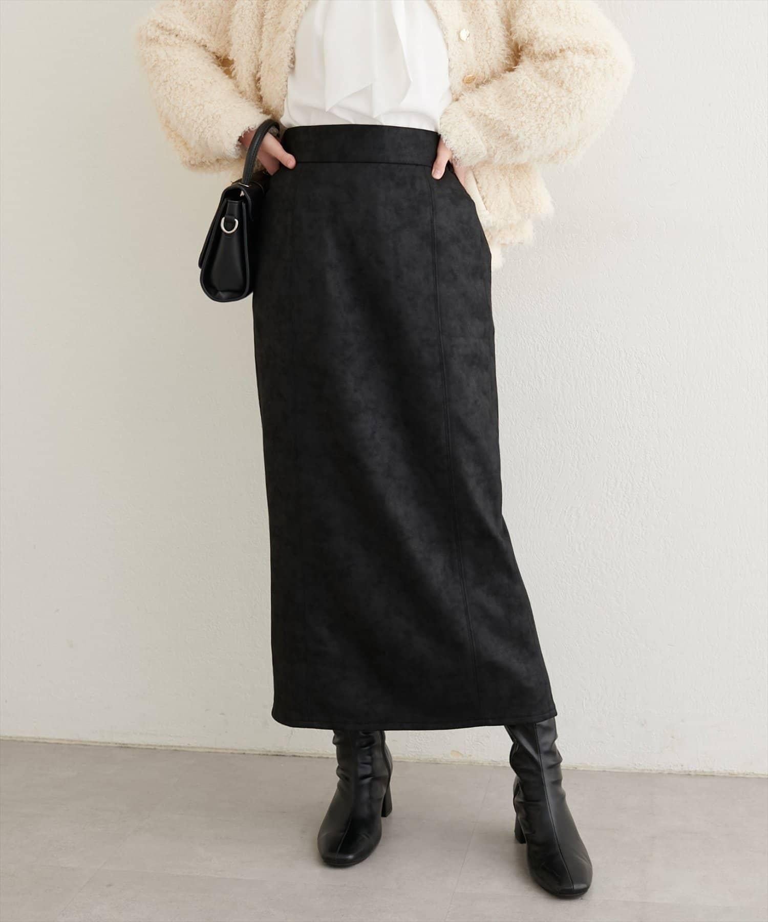 人造仿皮蓬鬆麂皮絨緊身裙,質地溼潤,手感優雅。
