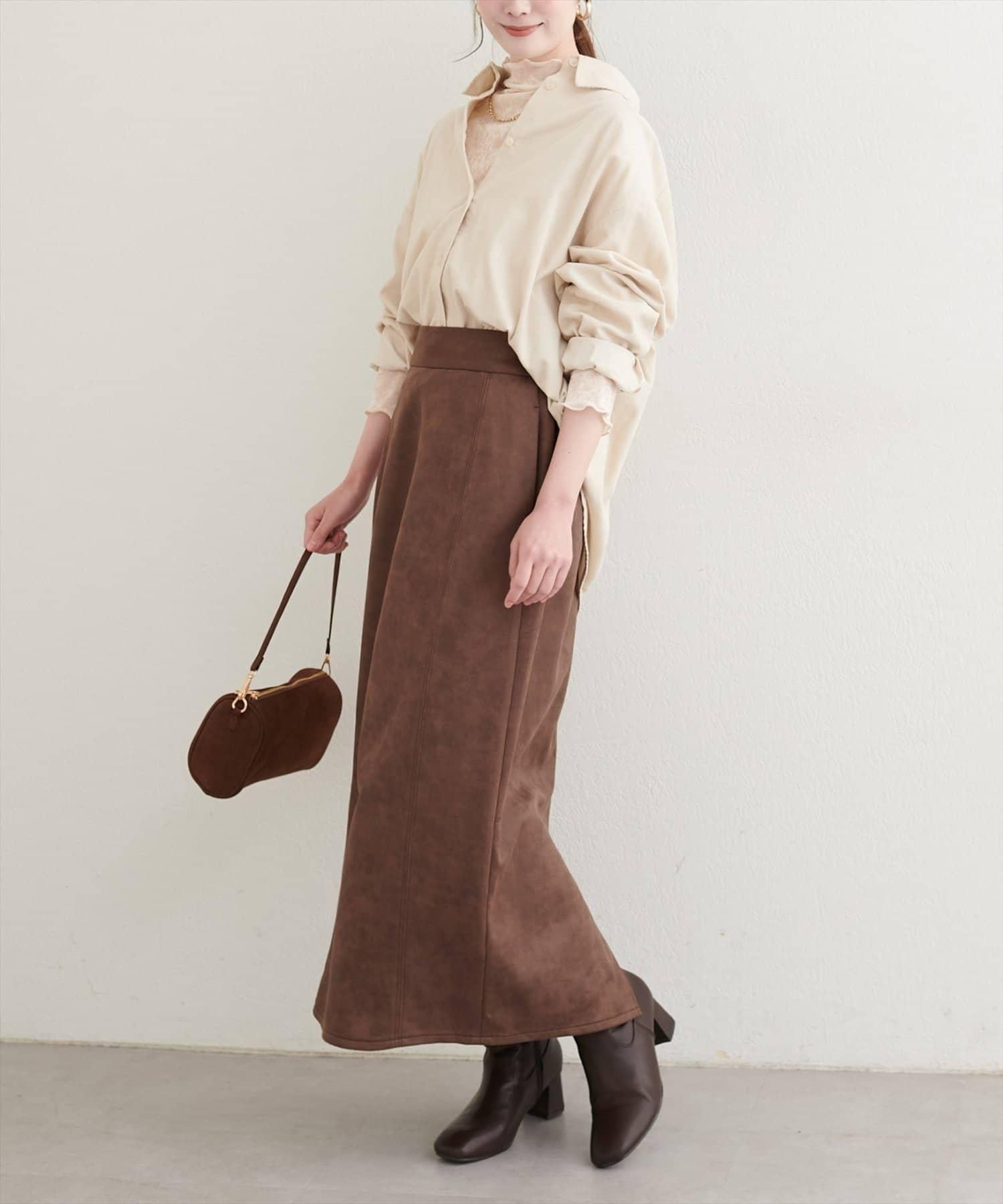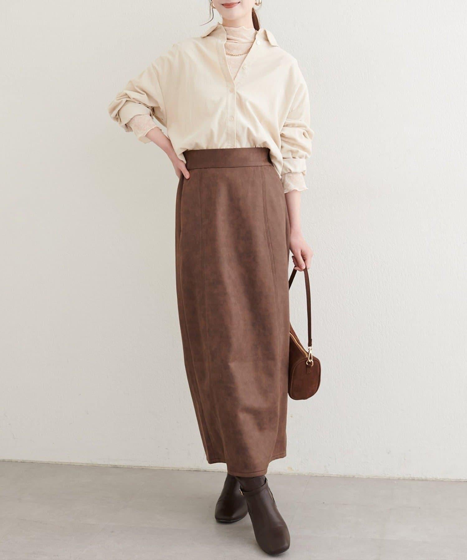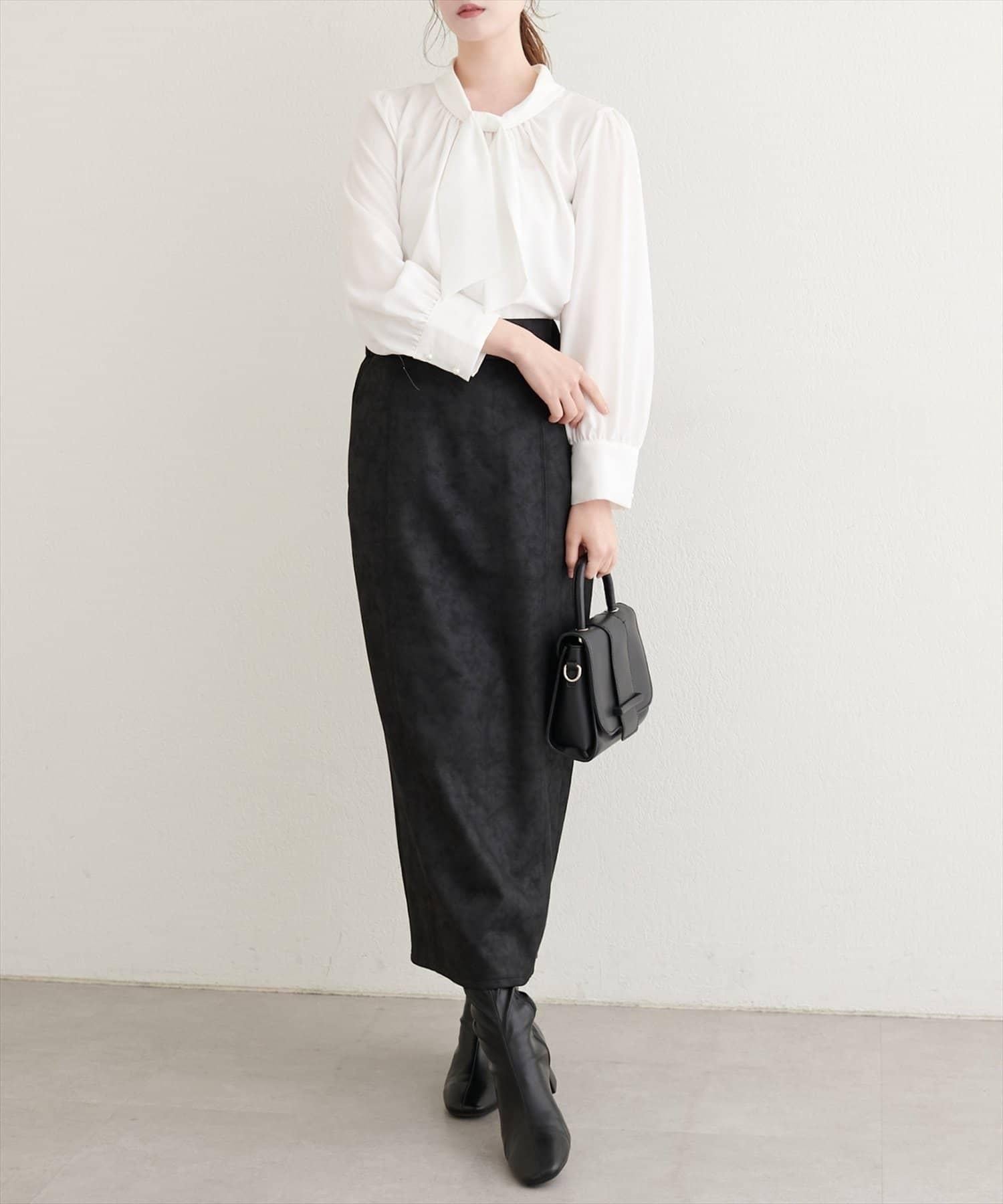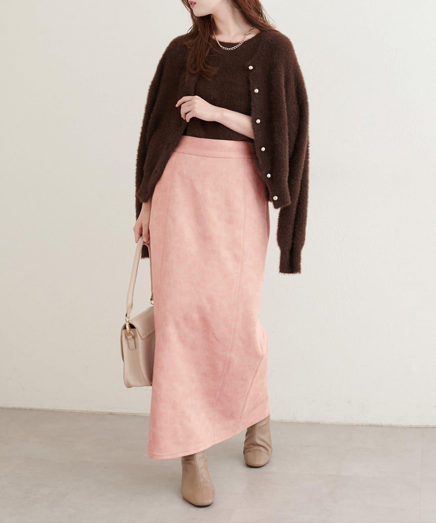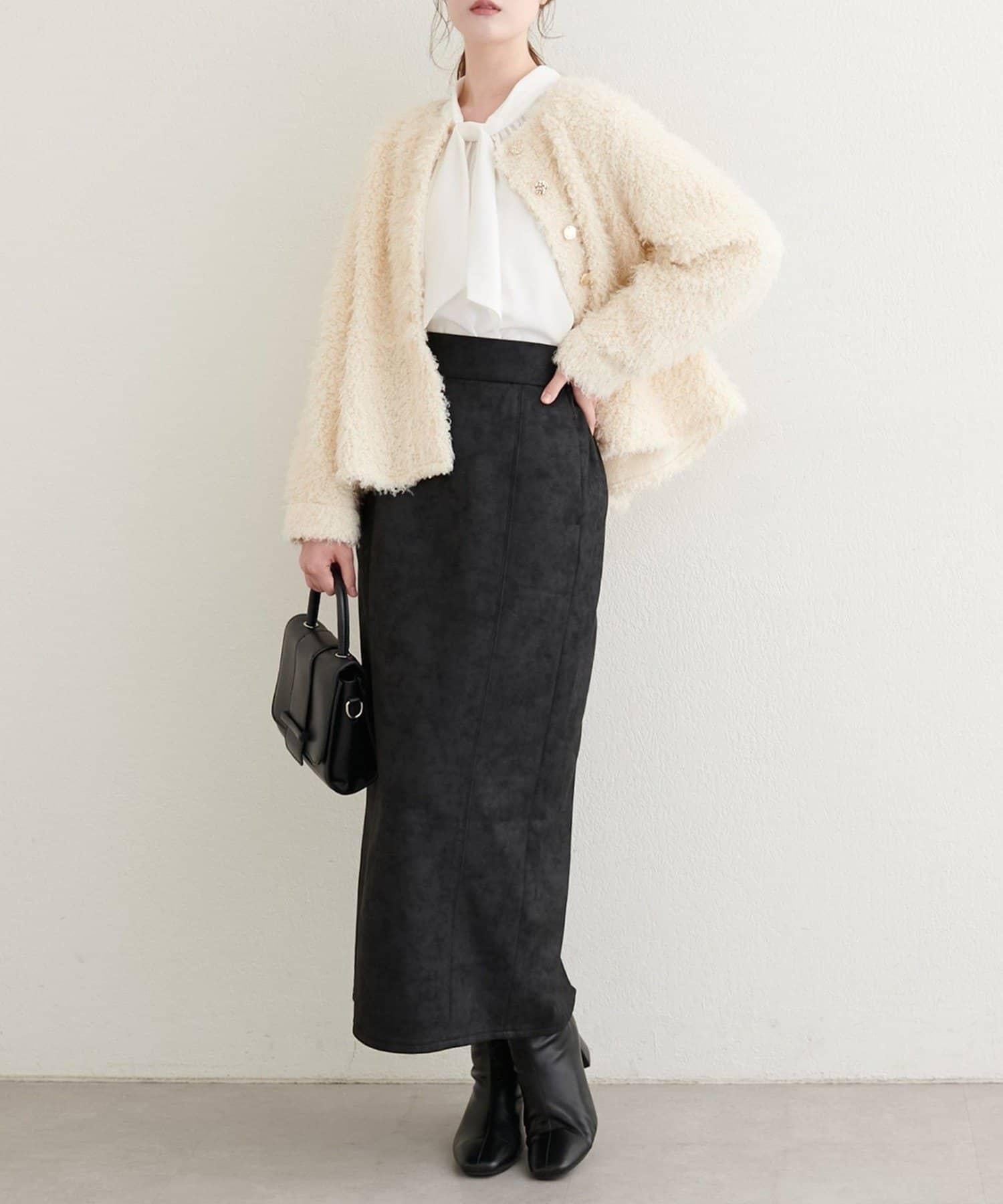 人造仿皮蓬鬆麂皮絨緊身裙,質地溼潤,手感優雅。