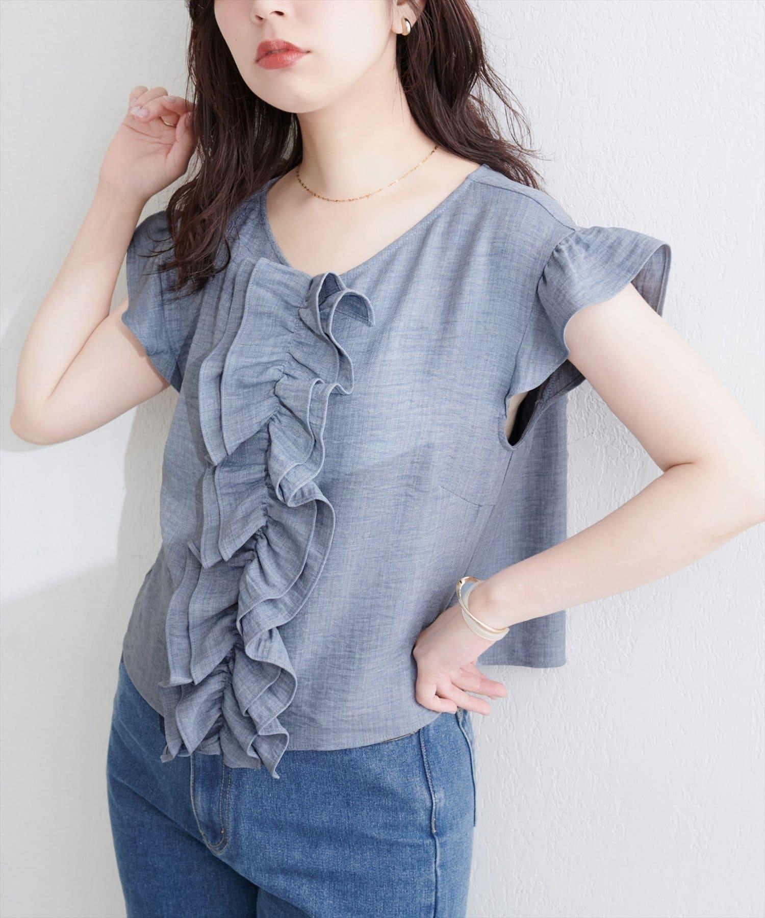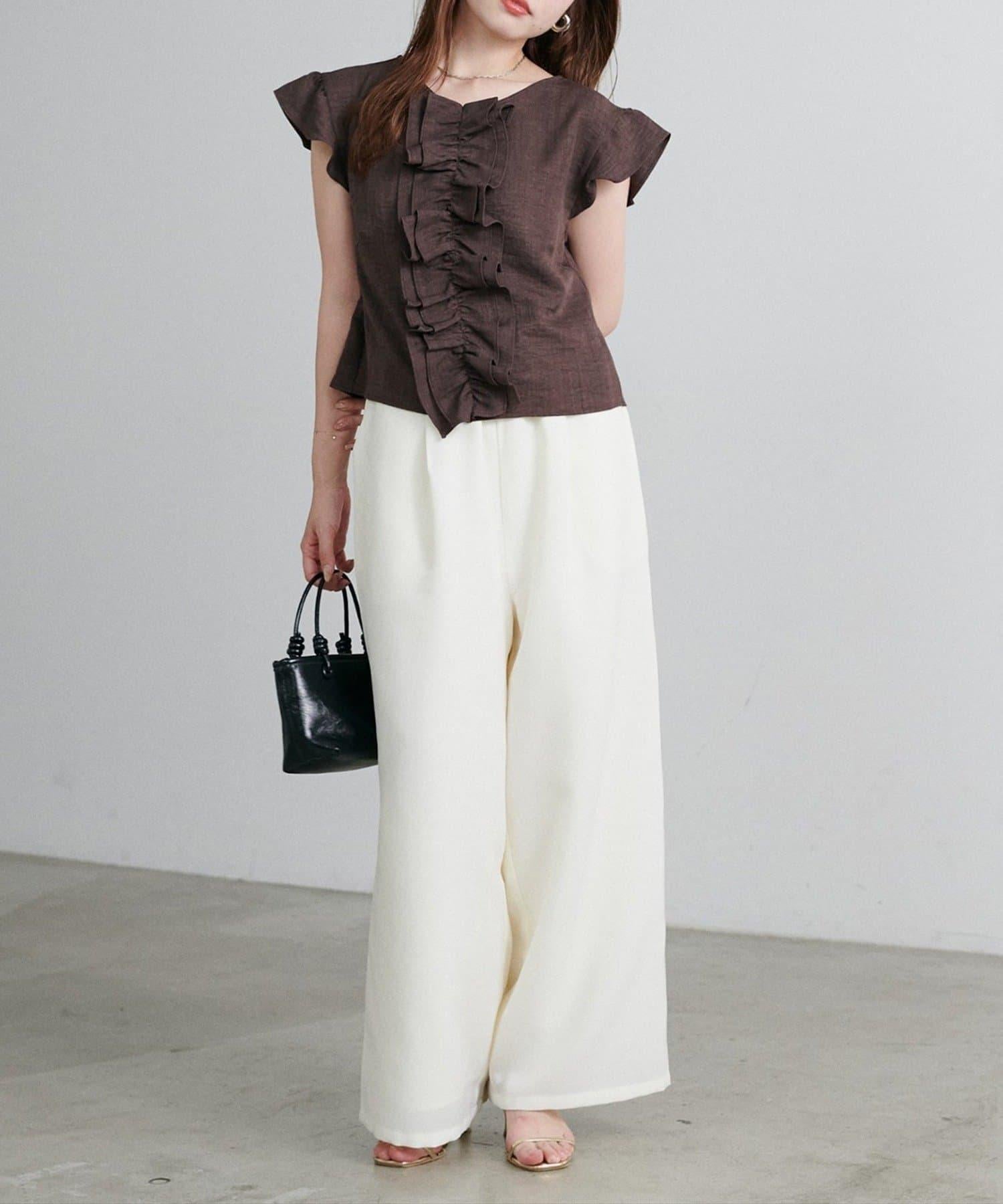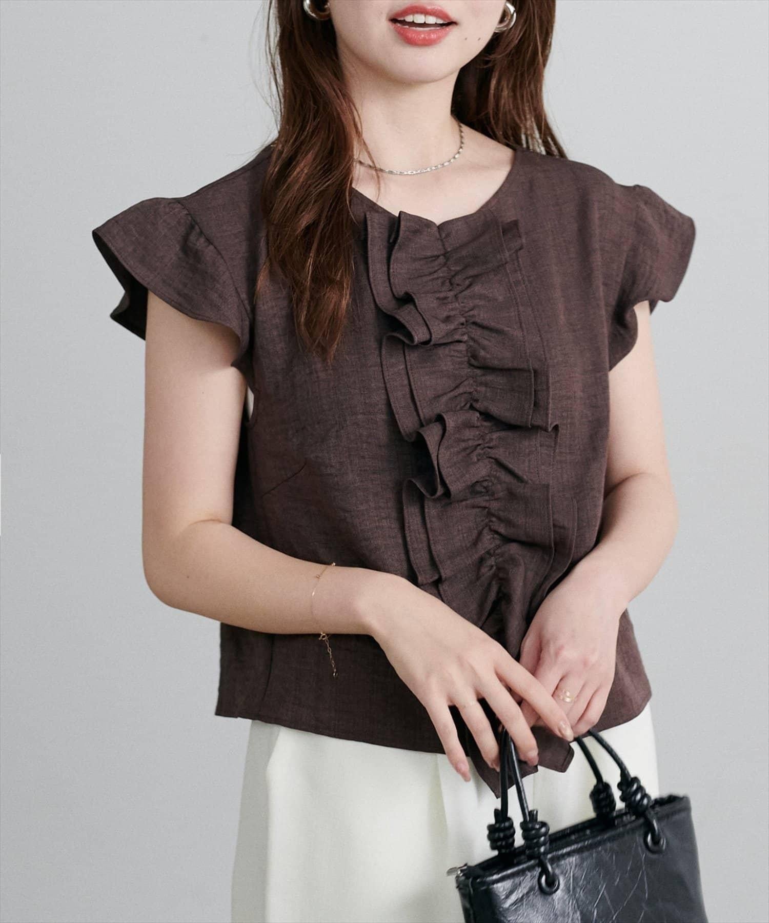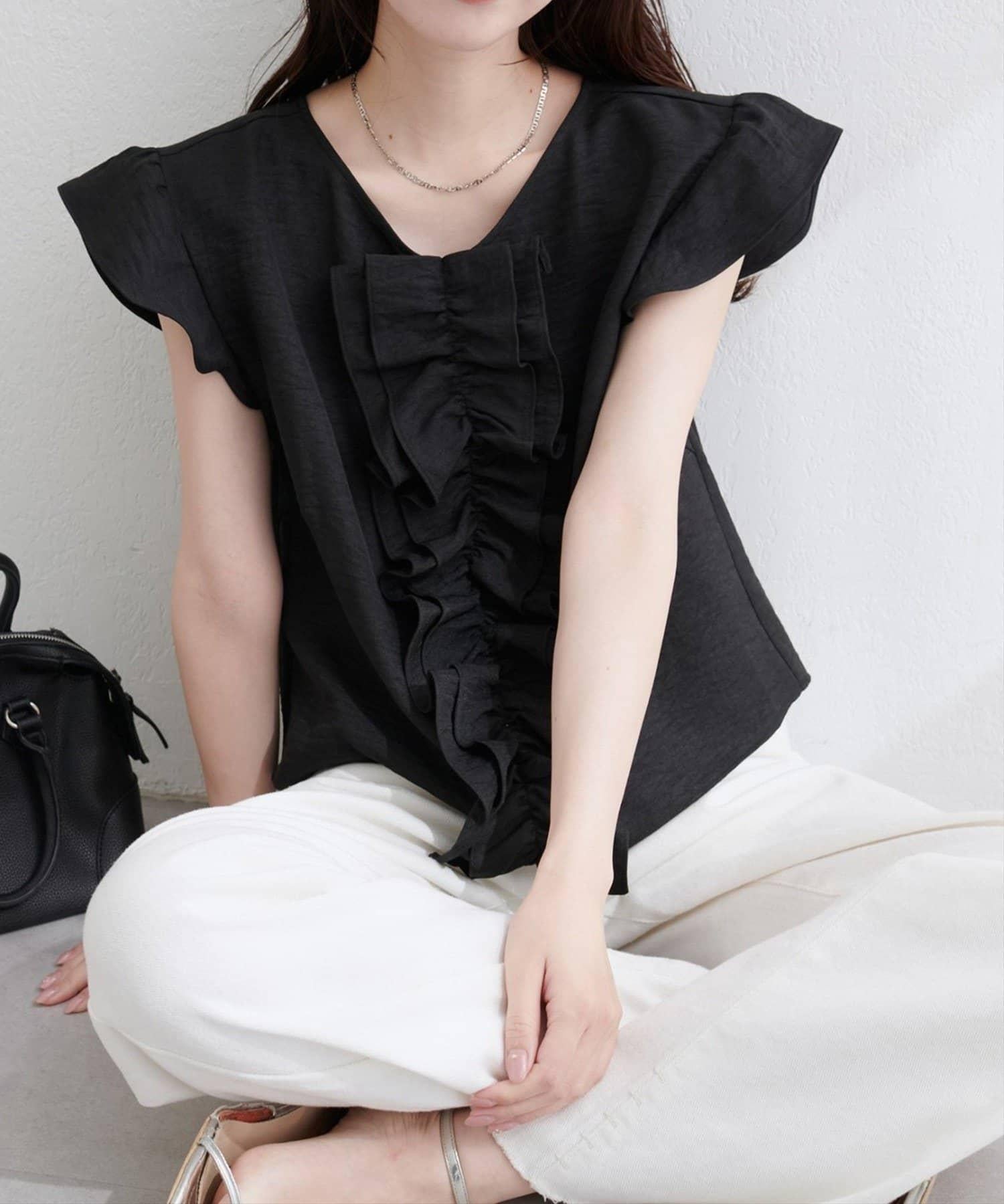 胸前的荷葉邊在您的一舉一動中展現出優雅的表情,提升穿著者的魅力。