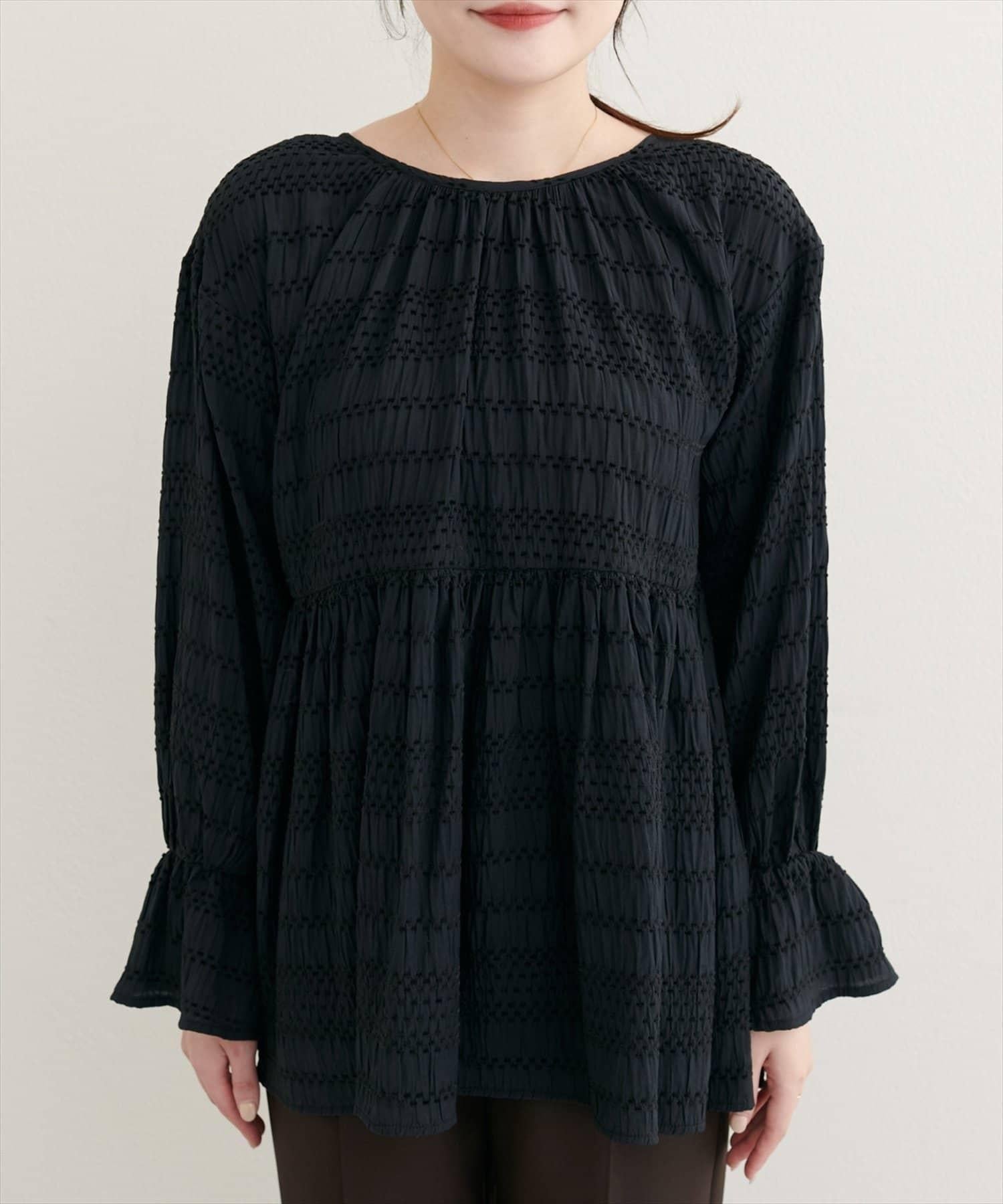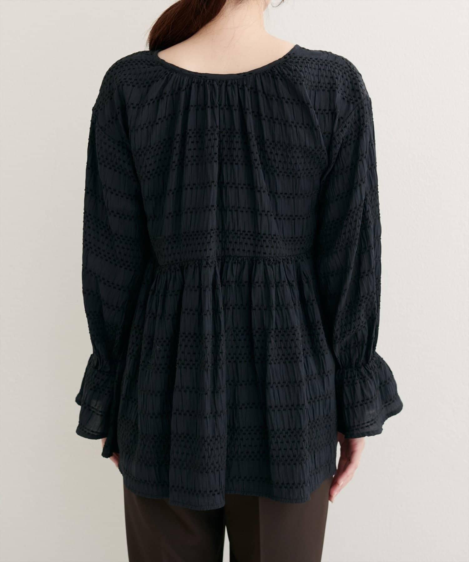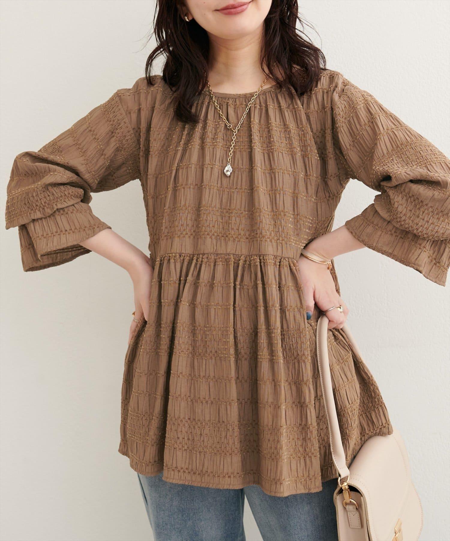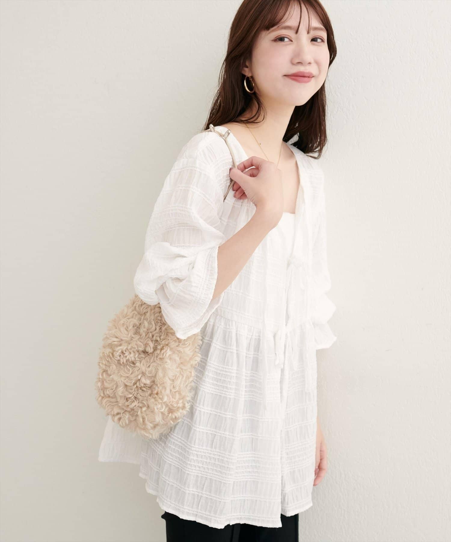 【natural couture】條紋燈籠袖荷葉邊上衣