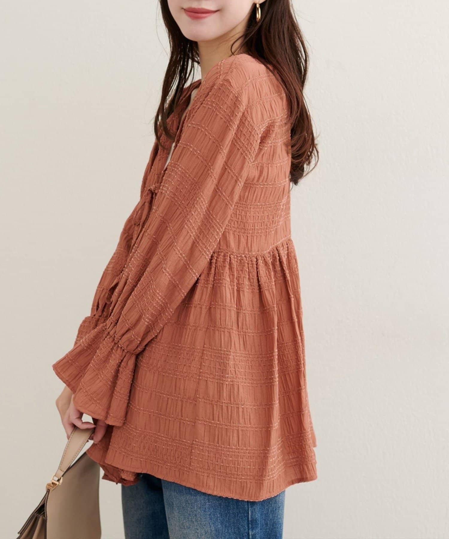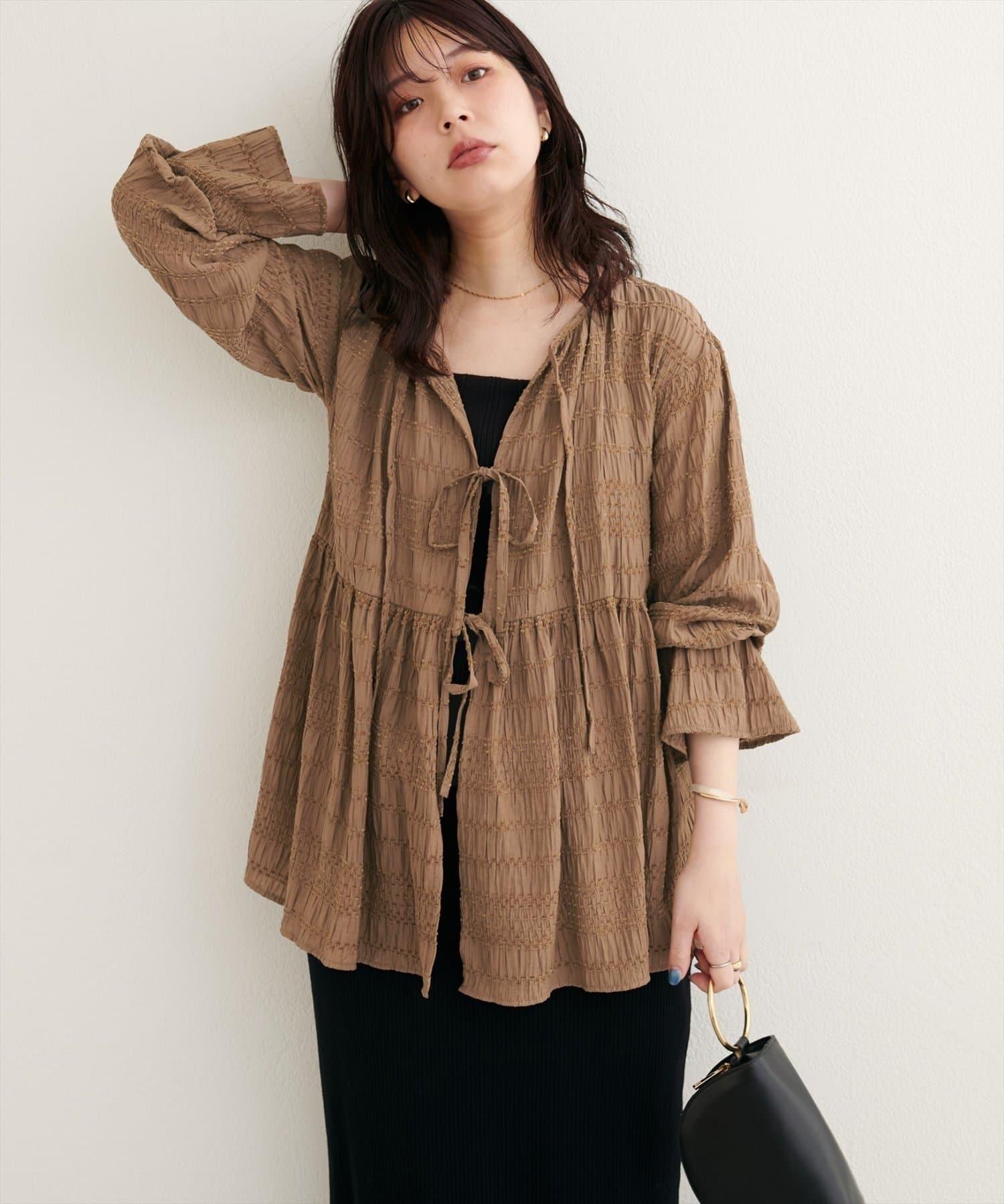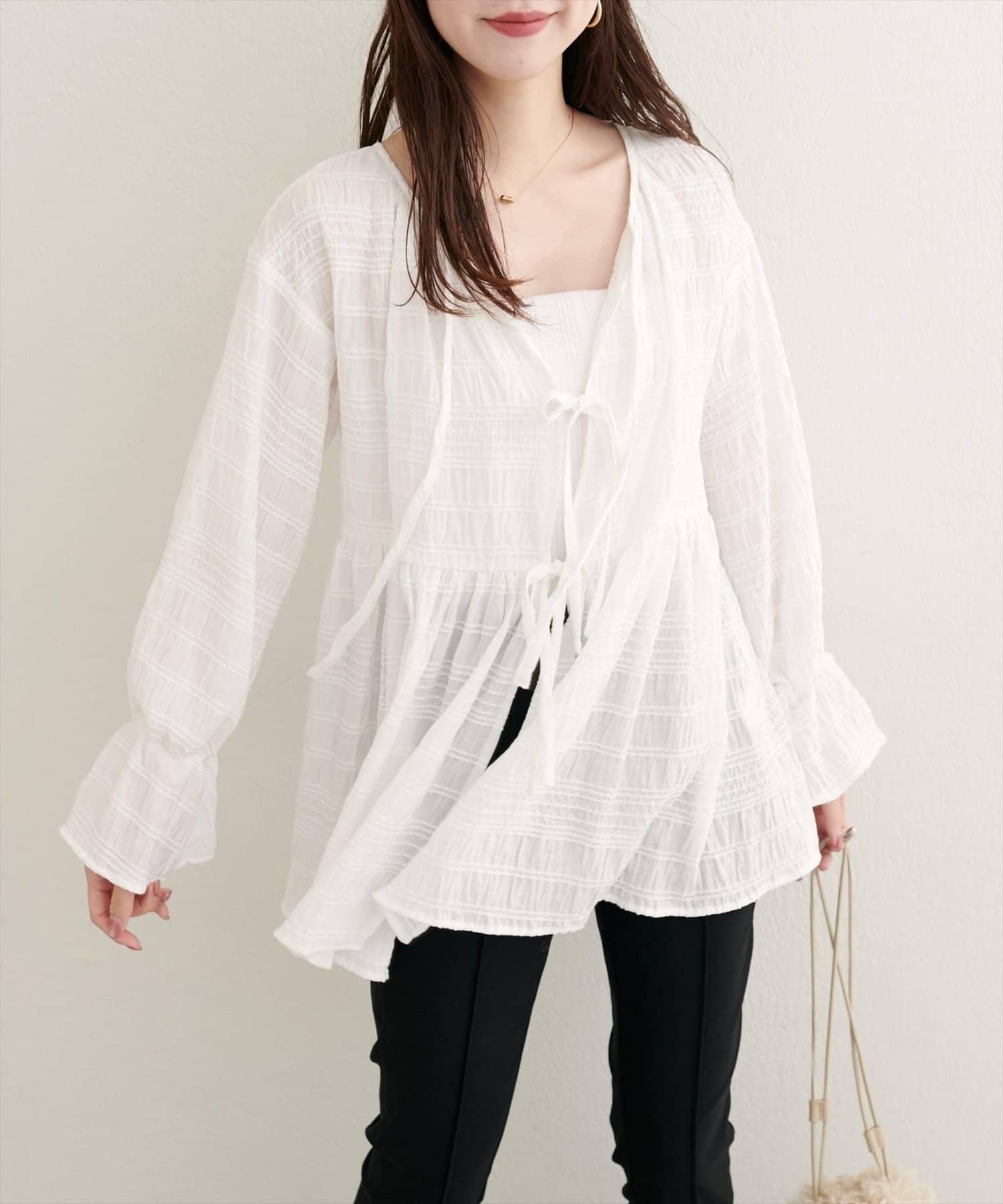 【natural couture】條紋燈籠袖荷葉邊上衣
