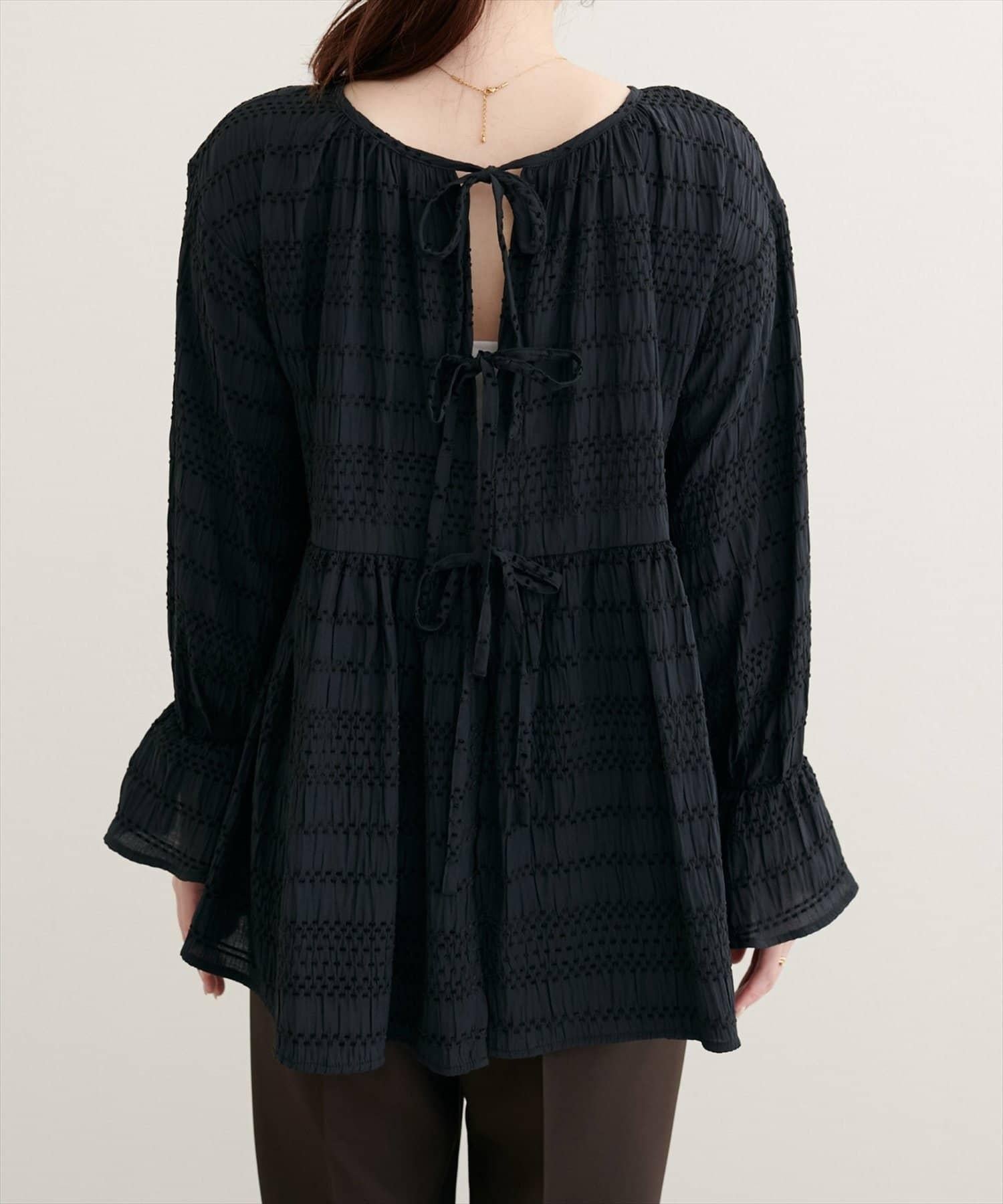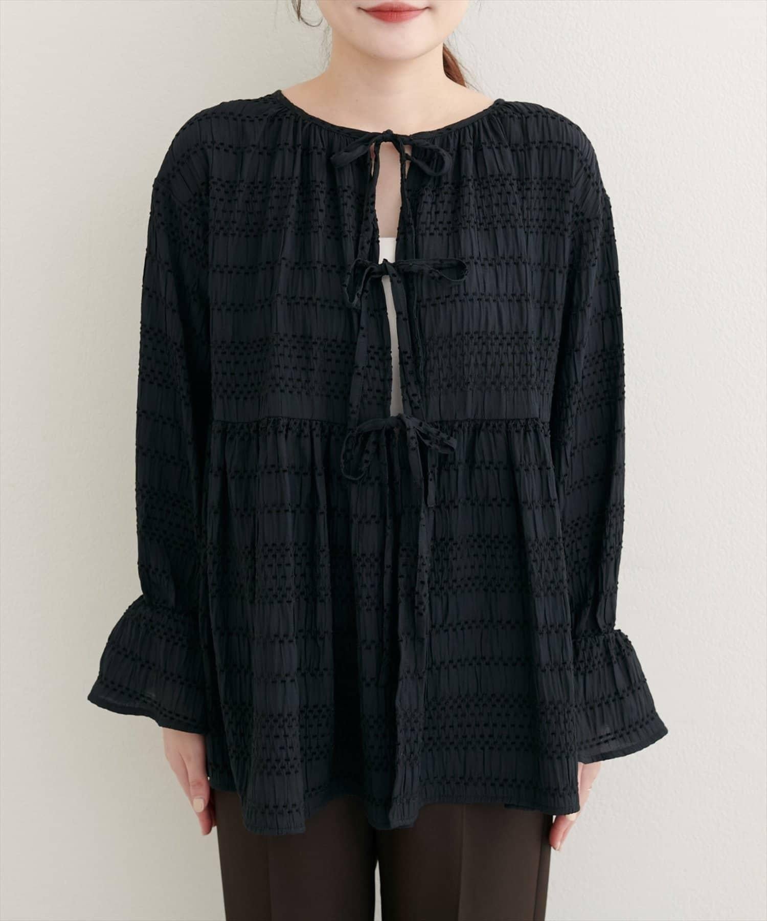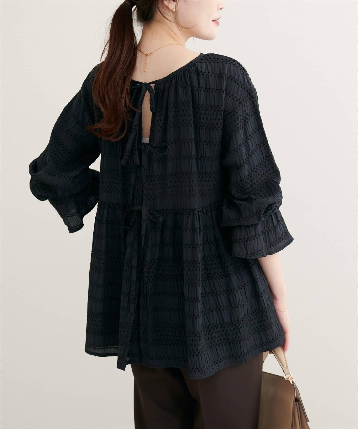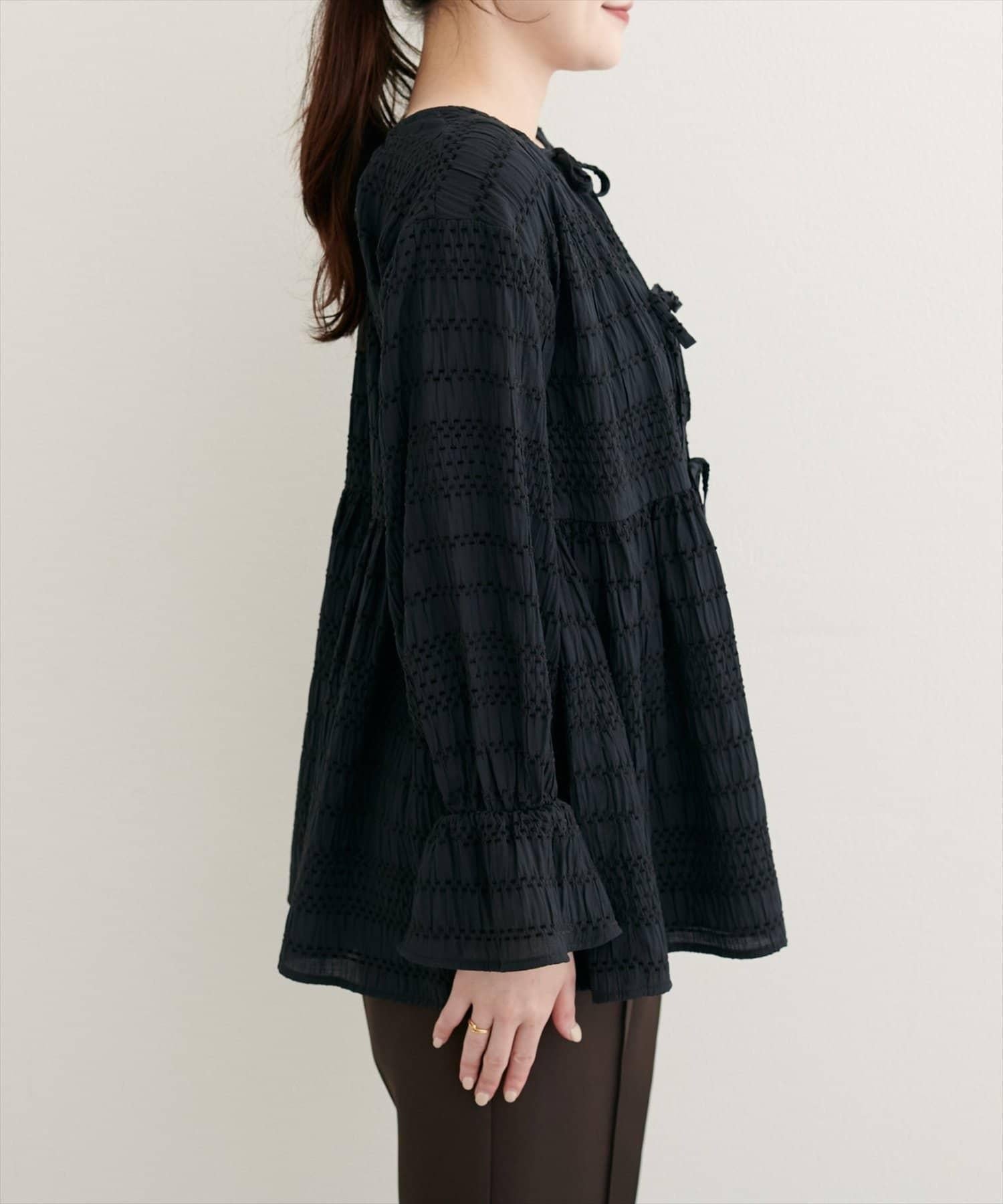 【natural couture】條紋燈籠袖荷葉邊上衣