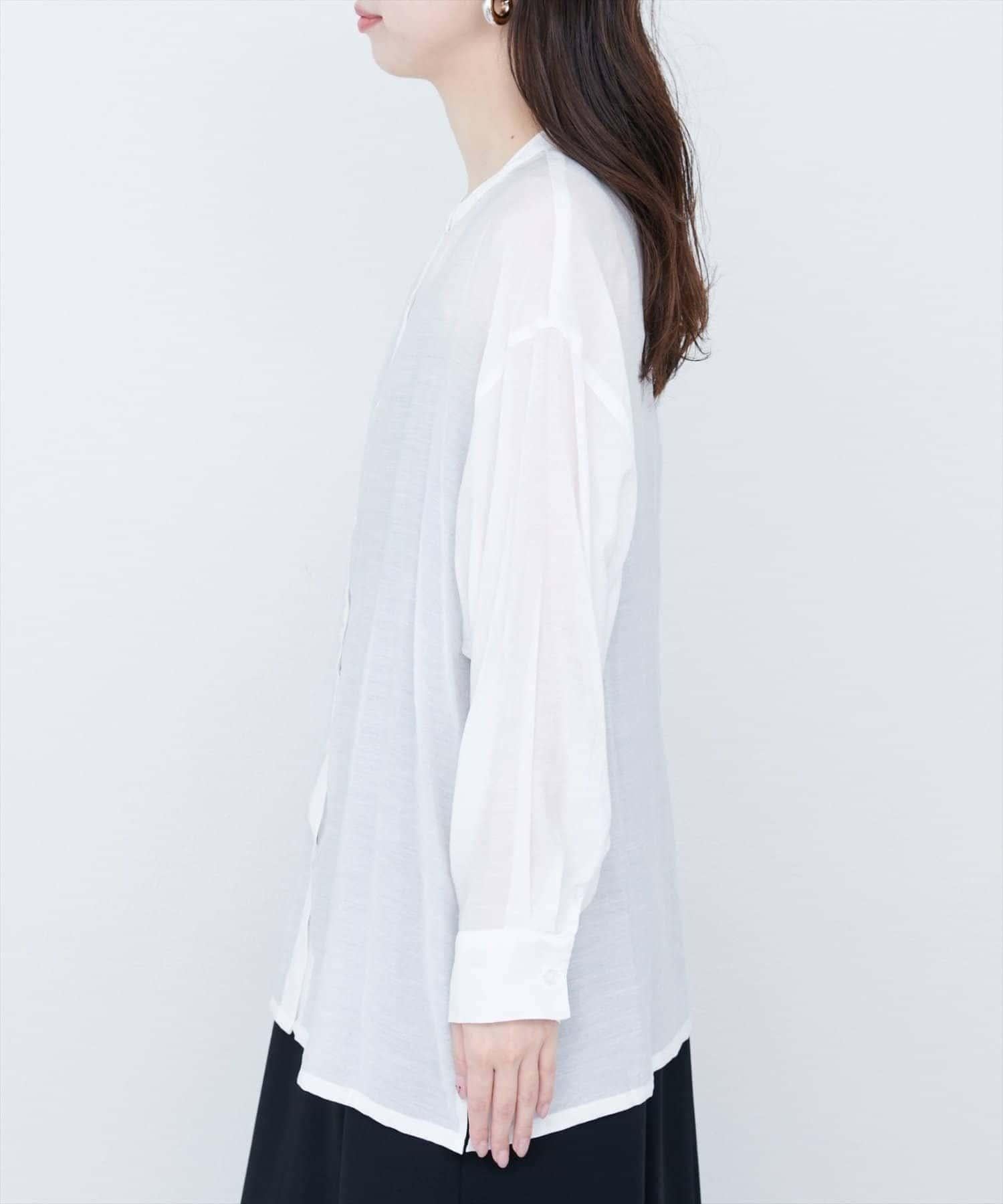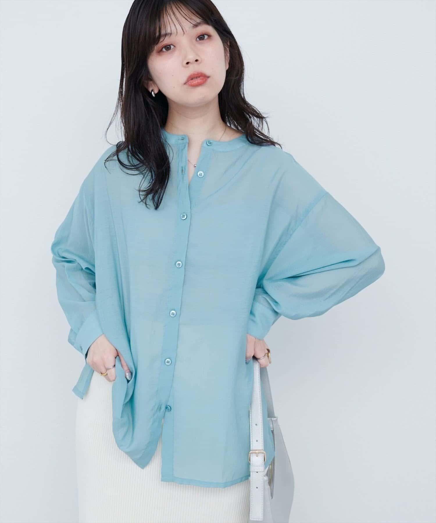 帶狀領設計使頸部看起來乾淨利落,增添了優雅的印象。休閒又不失精緻。