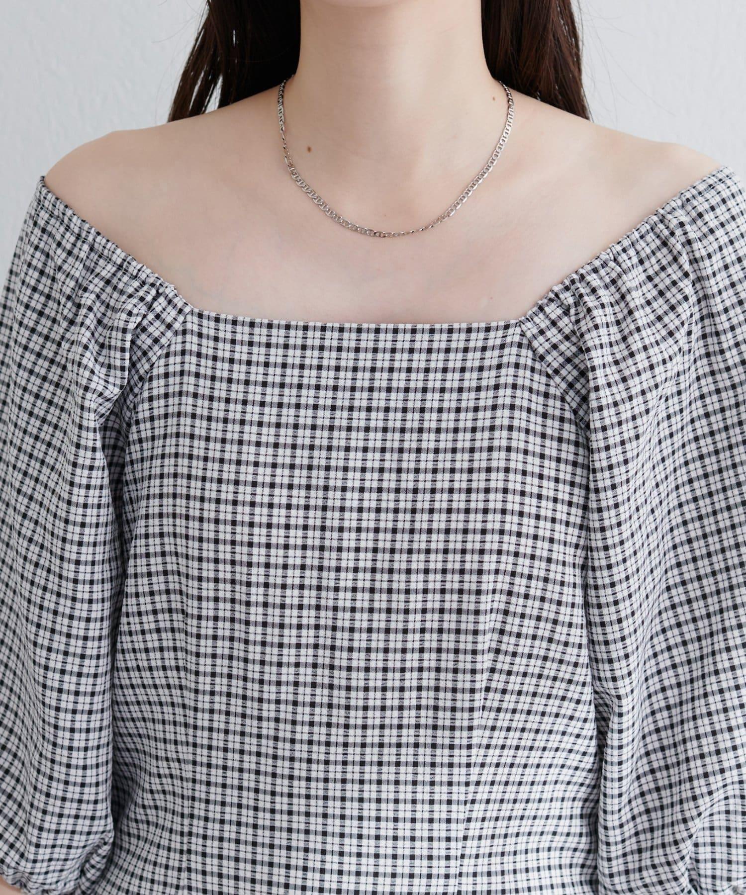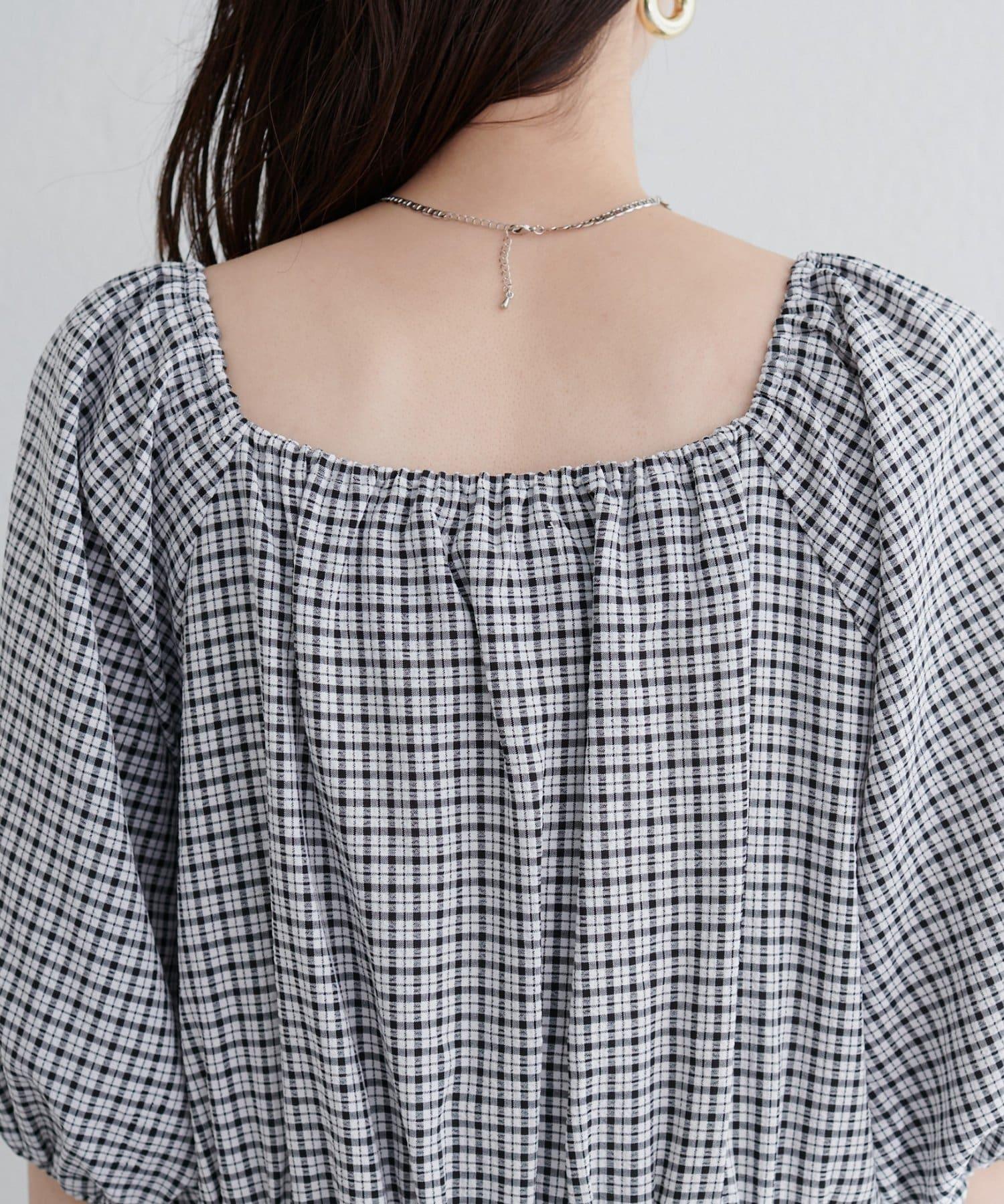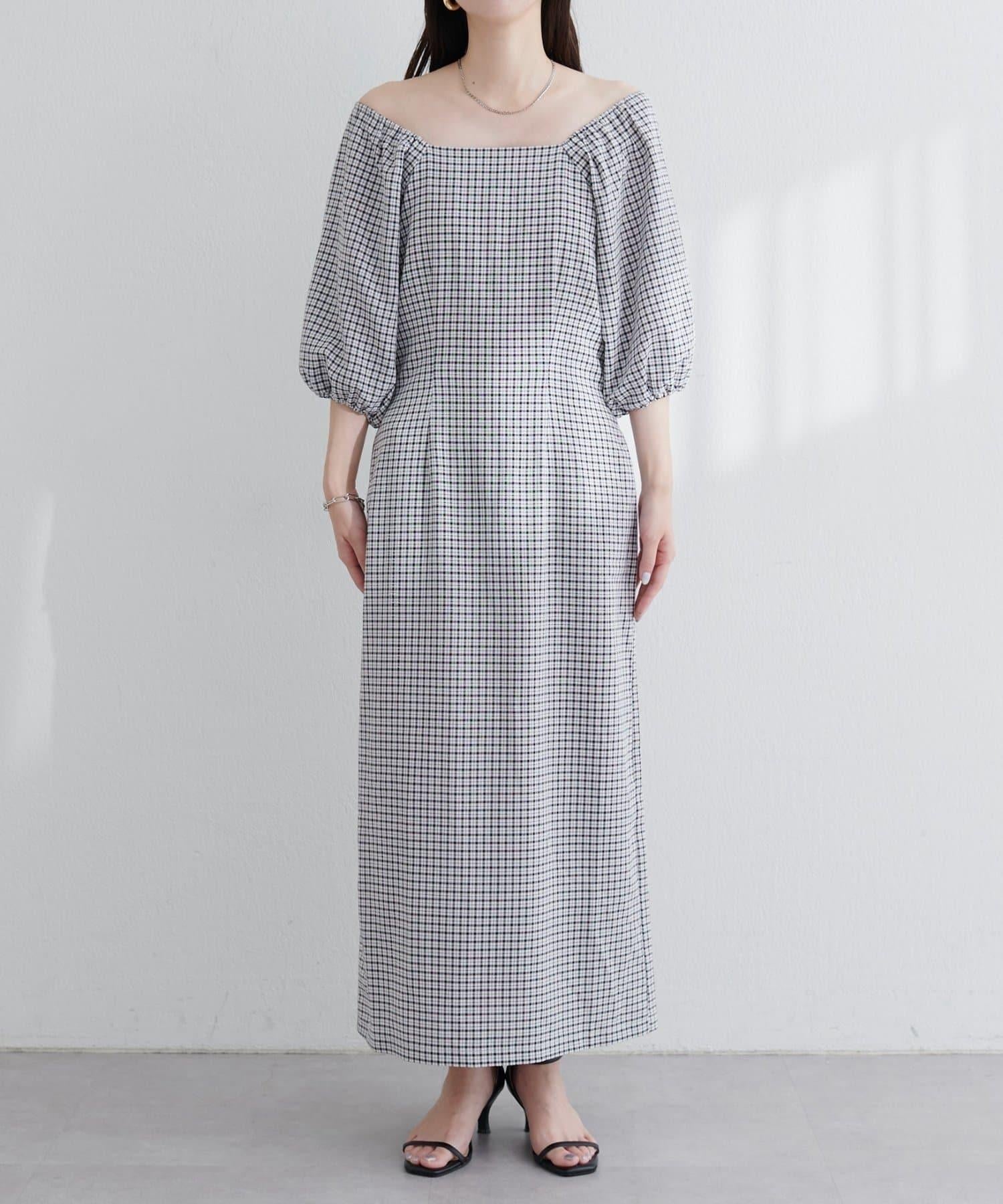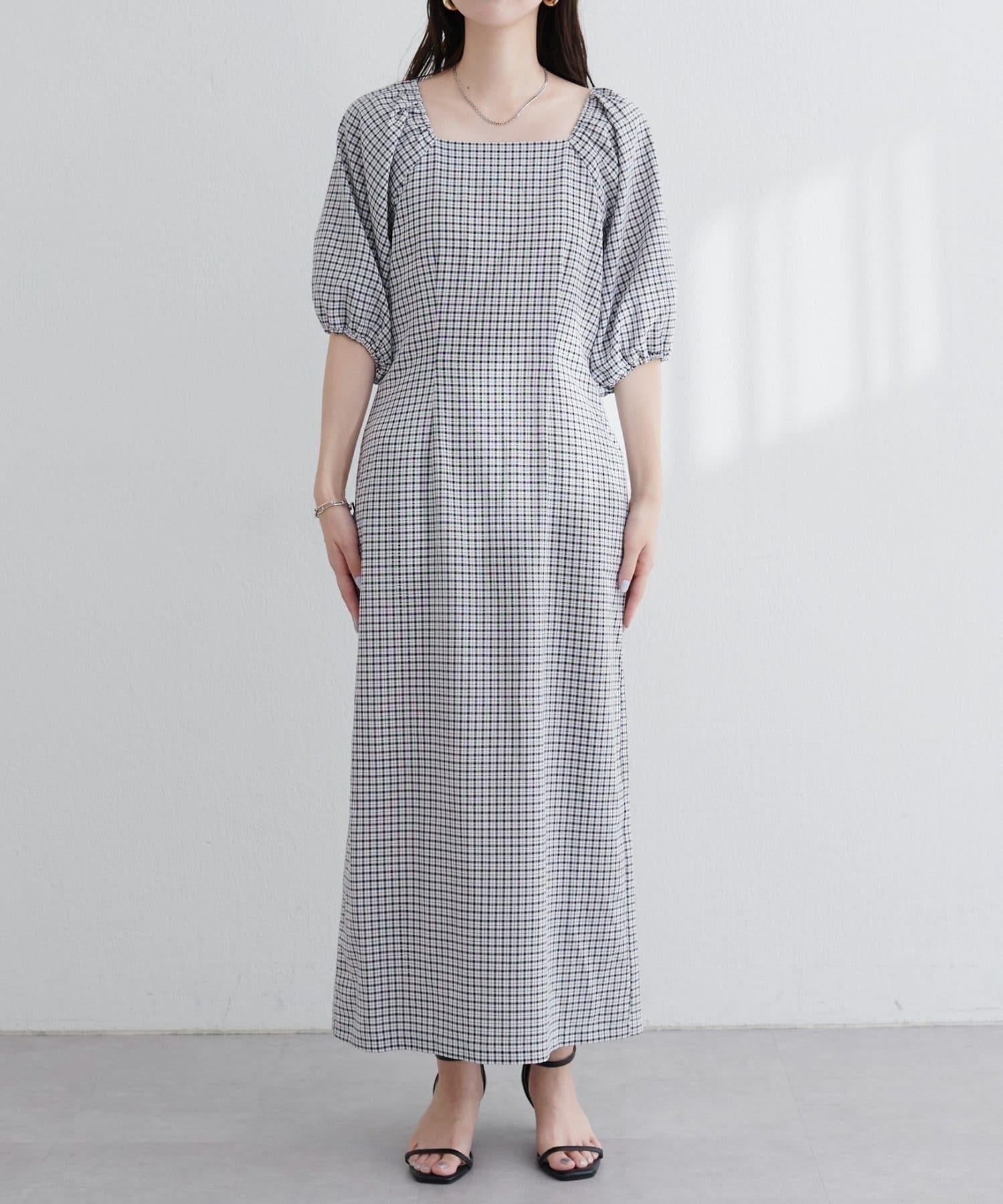 【natural couture】立體格紋泡泡袖連衣裙