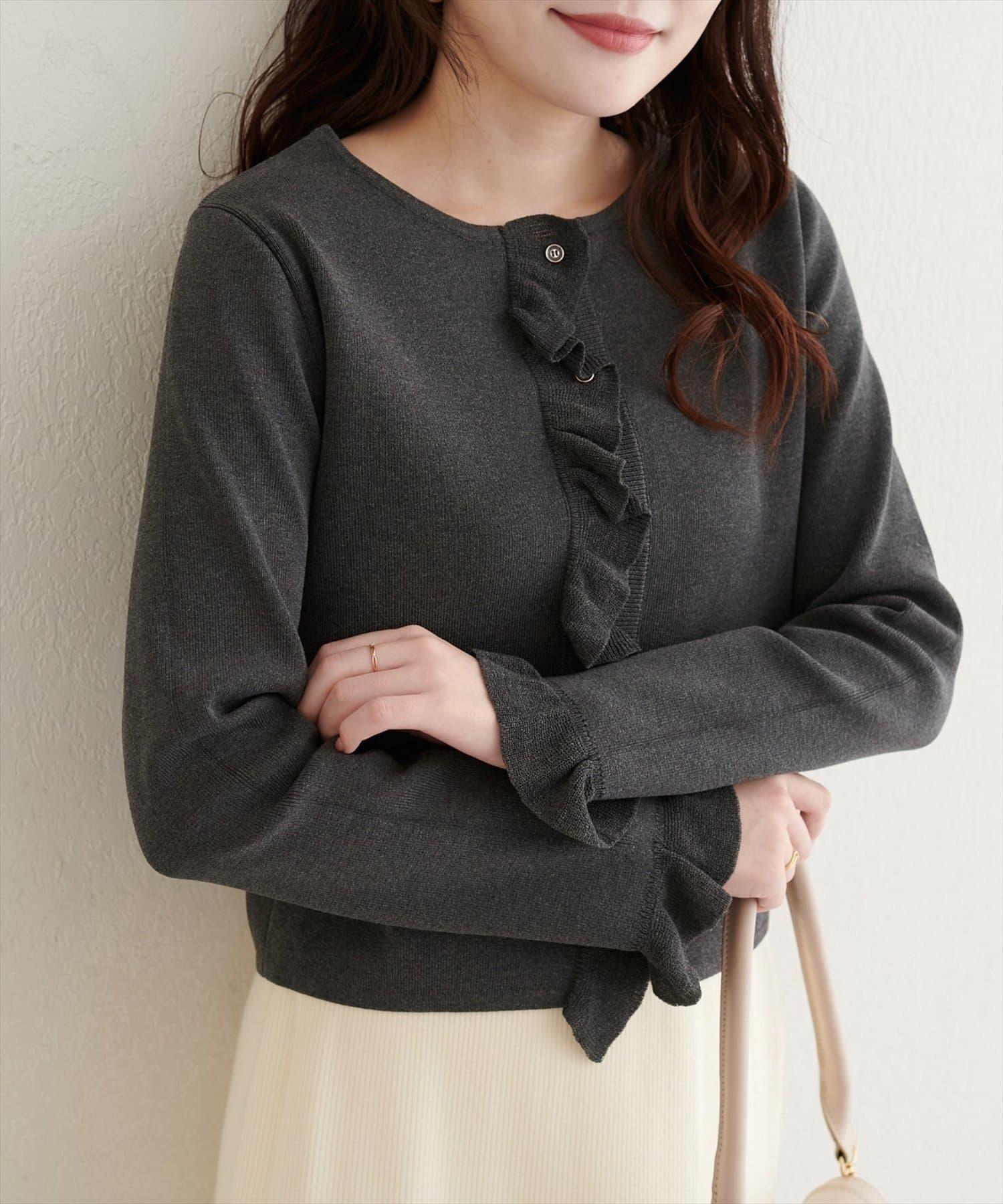 前襟的褶邊營造出可愛又不失甜美的成人風。