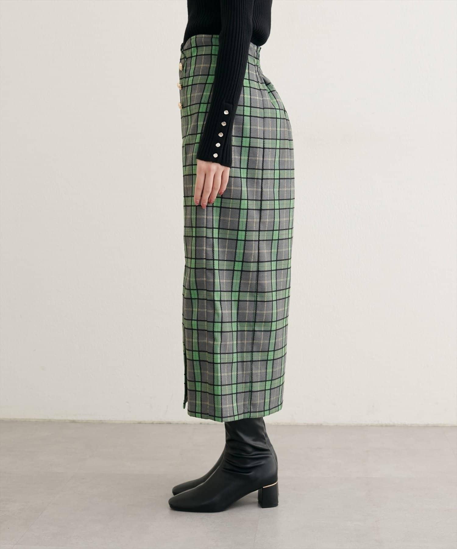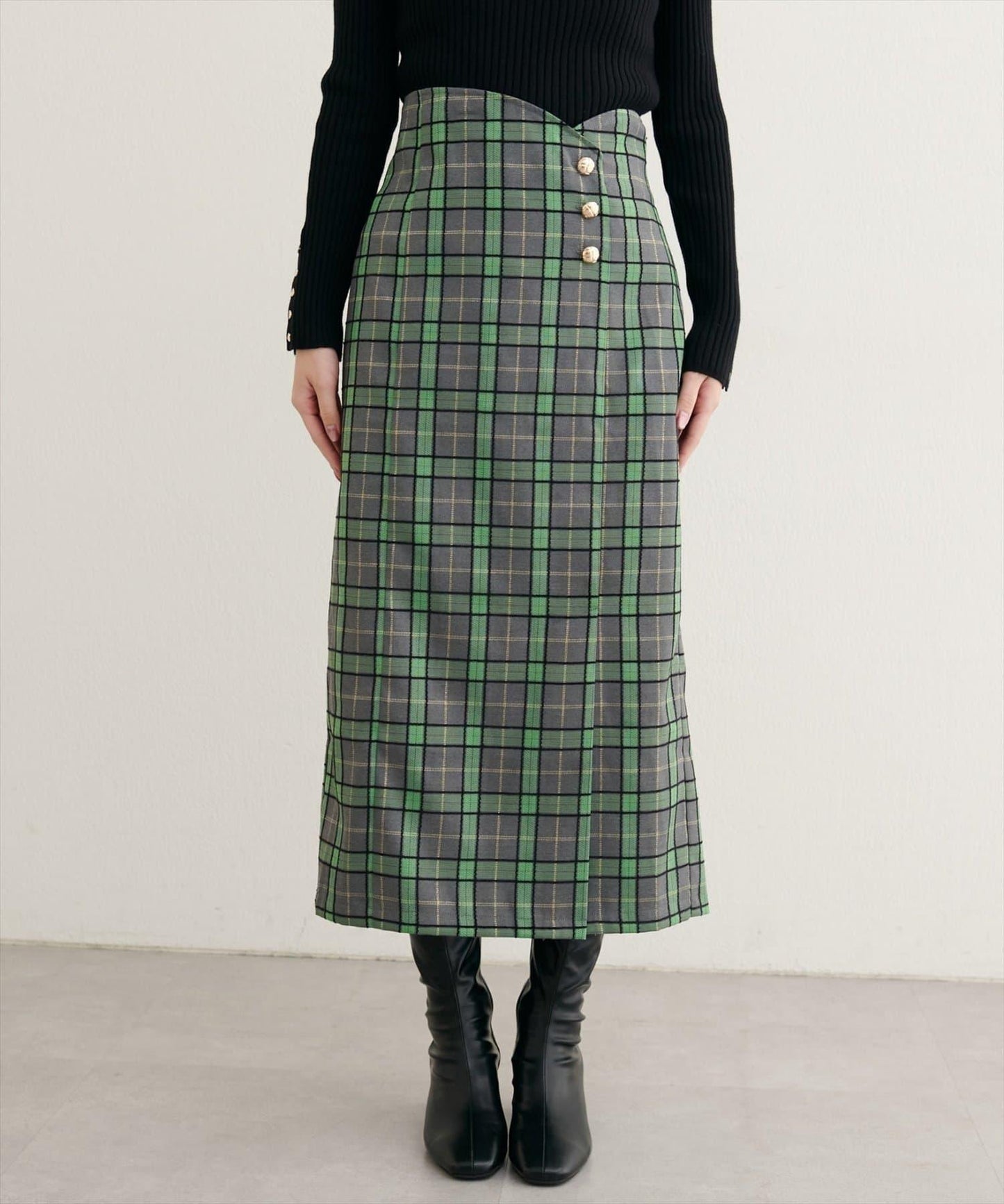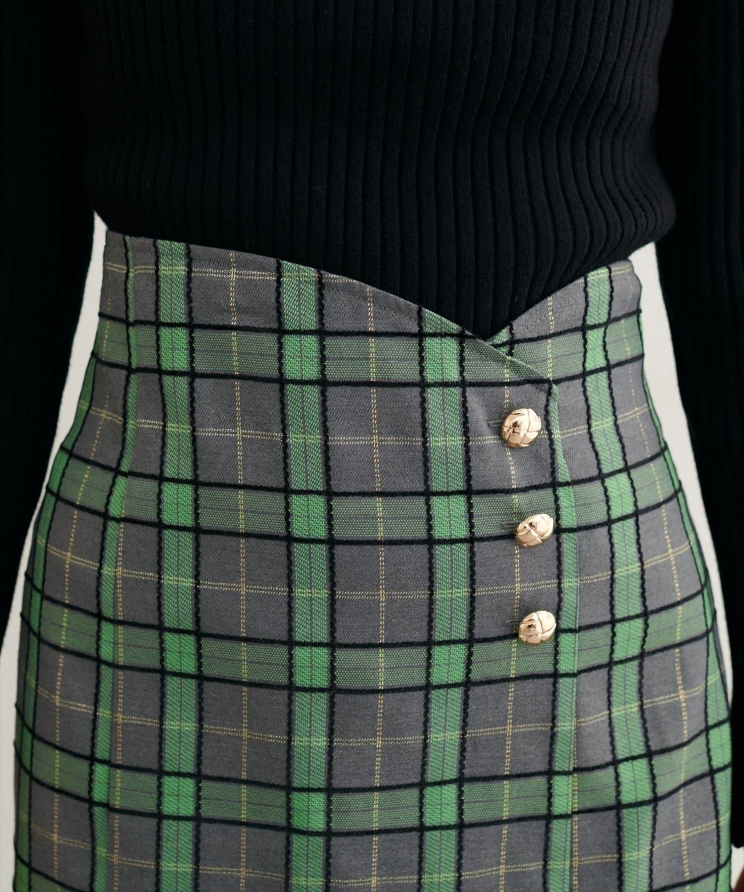 正面的設計鈕釦為裙子增添了微妙的點睛之筆。