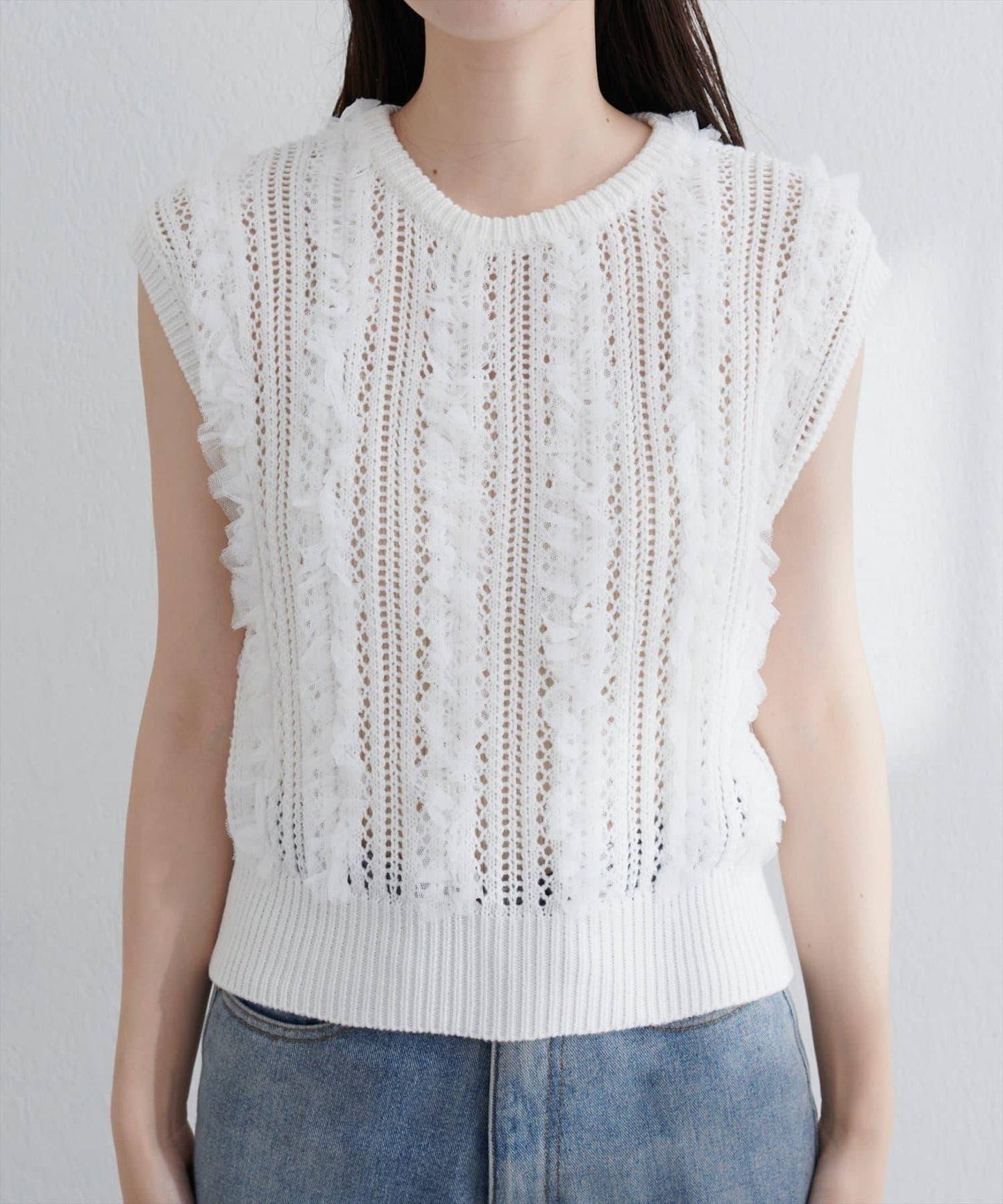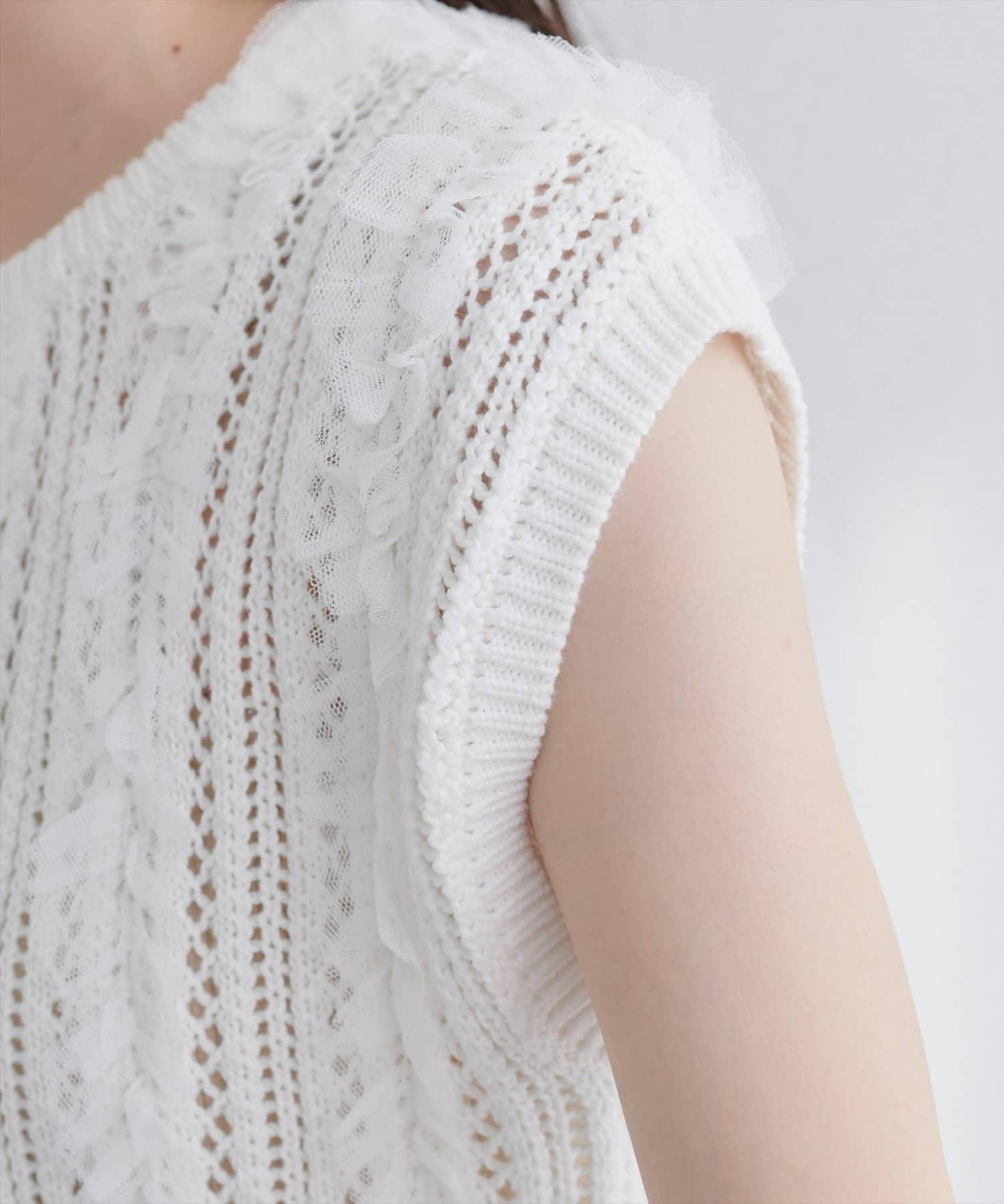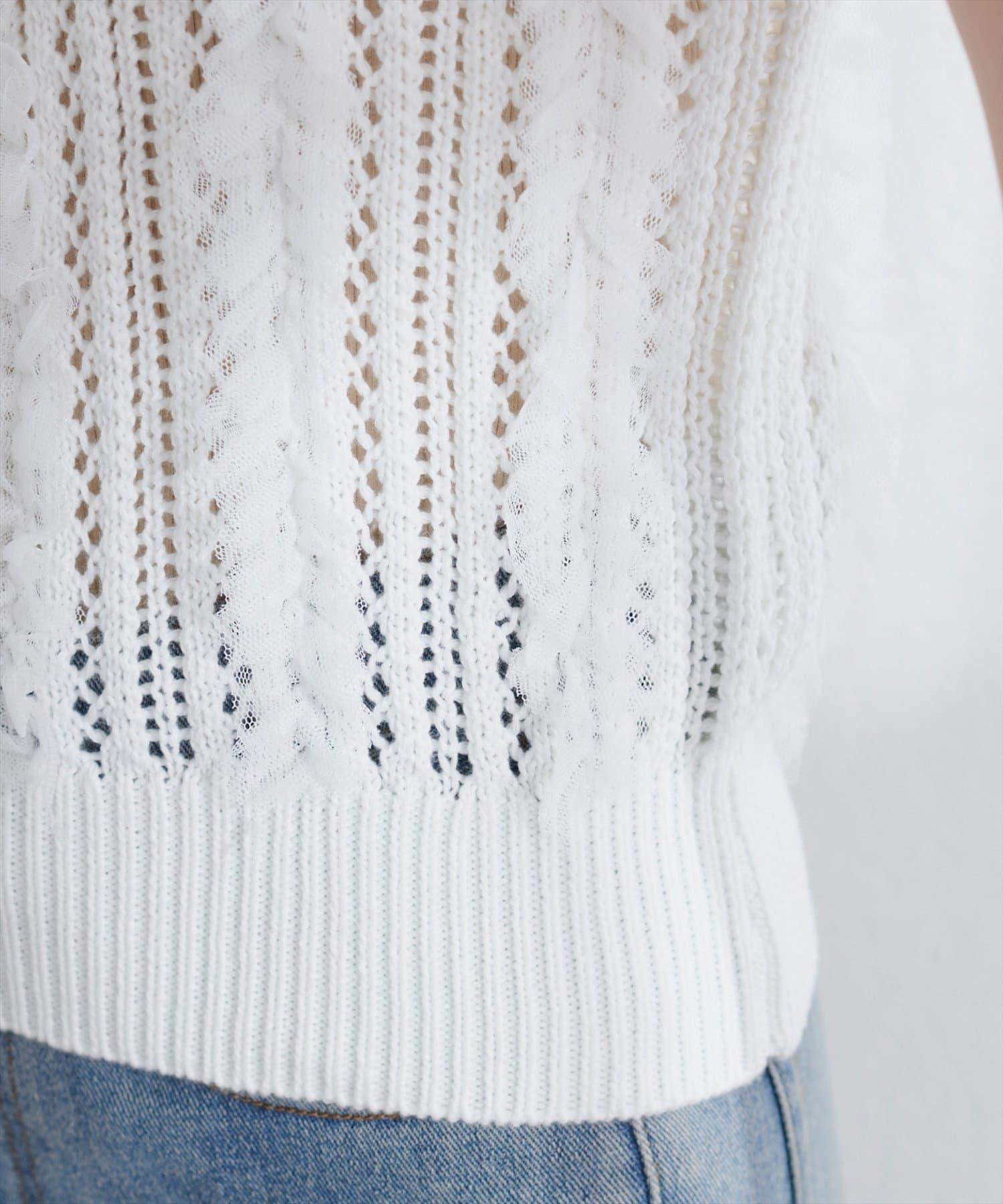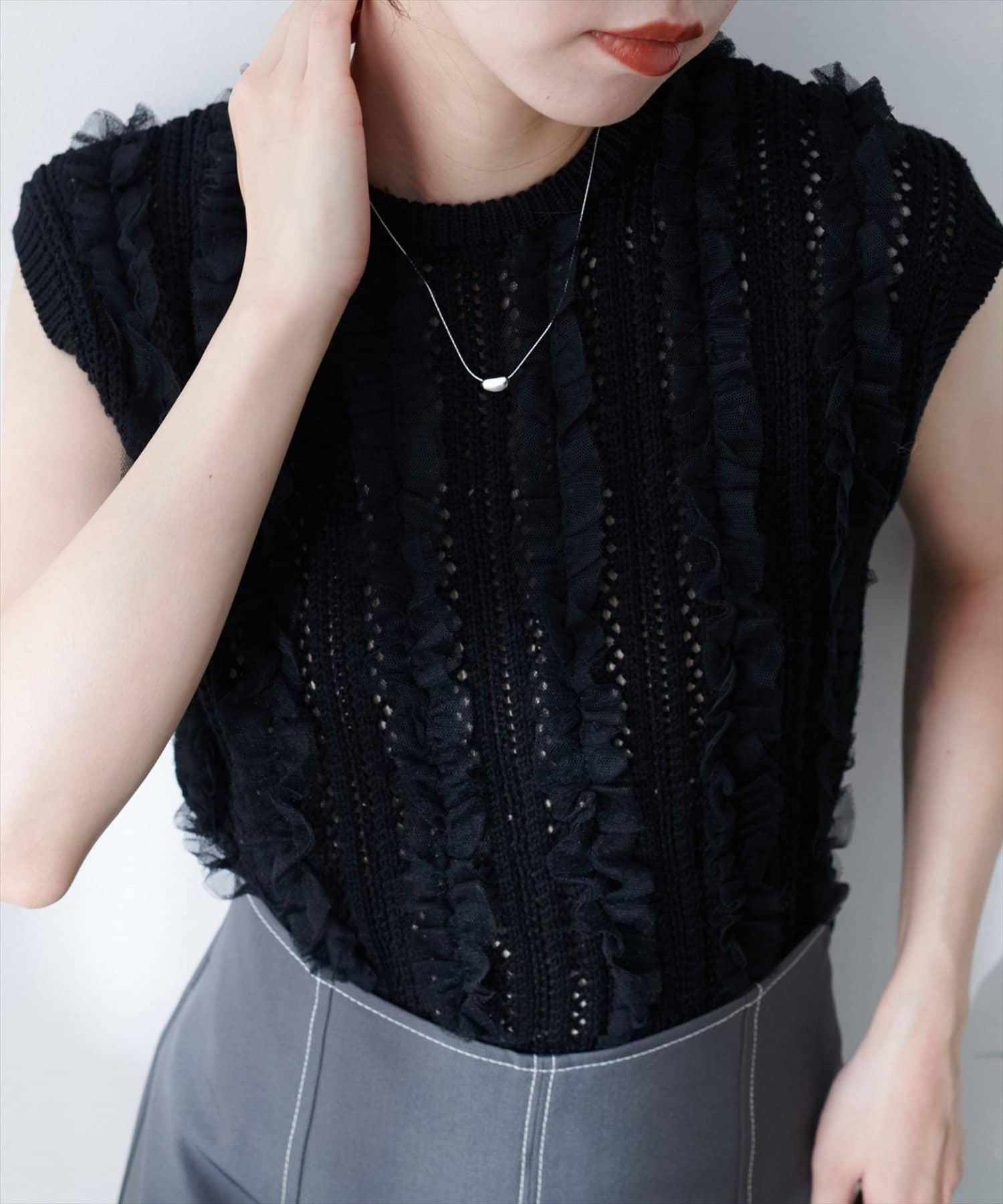 【natural couture】鏤空花紋×網紗無袖針織衫