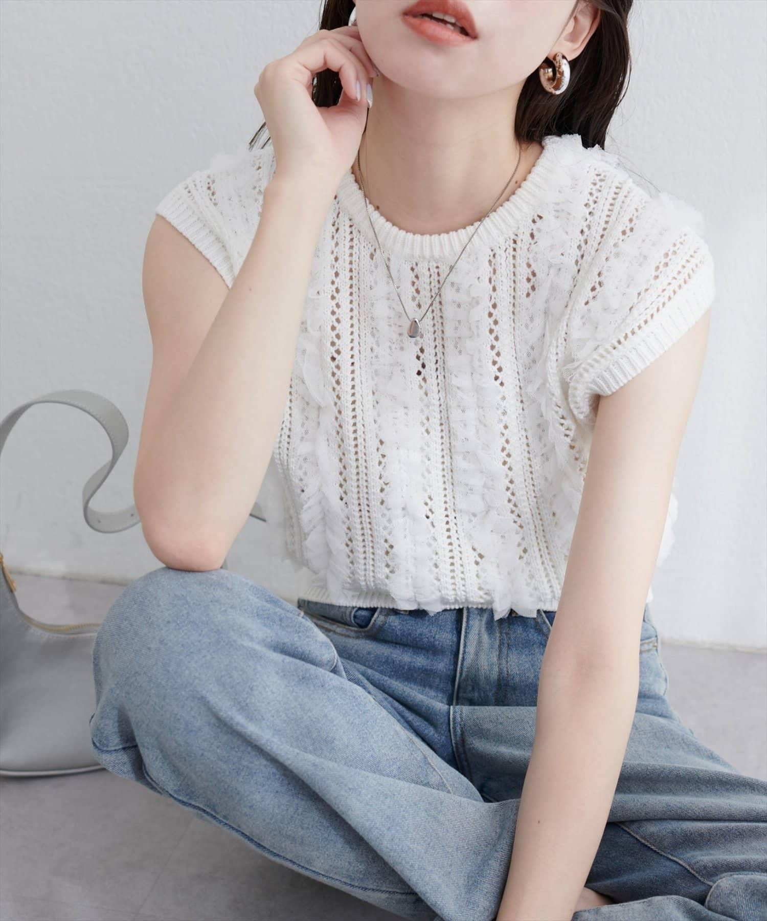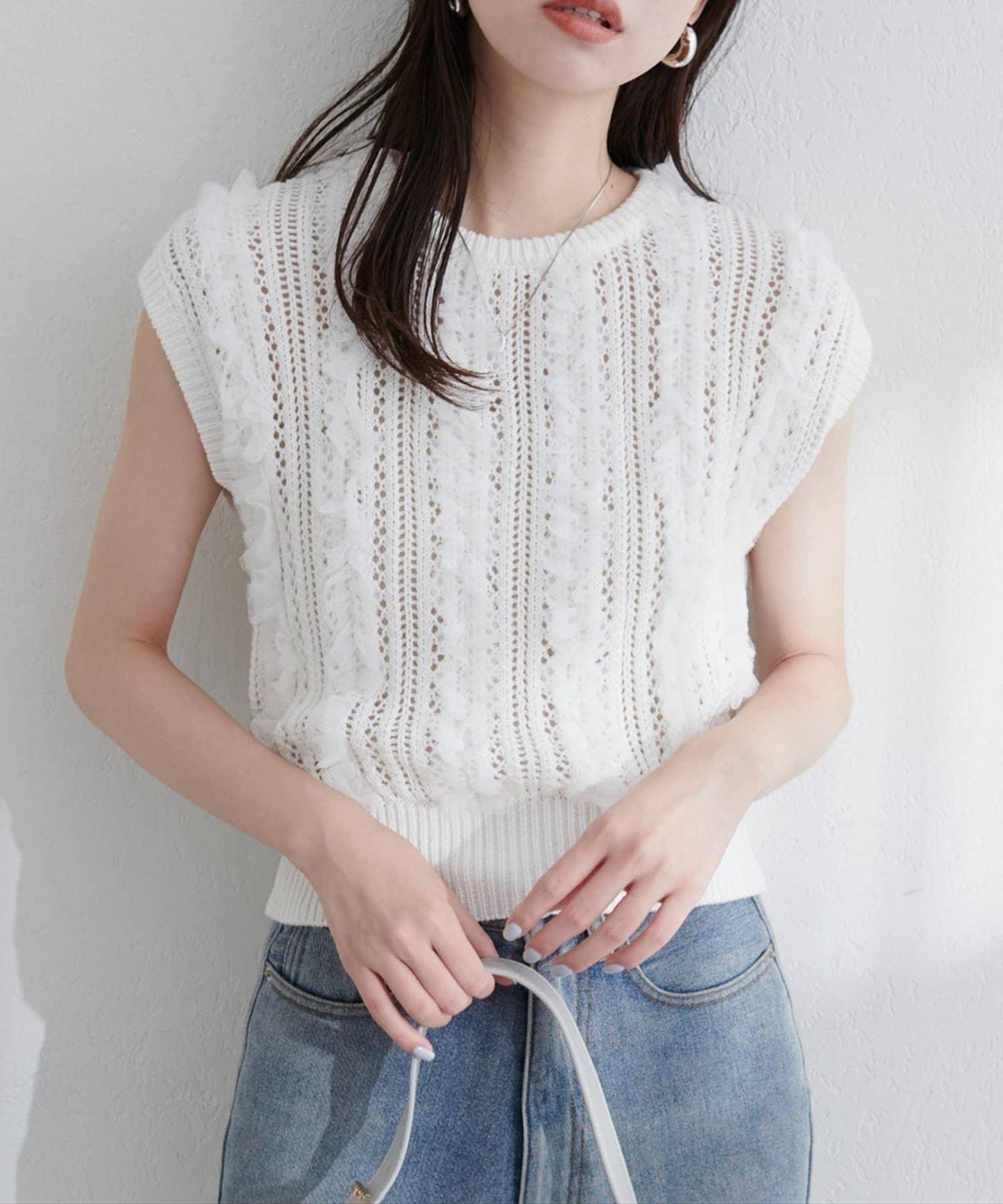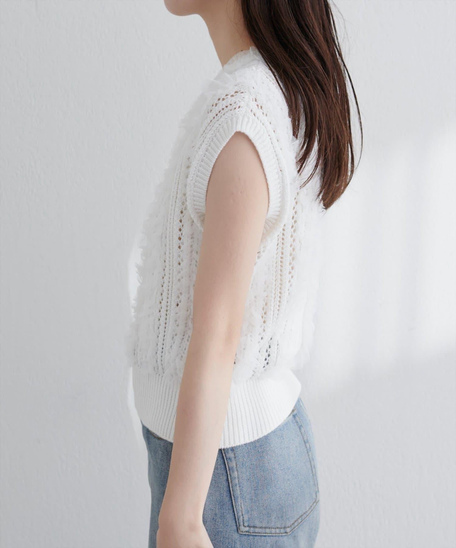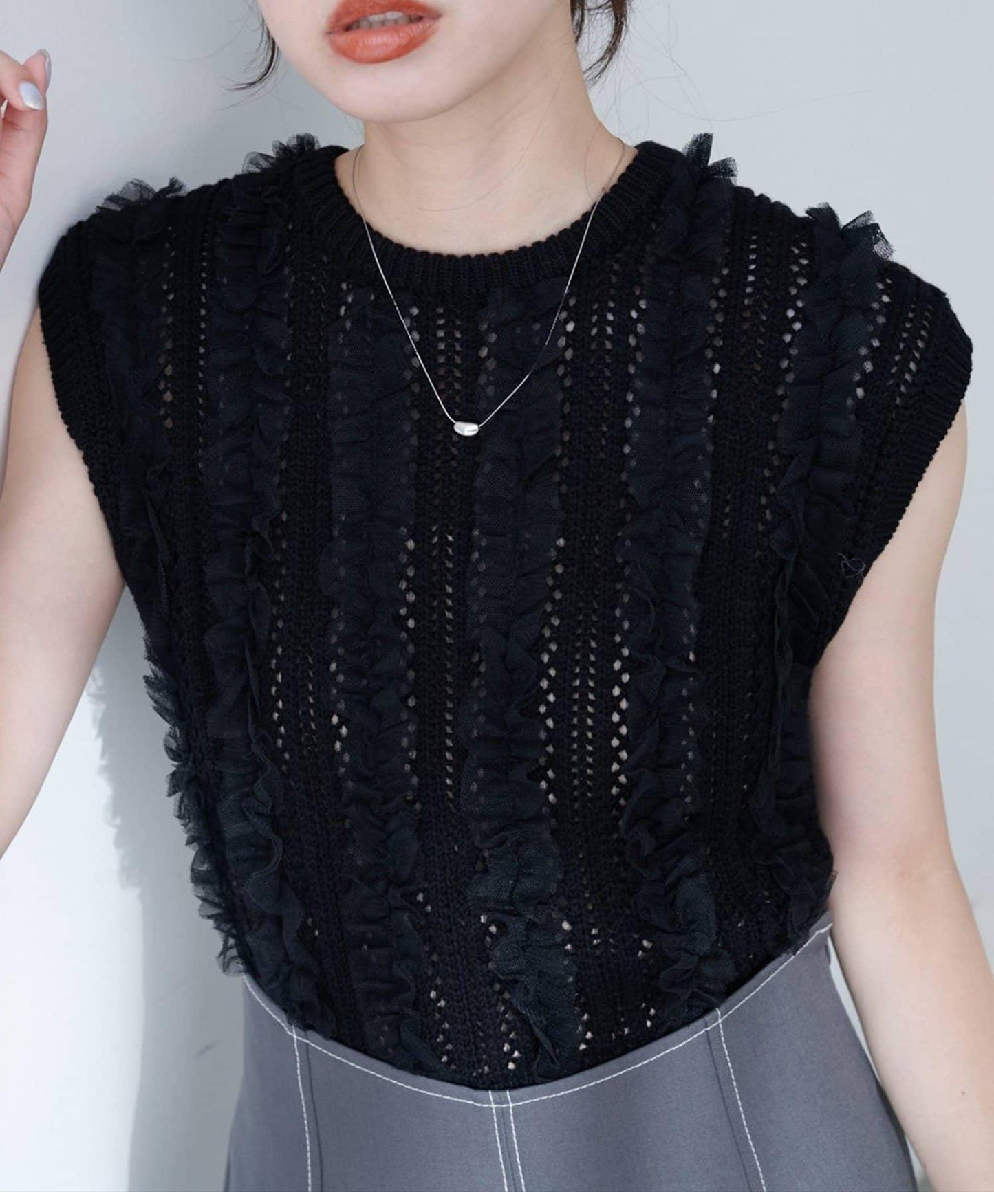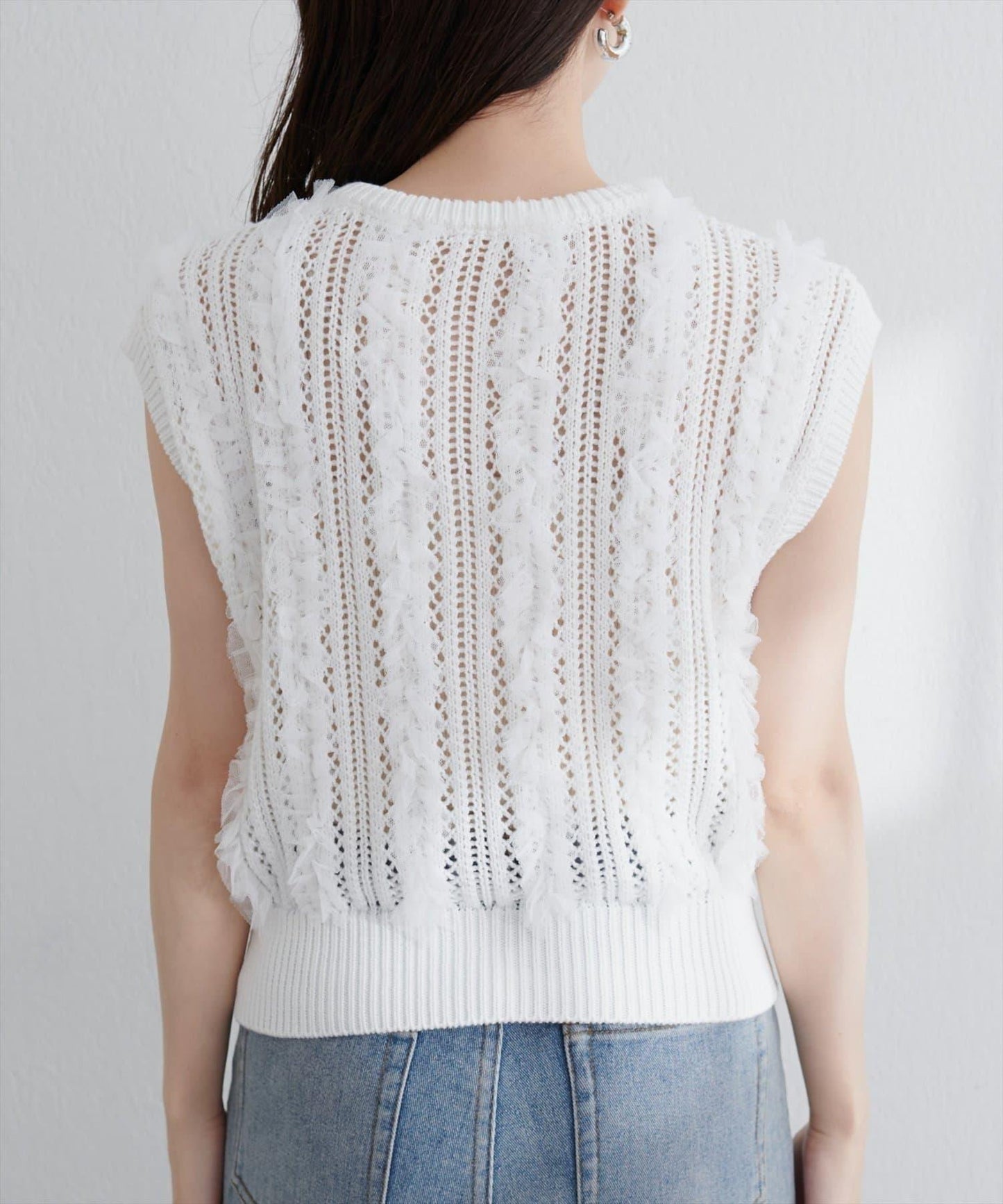 【natural couture】鏤空花紋×網紗無袖針織衫