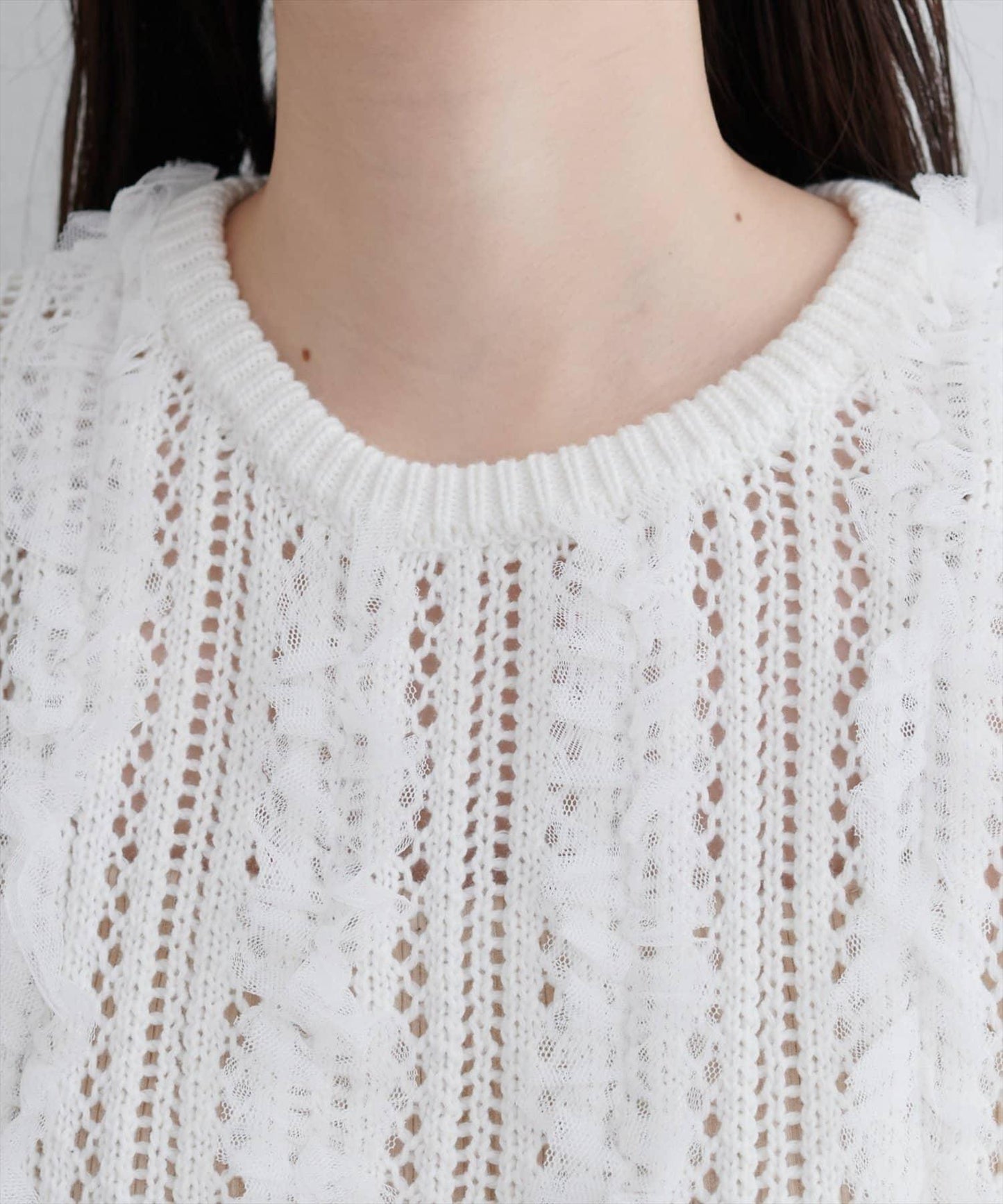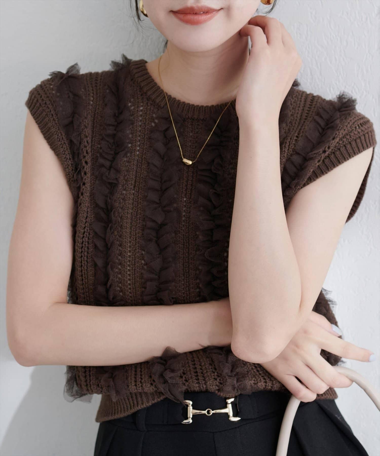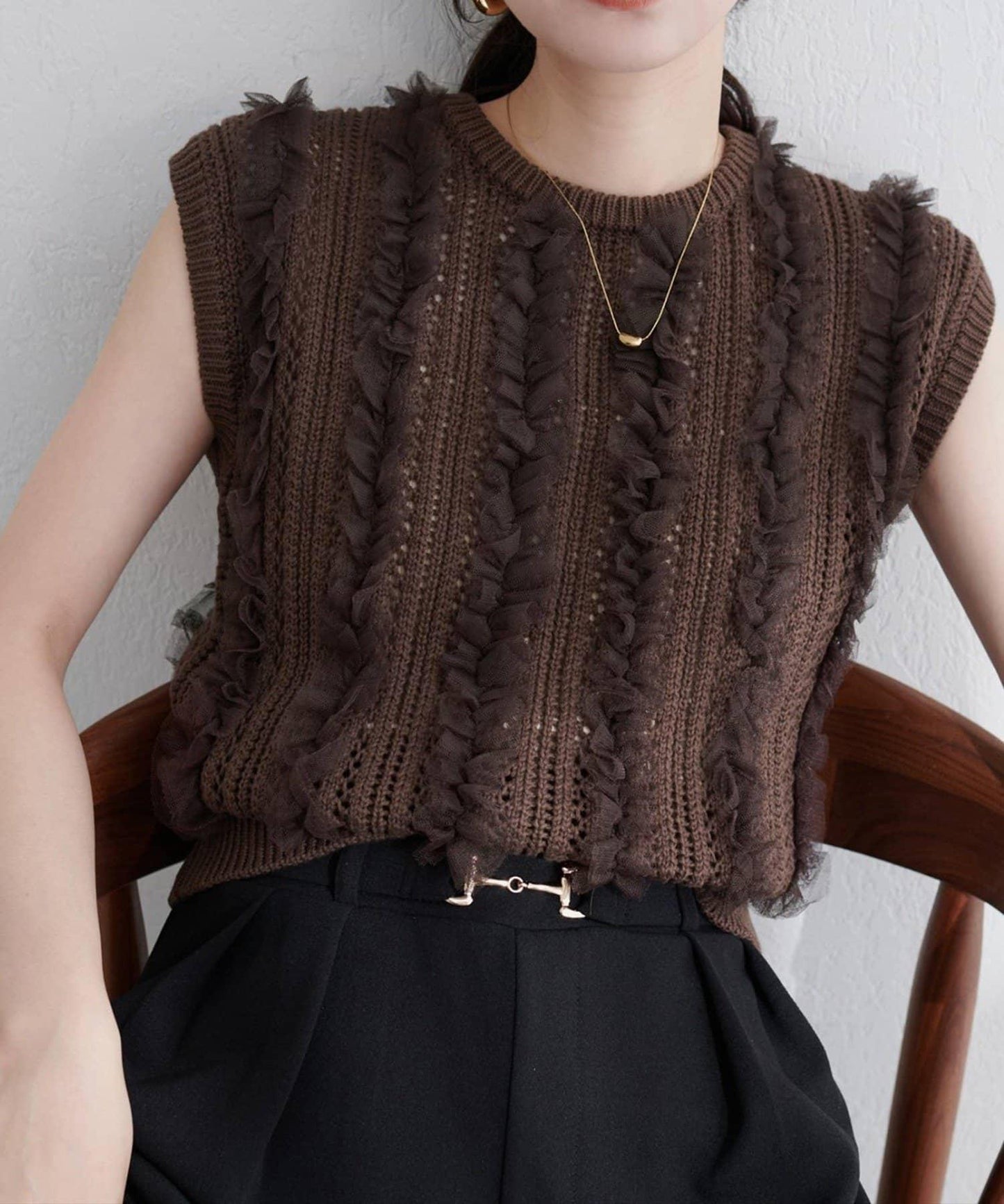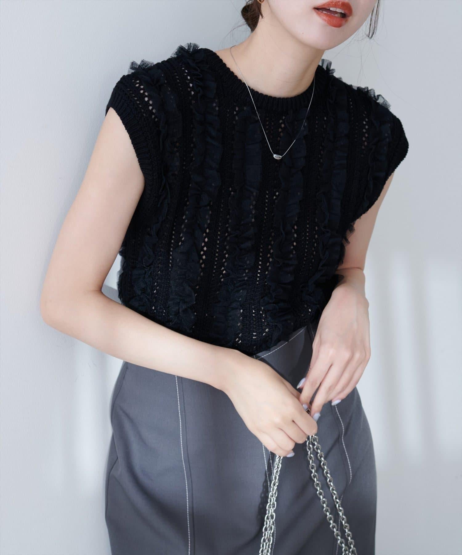 【natural couture】鏤空花紋×網紗無袖針織衫