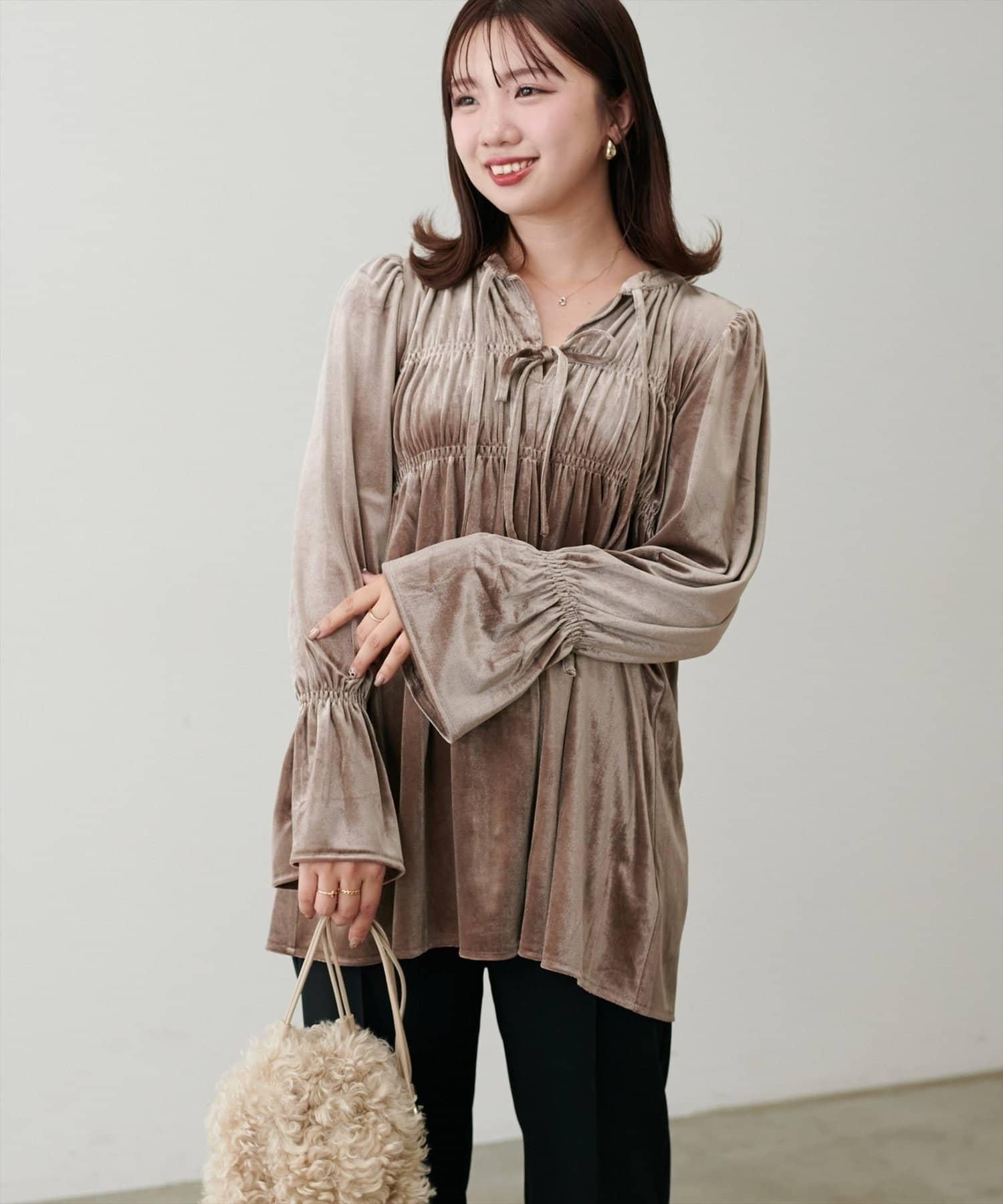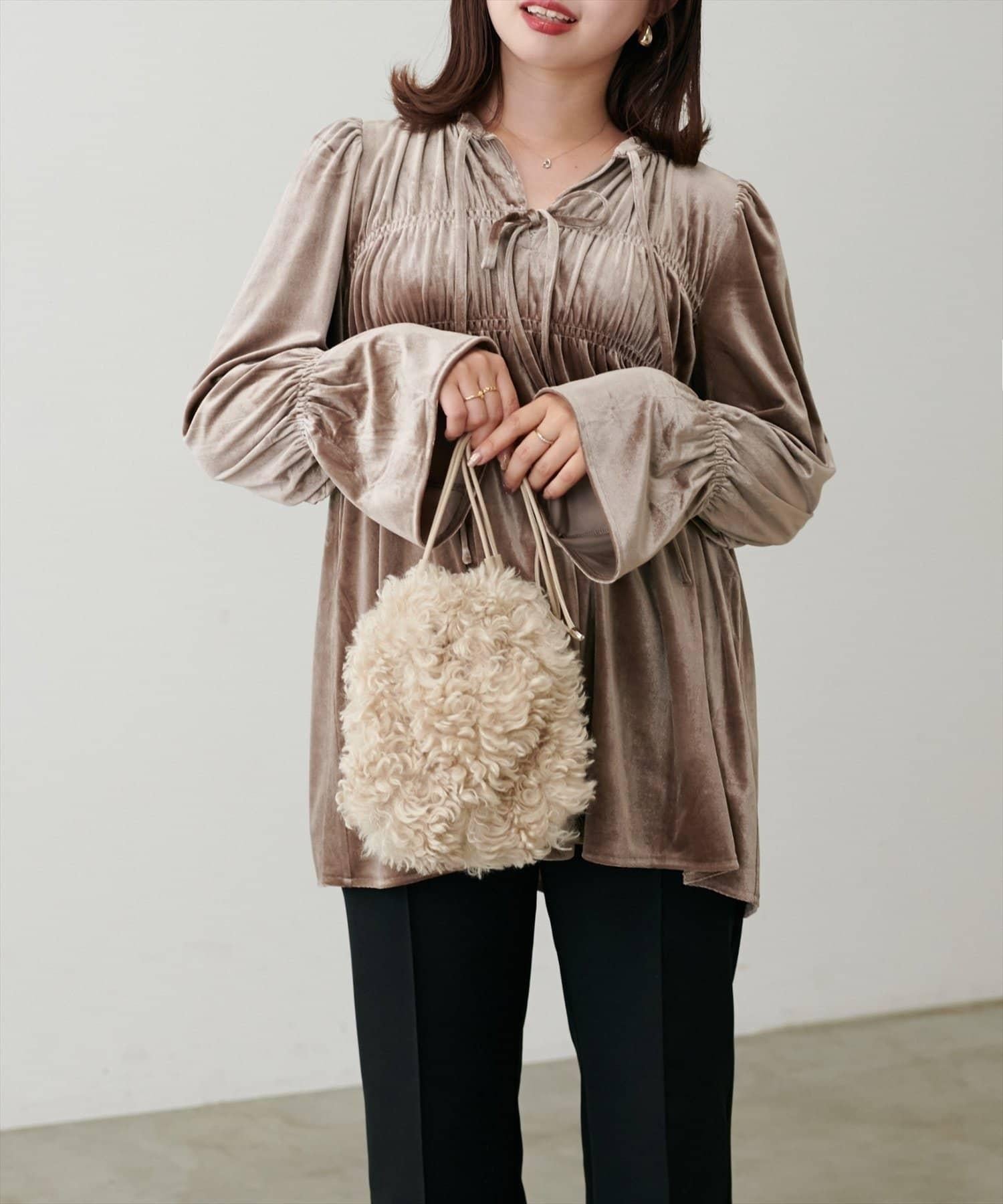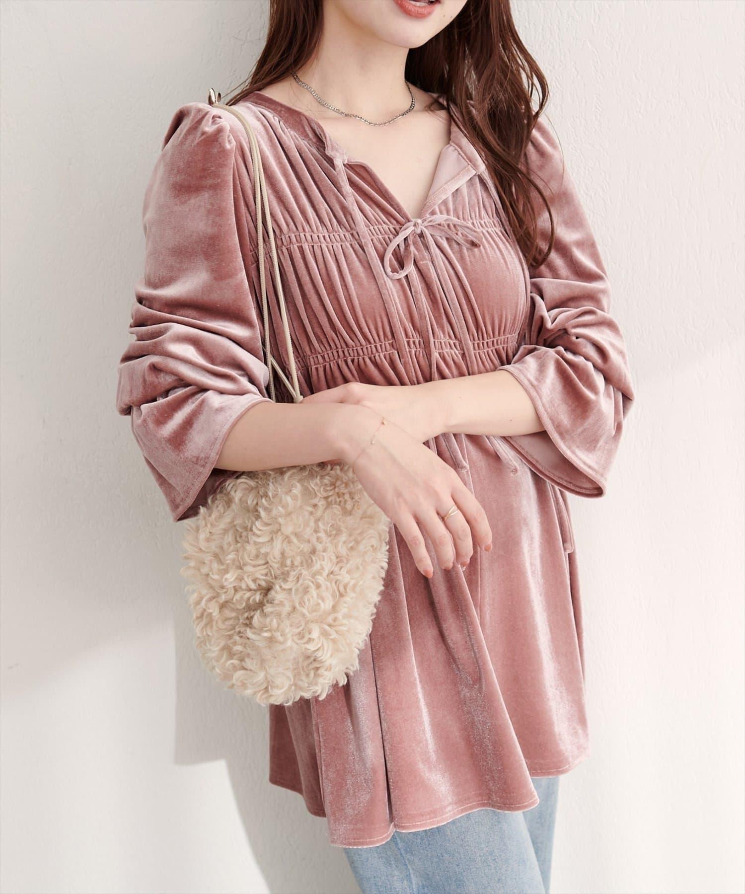 【natural couture】【canami】2WAY蝴蝶結天鵝絨襯衫