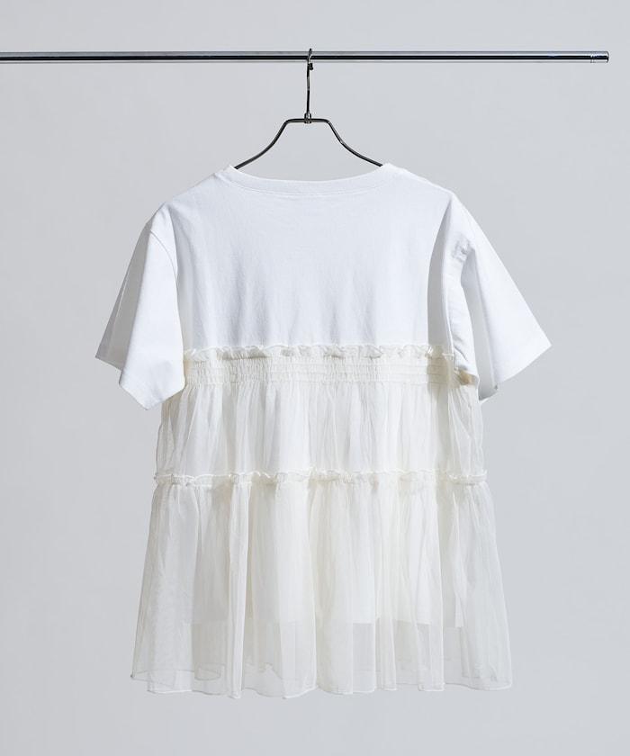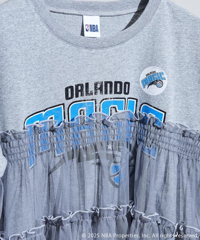 這款單品是印有 NBA 球隊標誌的翻版 T 恤,與薄紗層疊在一起,形成翻版風格的設計。