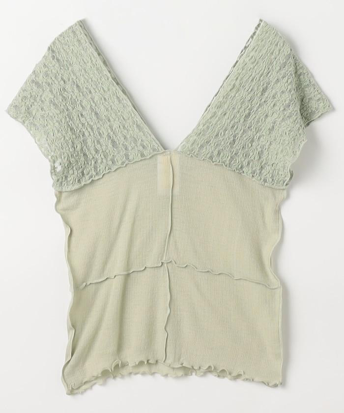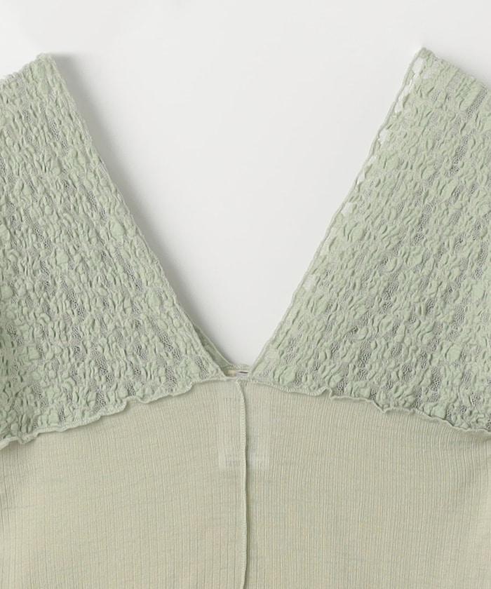 肩部的蕾絲給肌膚帶來透明感,營造出自然柔和的氛圍。
