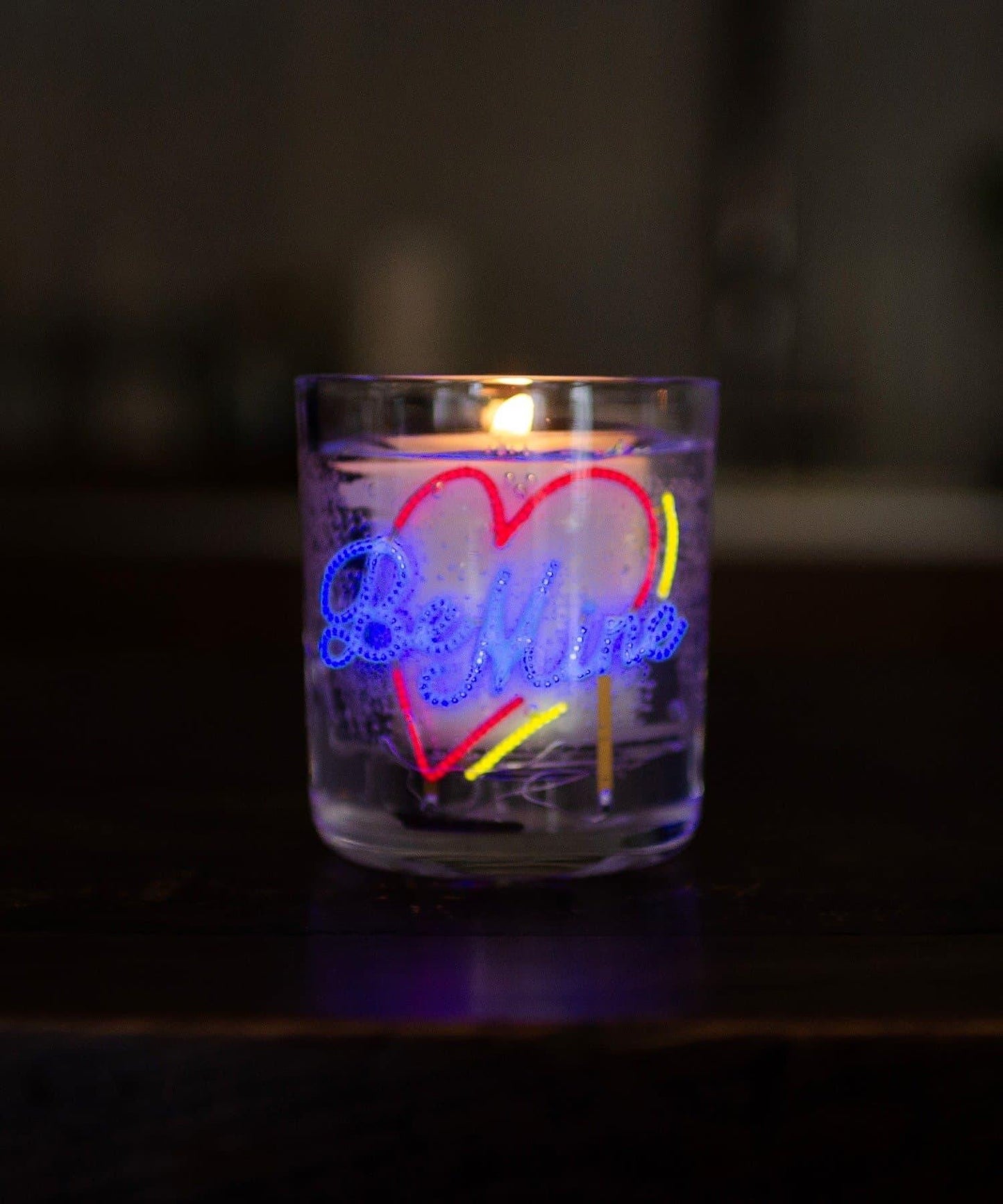 裝在玻璃瓶中的蠟燭,圖案醒目,信息豐富多彩。
