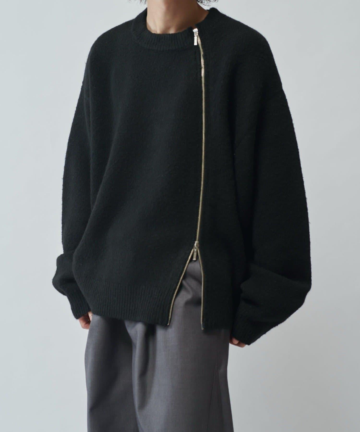 【Neucon/ニューコン】扭結拉鍊設計寬鬆圓領針織衫