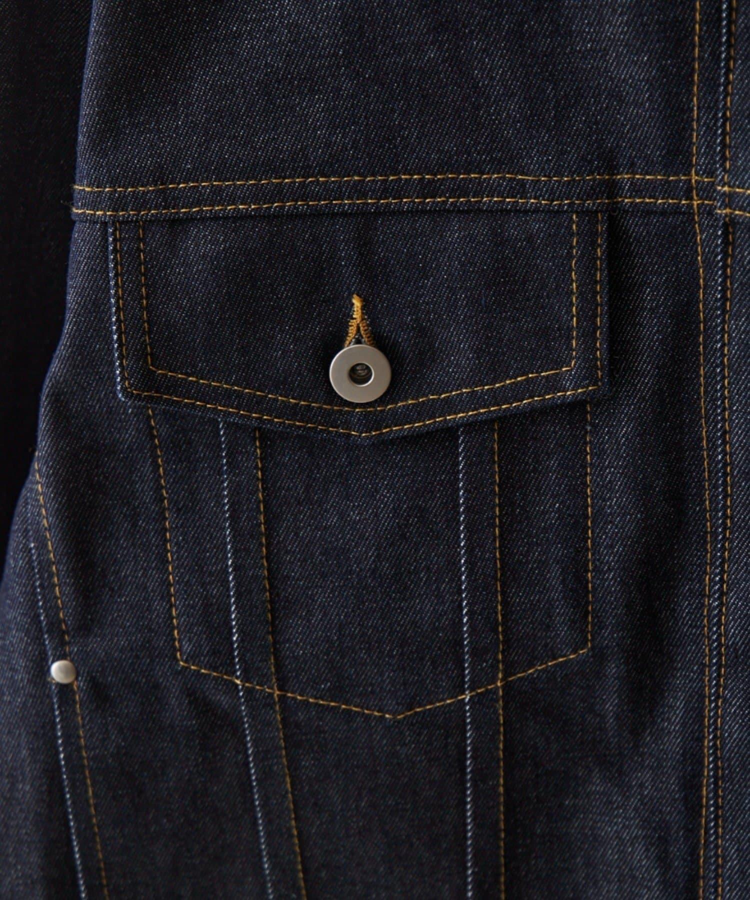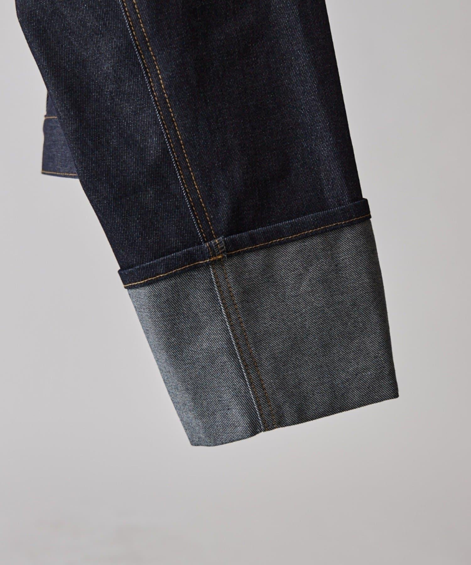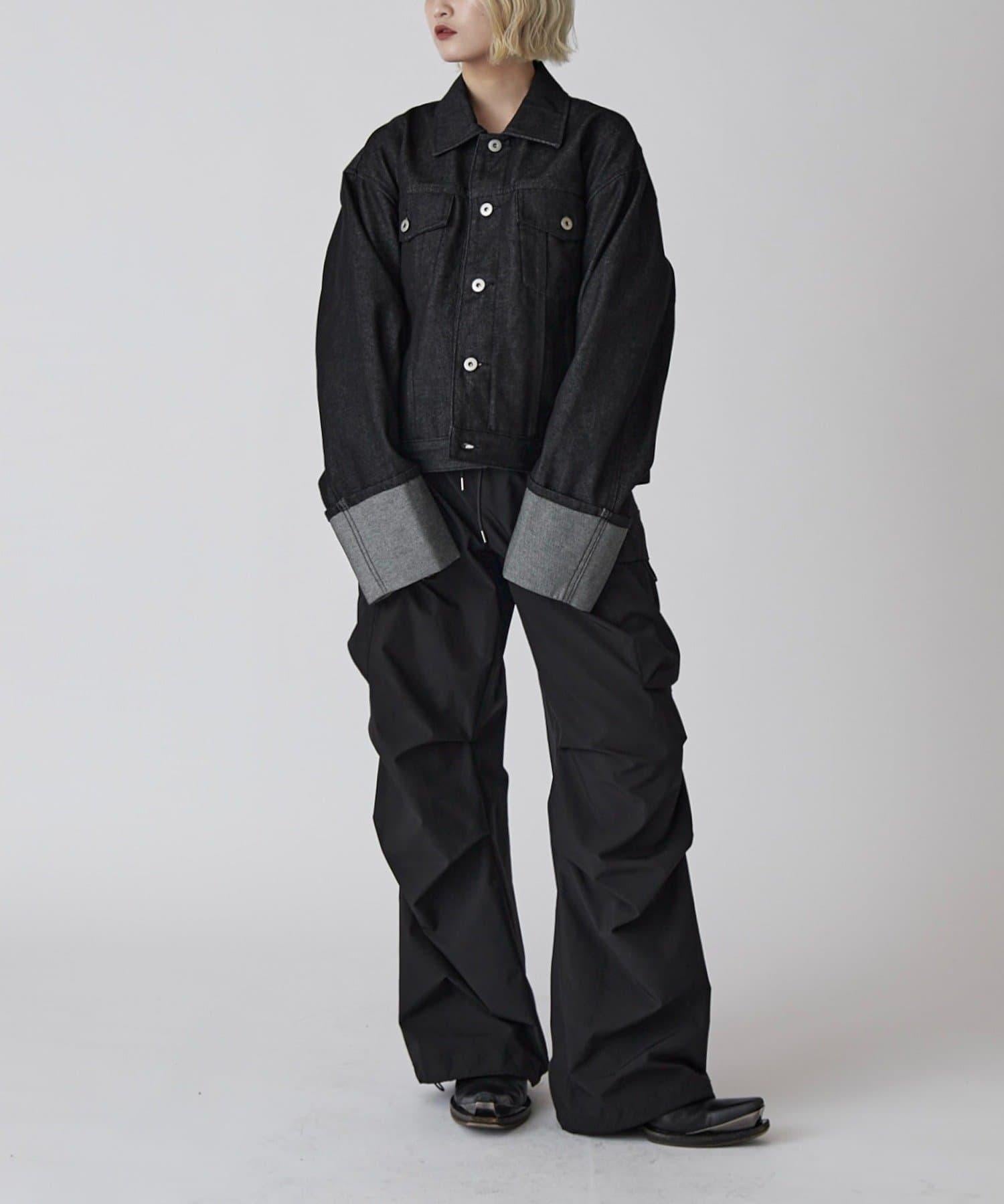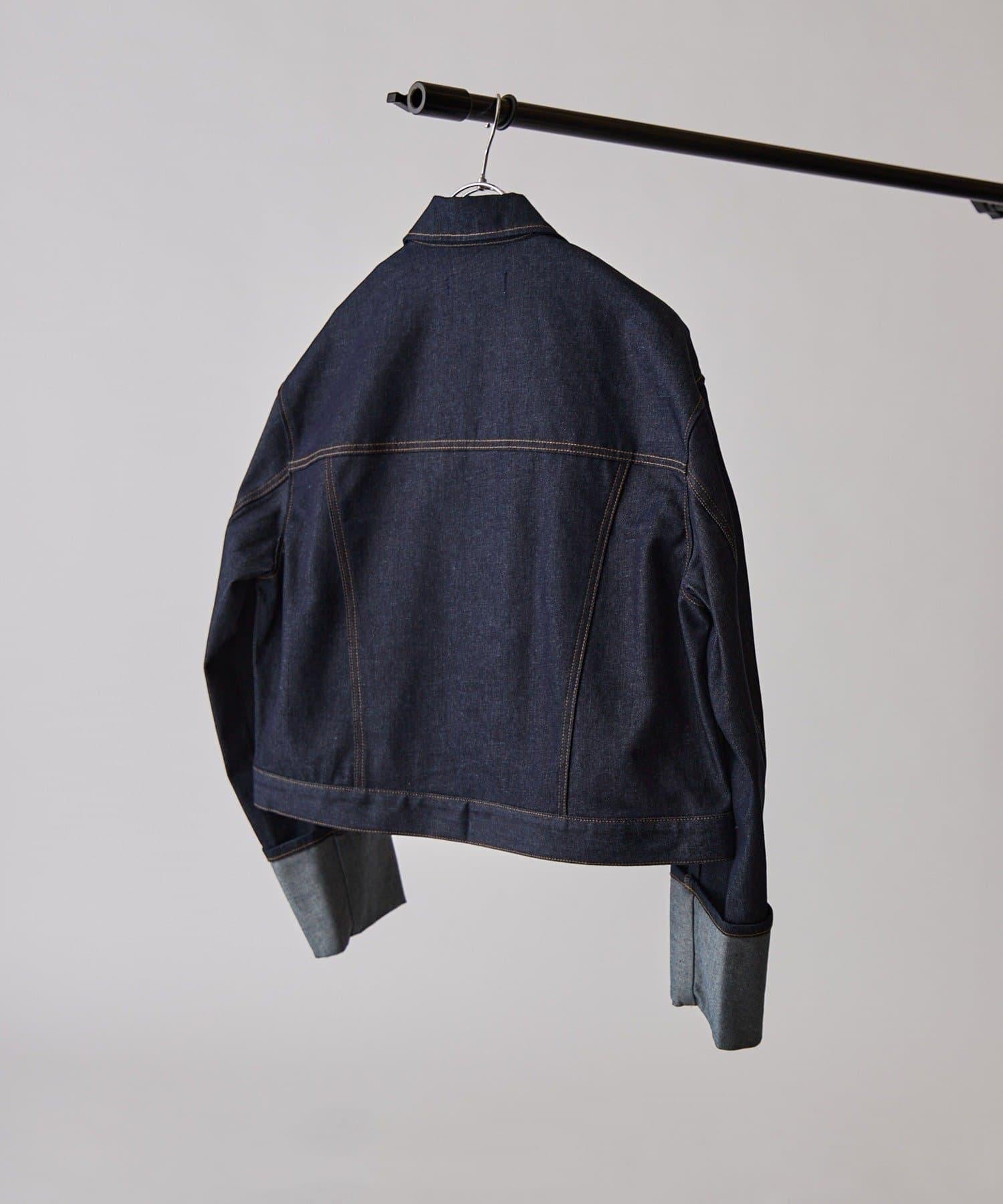 袖子捲起的設計營造出一種利落感,顛覆了牛仔夾克過於低調的形象。