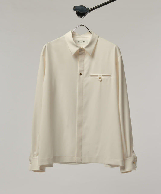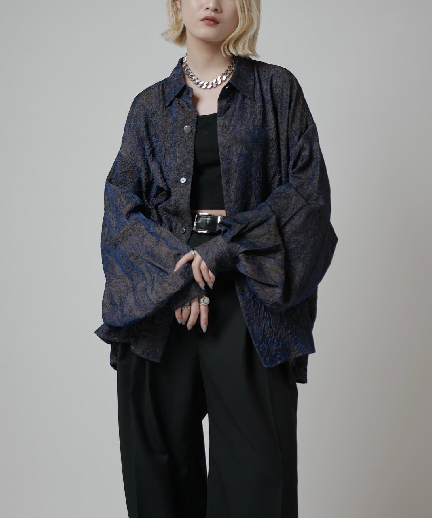 袖子收成兩個褶襉,手臂大膽地設計得更粗,是一件單看就很有型的襯衫。