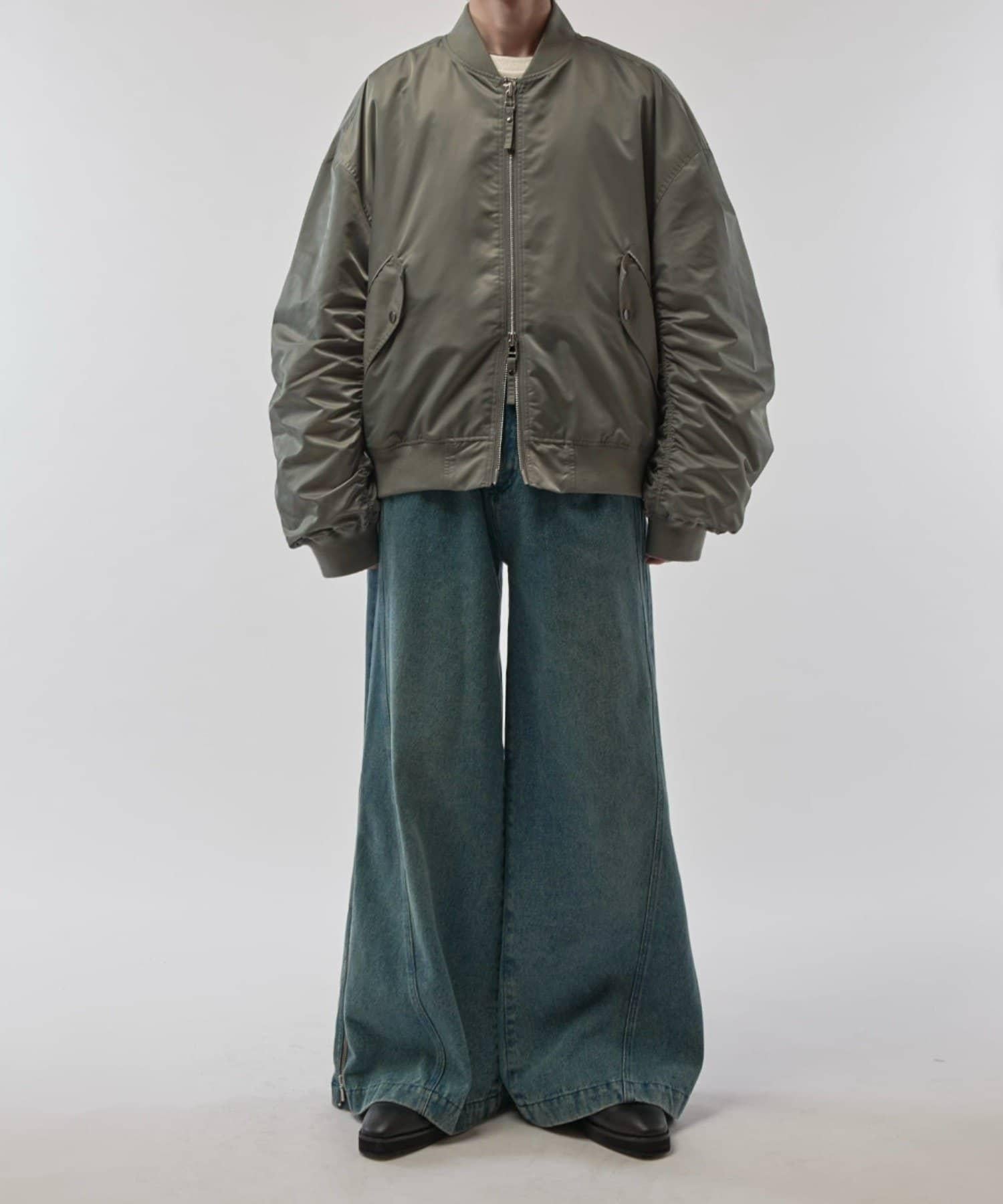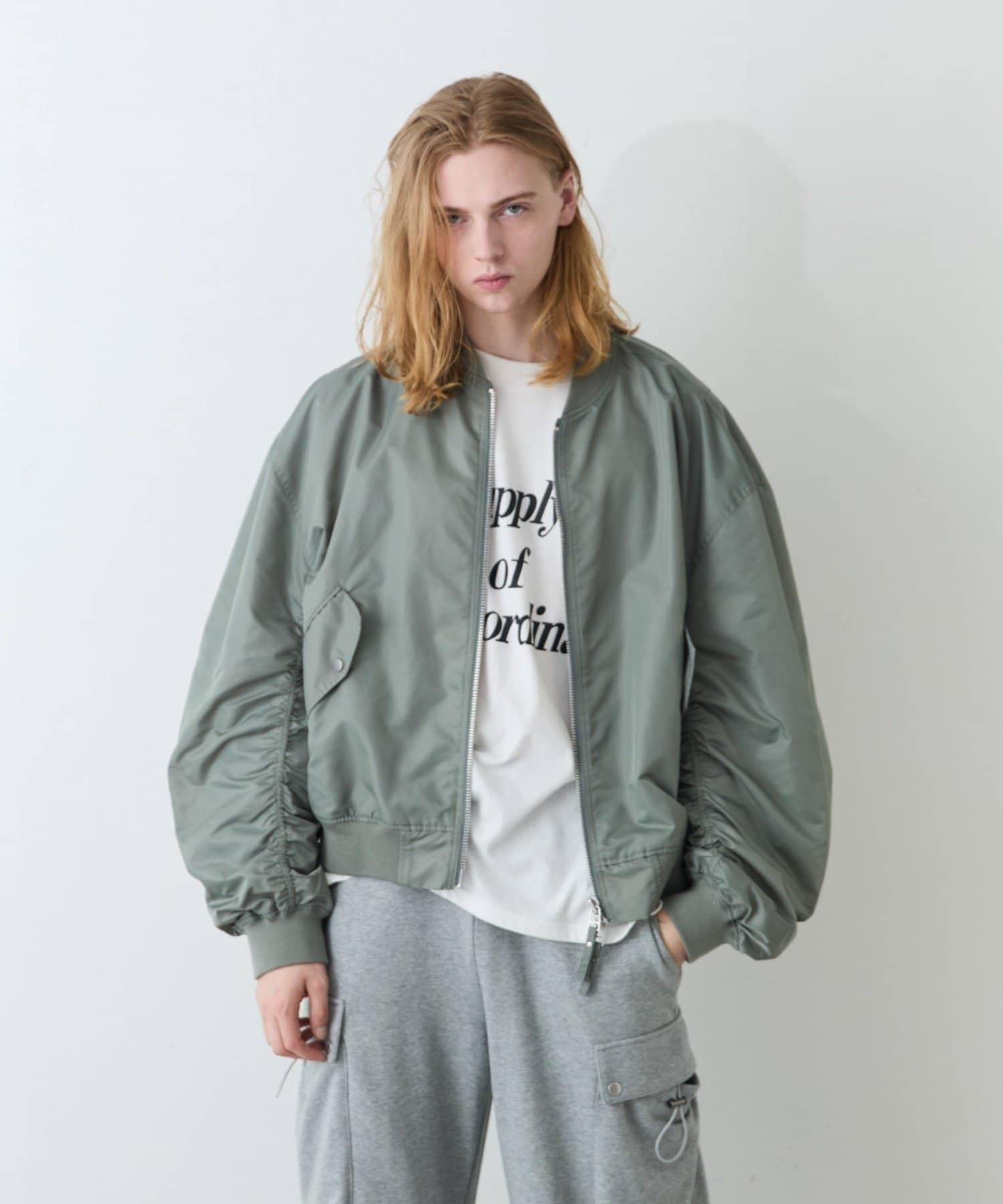 【Neucon/ニューコン】褶皺袖蓬鬆尼龍MA-1夾克