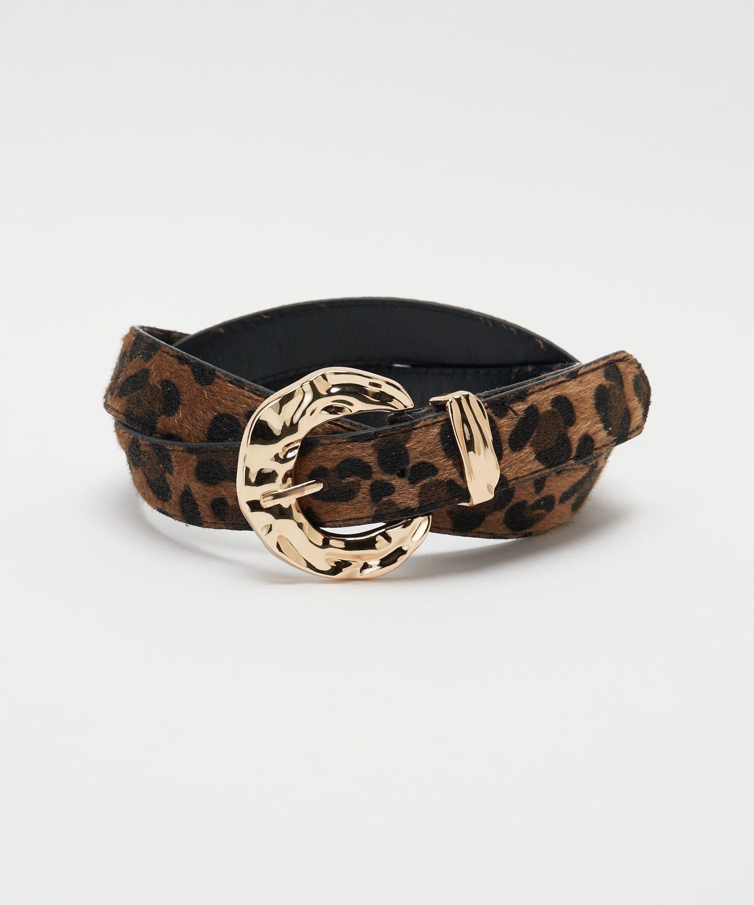 豹紋圖案的纖細腰帶,金色搭扣彰顯霸氣。
