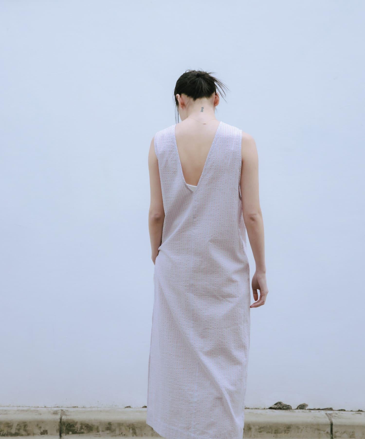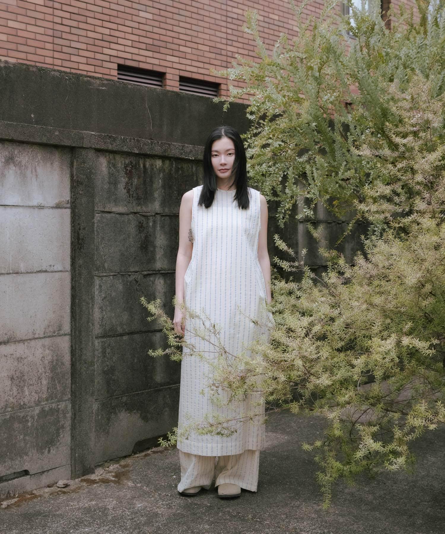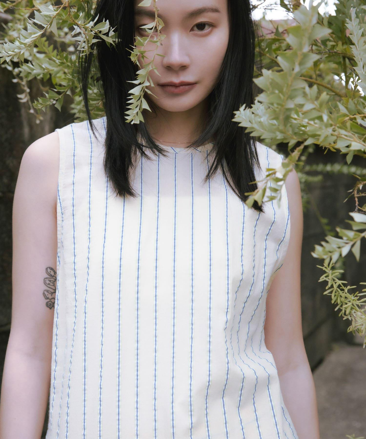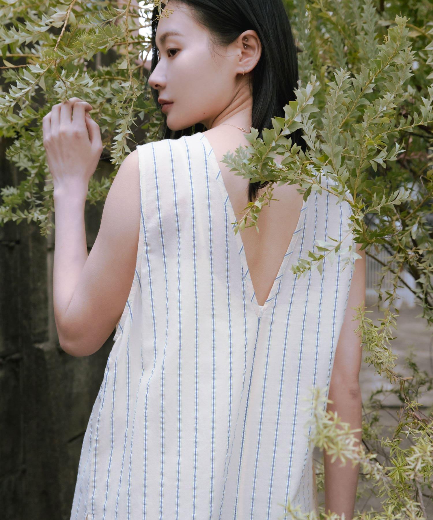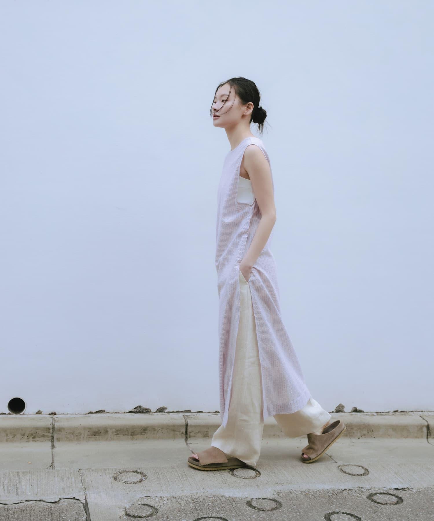 可搭配與套裝相同材質的印度棉麻條紋長褲(URA5-24C011)。也可搭配休閒褲等其他下裝。搭配涼鞋,盡顯女性魅力。