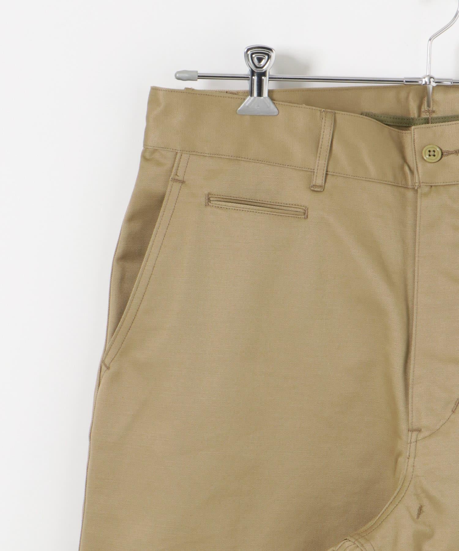 長褲融合了 NEXUSVII.軍用 chinos 的腰帶環設計和 Scye 標準長褲的後軛細節,打造出真正的合作長褲設計。