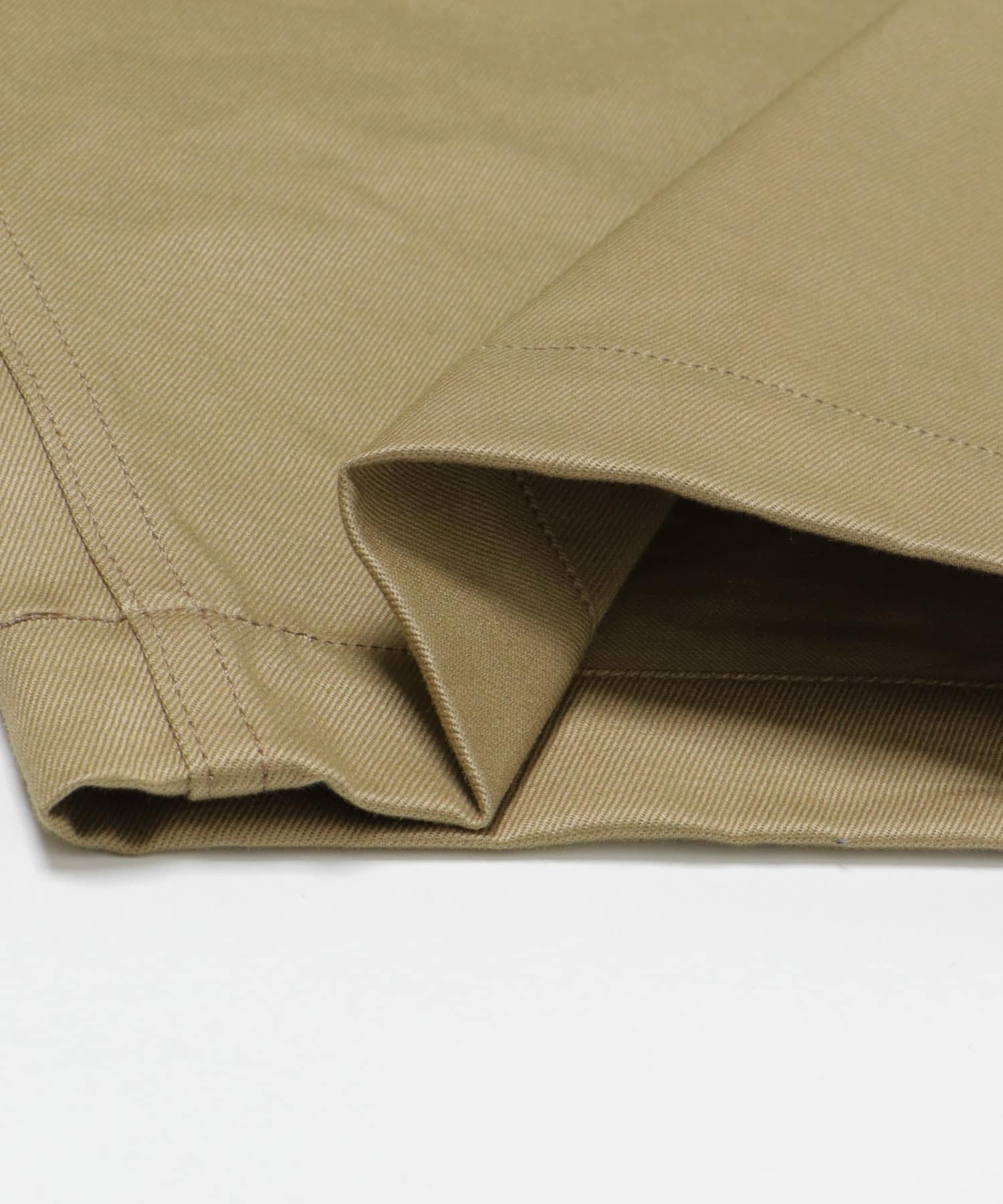 這款夾克以 20 世紀初的狩獵夾克為原型,使用 SCYE 的標準材料 "SAN JOAQUIN CHINO "作為面料,採用了與 20 世紀 40 年代美國海軍配發的夏季飛行夾克 M-M-1 相同的材料。20 世紀 40 年代被稱為美國海軍夏季飛行夾克的 M-421 的細節。