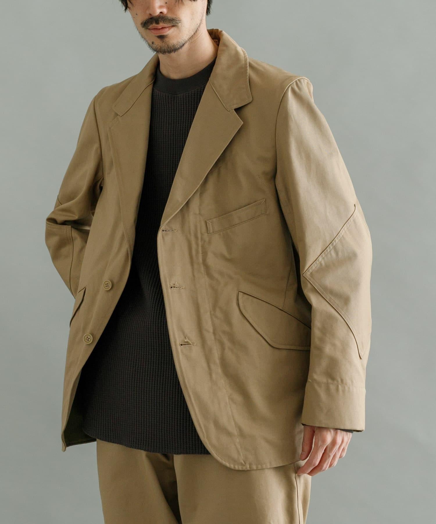 這款夾克以 20 世紀初的狩獵夾克為原型,使用 SCYE 的標準材料 "SAN JOAQUIN CHINO "作為面料,採用了與 20 世紀 40 年代美國海軍配發的夏季飛行夾克 M-M-1 相同的材料。20 世紀 40 年代被稱為美國海軍夏季飛行夾克的 M-421 的細節。