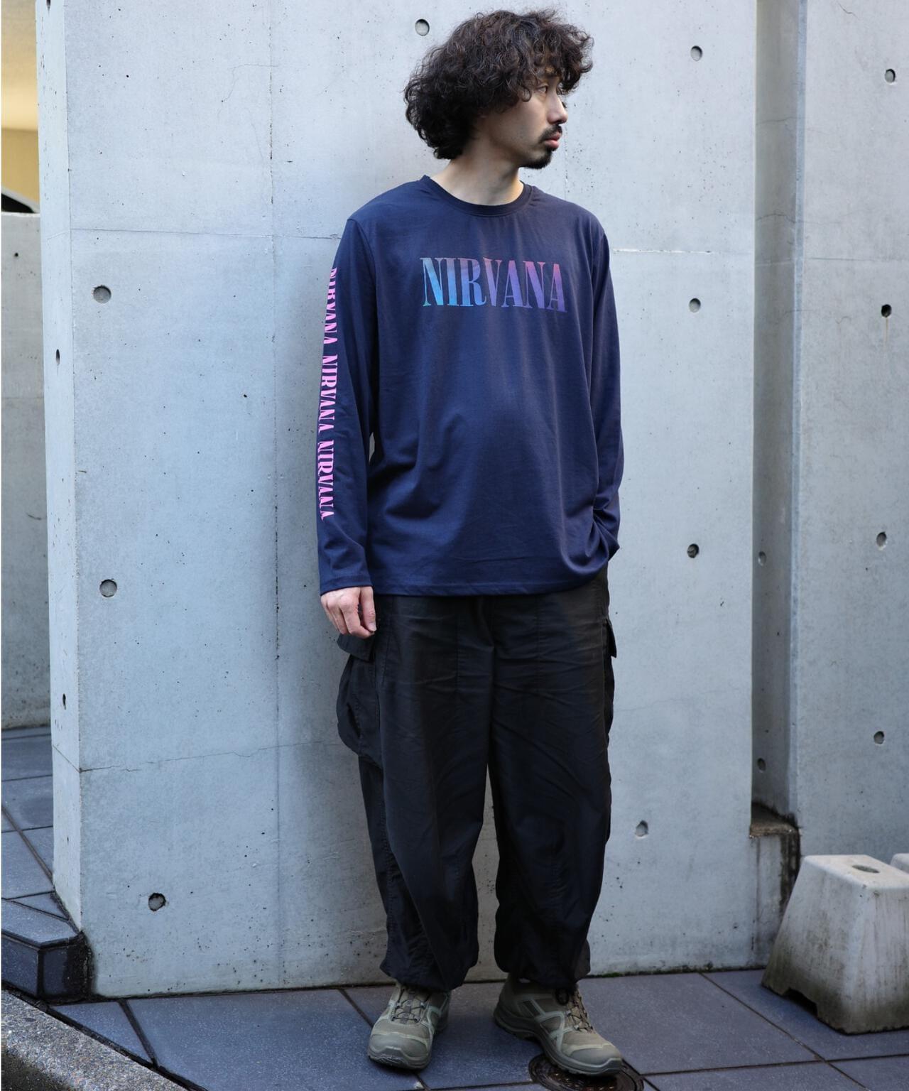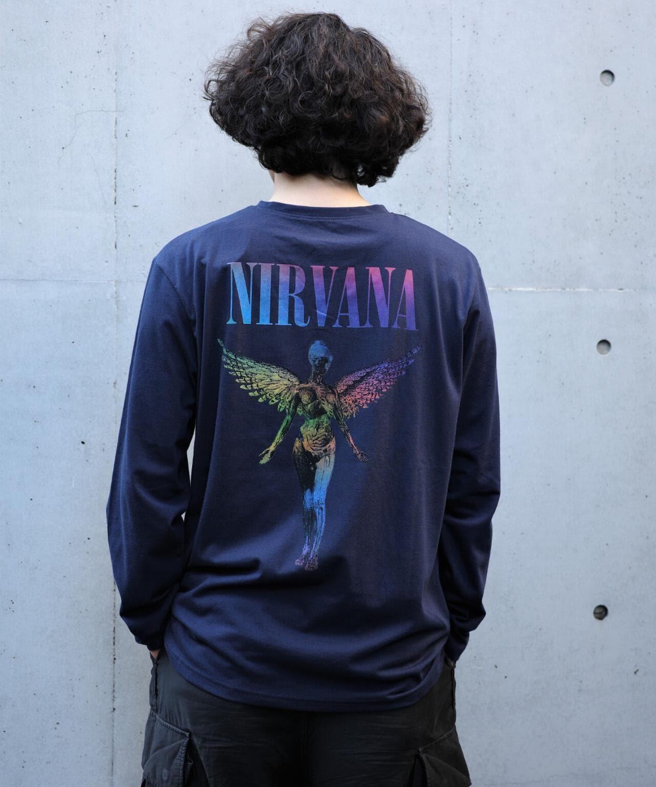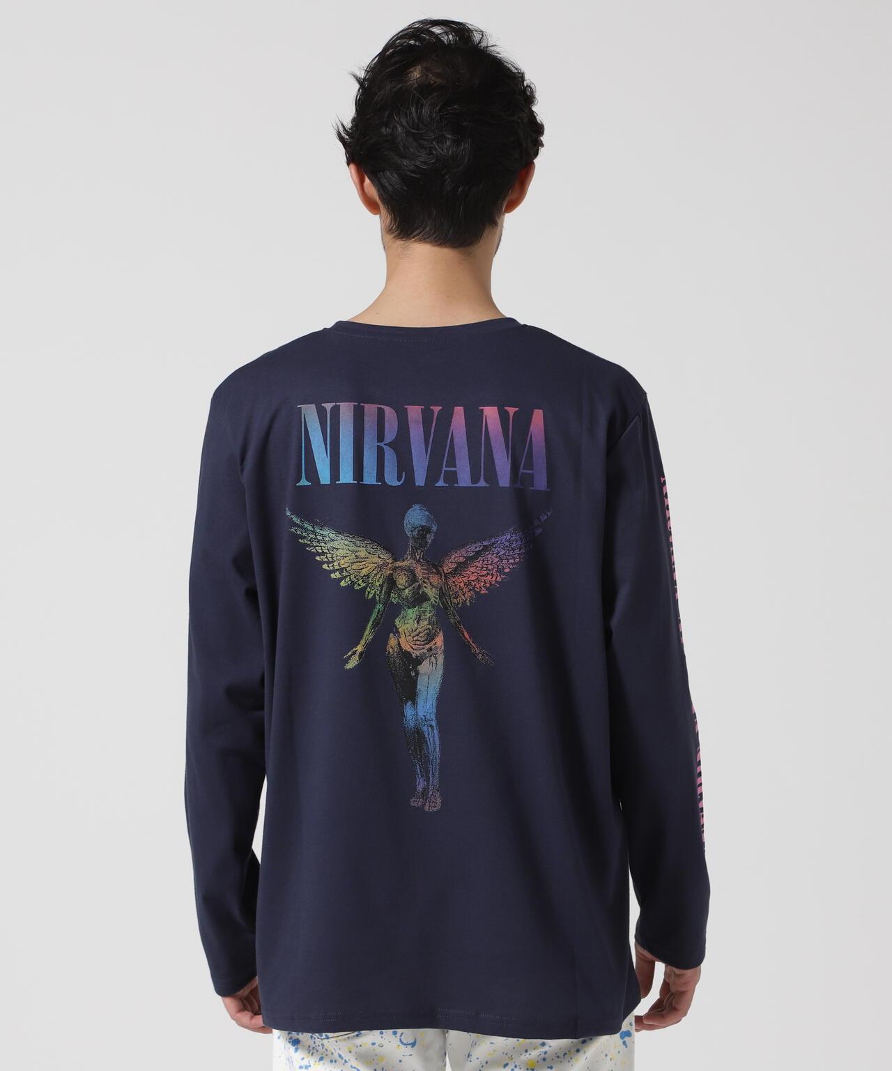 NIRVANA/Nirvana ANGELIC GRADIENT L/S TEE Long Tee 傳奇grunge/另類搖滾樂隊 "NIRVANA "的官方 T 恤,樂隊成員包括科特-科本(Kurt Cobain)、克里斯-諾沃瑟裡奇(Kris Novoselic)和戴夫-格羅爾(Dave Grohl),第三張專輯為 "IN UTERO"(1993)。IN UTERO"(1993 年),印有為該專輯設計的圖案。