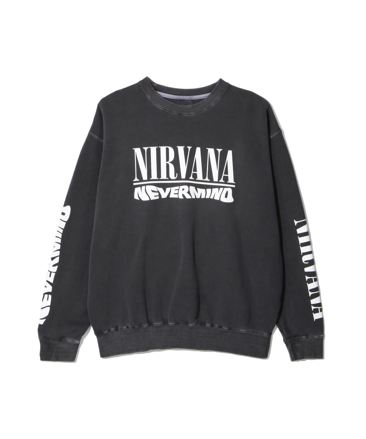 NIRVANA/NEVERMIND SWEAT CREW/合作款運動衫《男/女/中性》備受歡迎的 NIRVANA 合作款運動衫推出新款!NIRVANA 的標誌是一款搶眼的運動衫。這款復古風單品的正面和袖子上印有 NIRVANA 經典專輯《NEVERMIND》中的標誌。該商品經過 "顏料染色"(pigment dyeing)的後期處理,呈現出二手貨的外觀。這是 MANASTASH 獨有的特別設計。