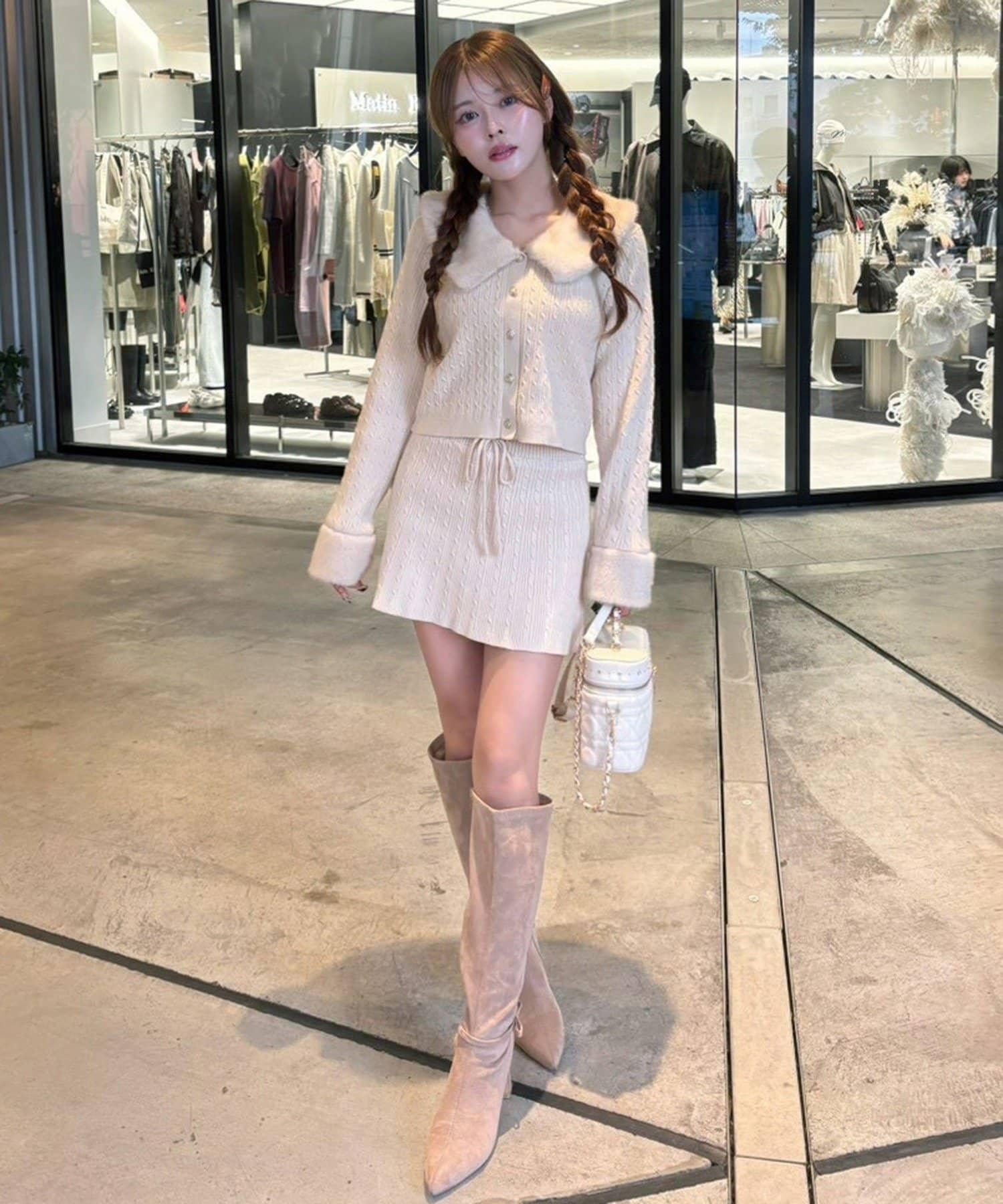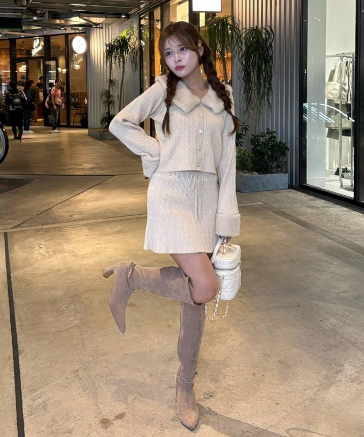 套裝穿著,搭配長筒靴,打造帥氣的冬季少女風。
