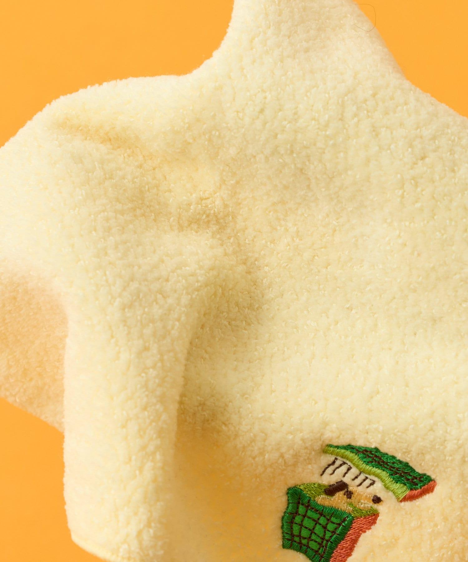 部分採用毛氈,部分採用單點刺繡,設計獨特的蓬鬆毛巾手帕。