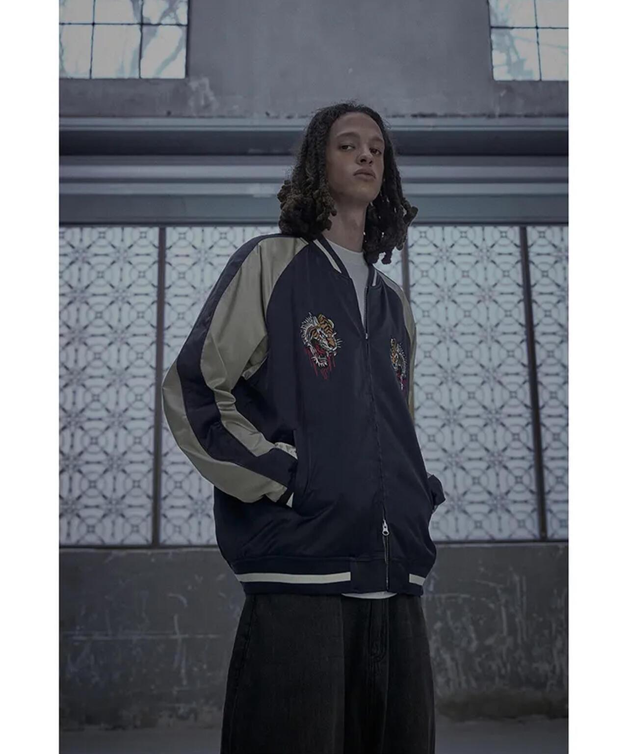 NOT4NERD 這款混合型 Skajan 採用光潔閃亮的面料,繡有威風凜凜的老虎圖案,氣勢非凡。正面左右兩側的老虎圖案和背面醒目的動態巨虎,將街頭風情和東方韻味融為一體。作為協調造型的主角,它的存在感十足。輕盈的面料具有恰到好處的彈力,保持了優美的輪廓,穿著柔軟舒適。立體刺繡和色彩對比營造出獨特的氛圍。輕盈的尼龍面料帶來閃亮動感的輪廓,而色彩協調的羅紋則增添了運動感和復古氣息。