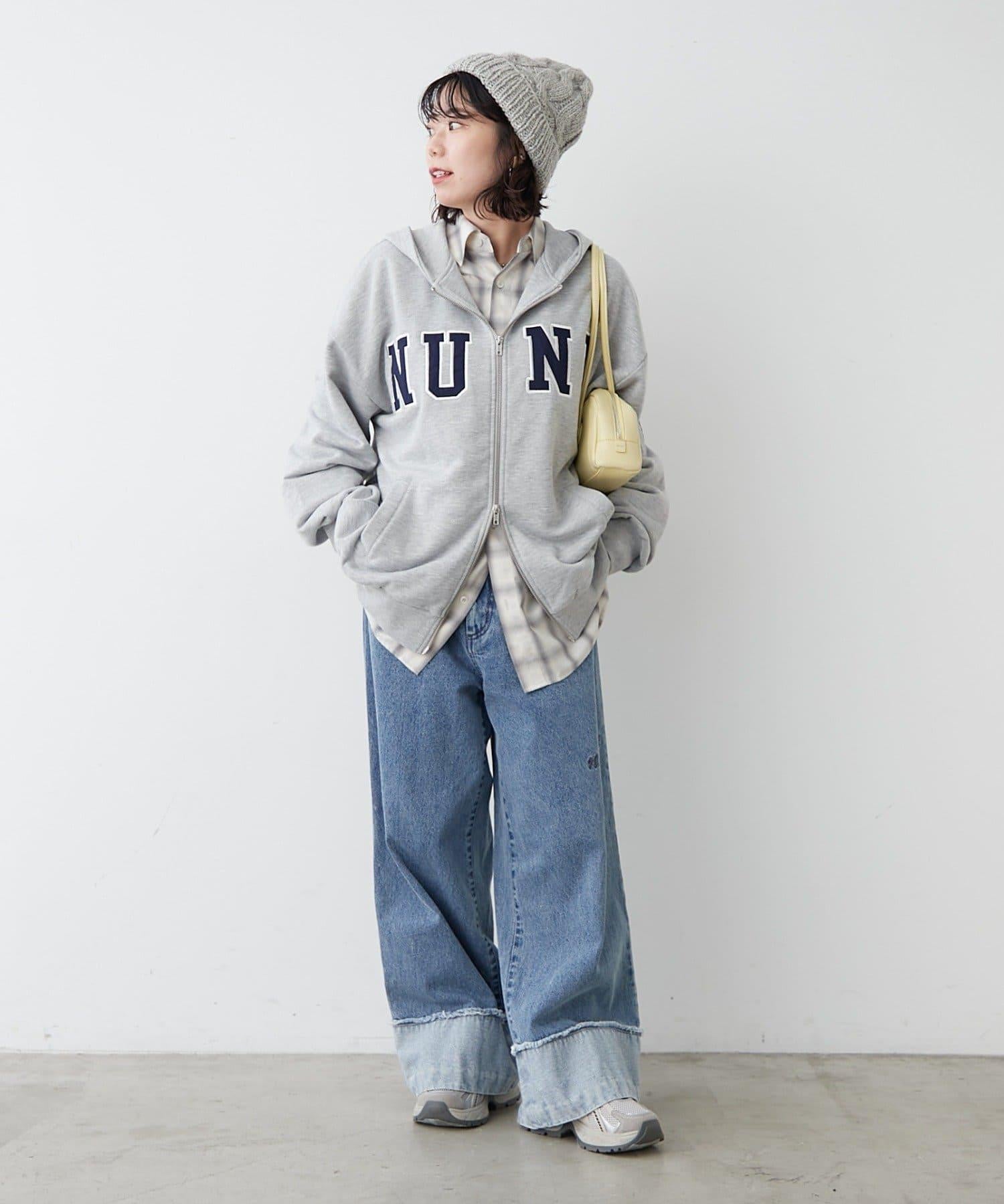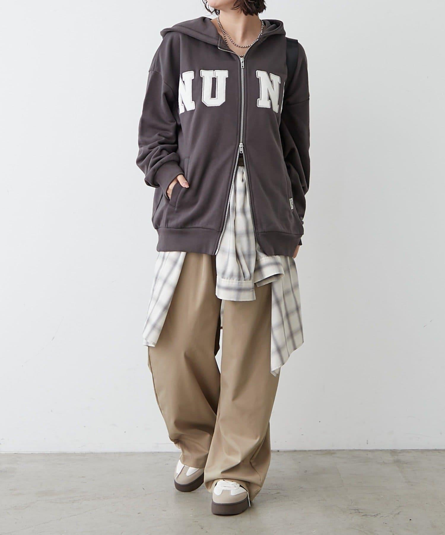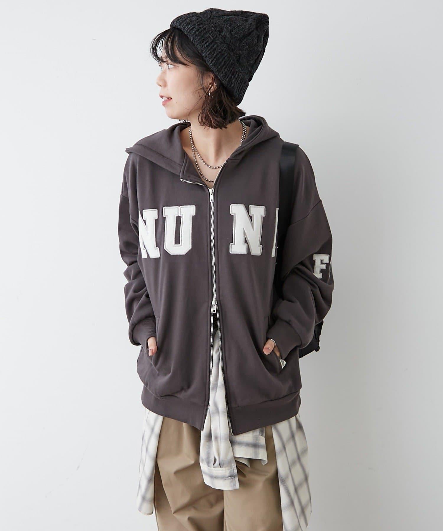 【NUNIFE】【可選2種長度】大字母印花連帽衛衣