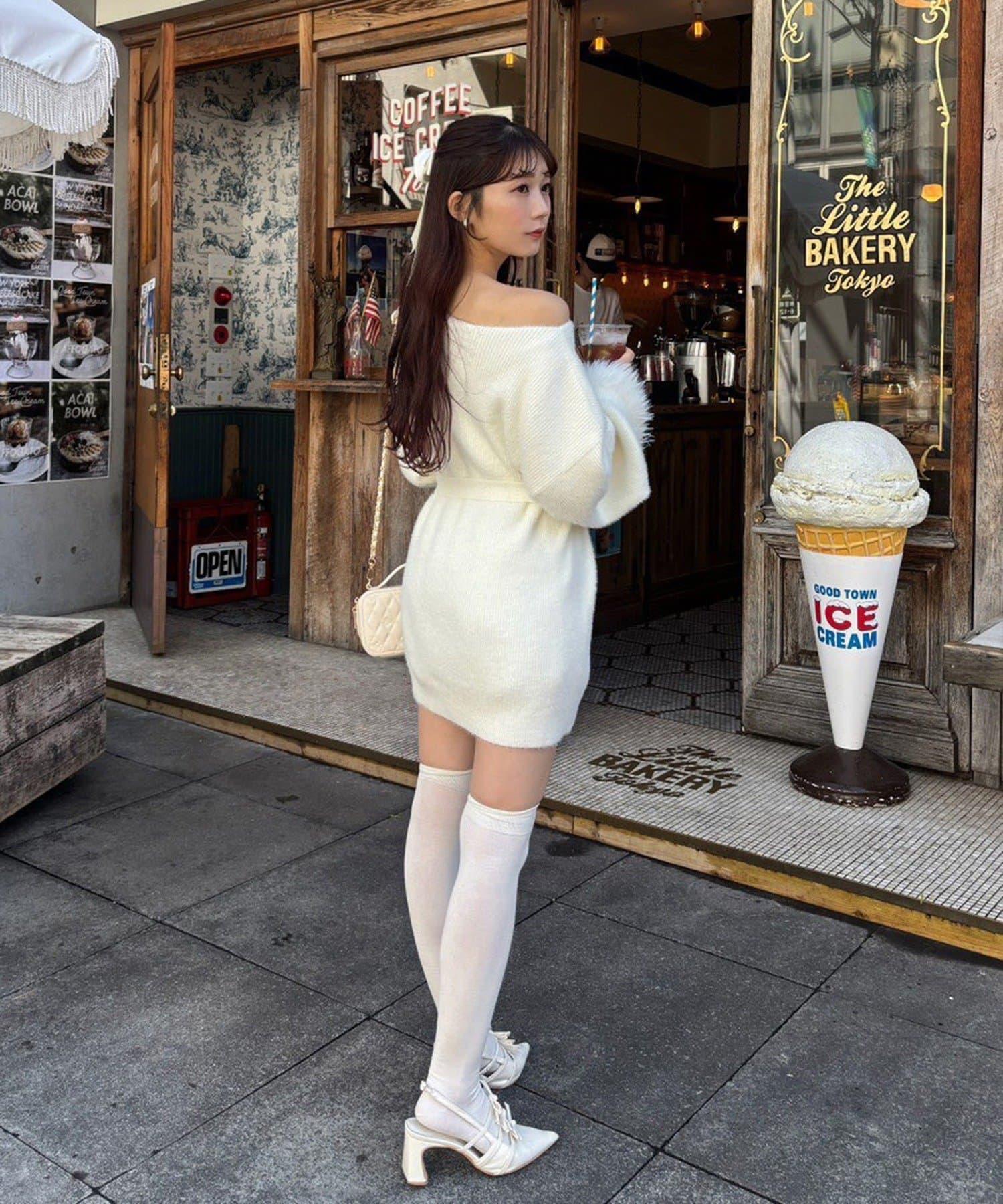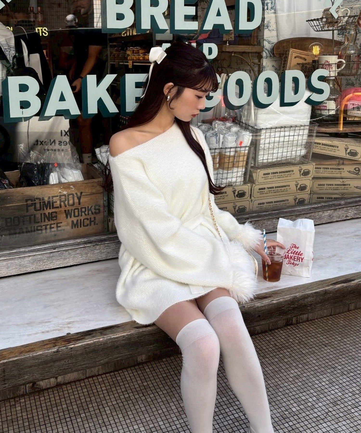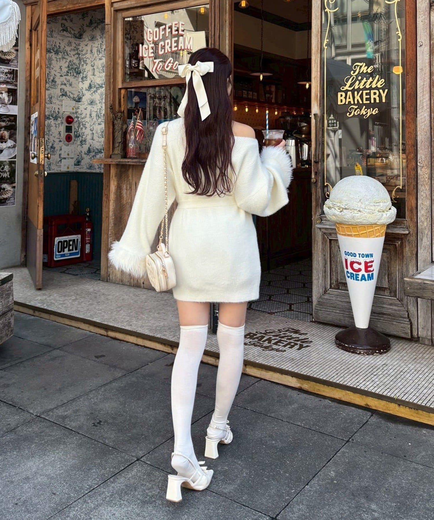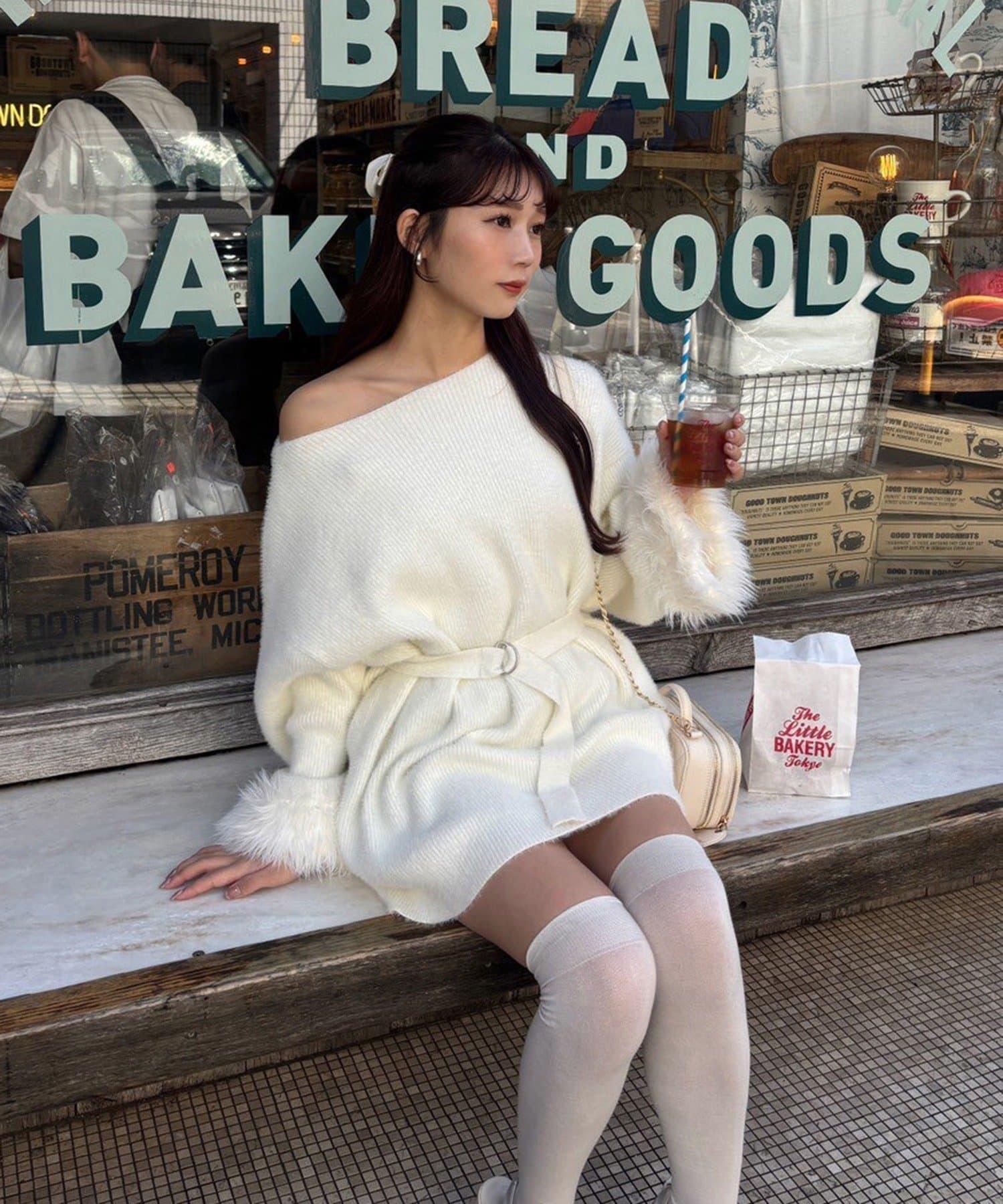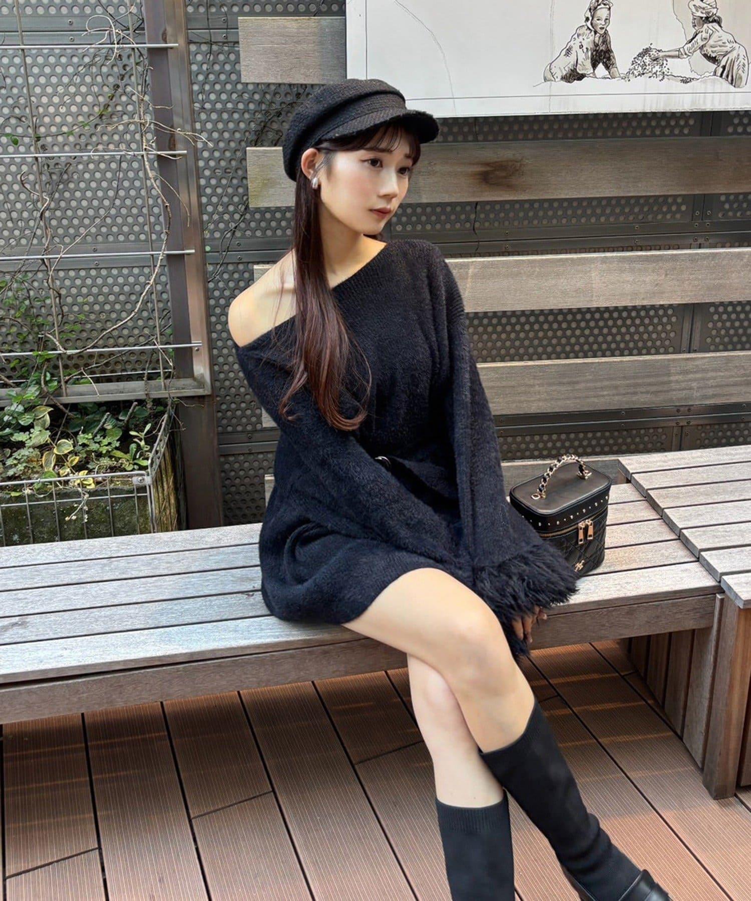 蓬鬆的皮草增強了這款針織連身裙的季節感。