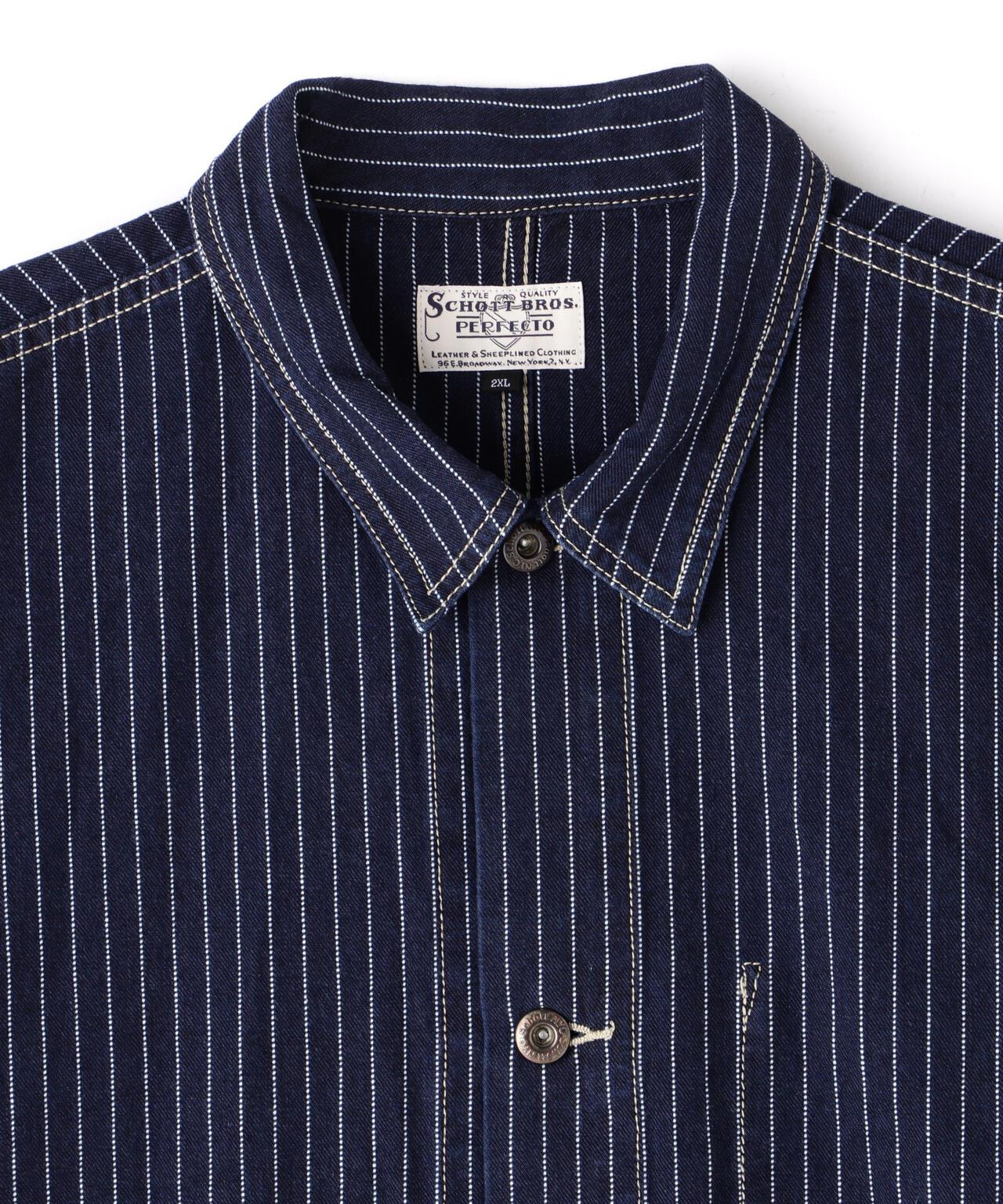 採用細條紋山胡桃木牛仔布製成,這是肖特公司獨創的面料。條紋是通過編織而非印花表現出來的。它越染越舊,越穿越老。長度短、寬度寬,剪裁注重美國典型的尺寸平衡。BLACK 採用硫化染料,ONE WASH INDIGO 採用靛藍染料,並加入弱加工,以產生擾動效果。肖特是騎手夾克的代名詞,其歷史始於 1913 年,由歐文-肖特和傑克-肖特兄弟在紐約創立。 👍初,它只是一家生產雨衣的工廠,但在 1928 年,它成為世界上👍家生產前拉鍊夾克的工廠。