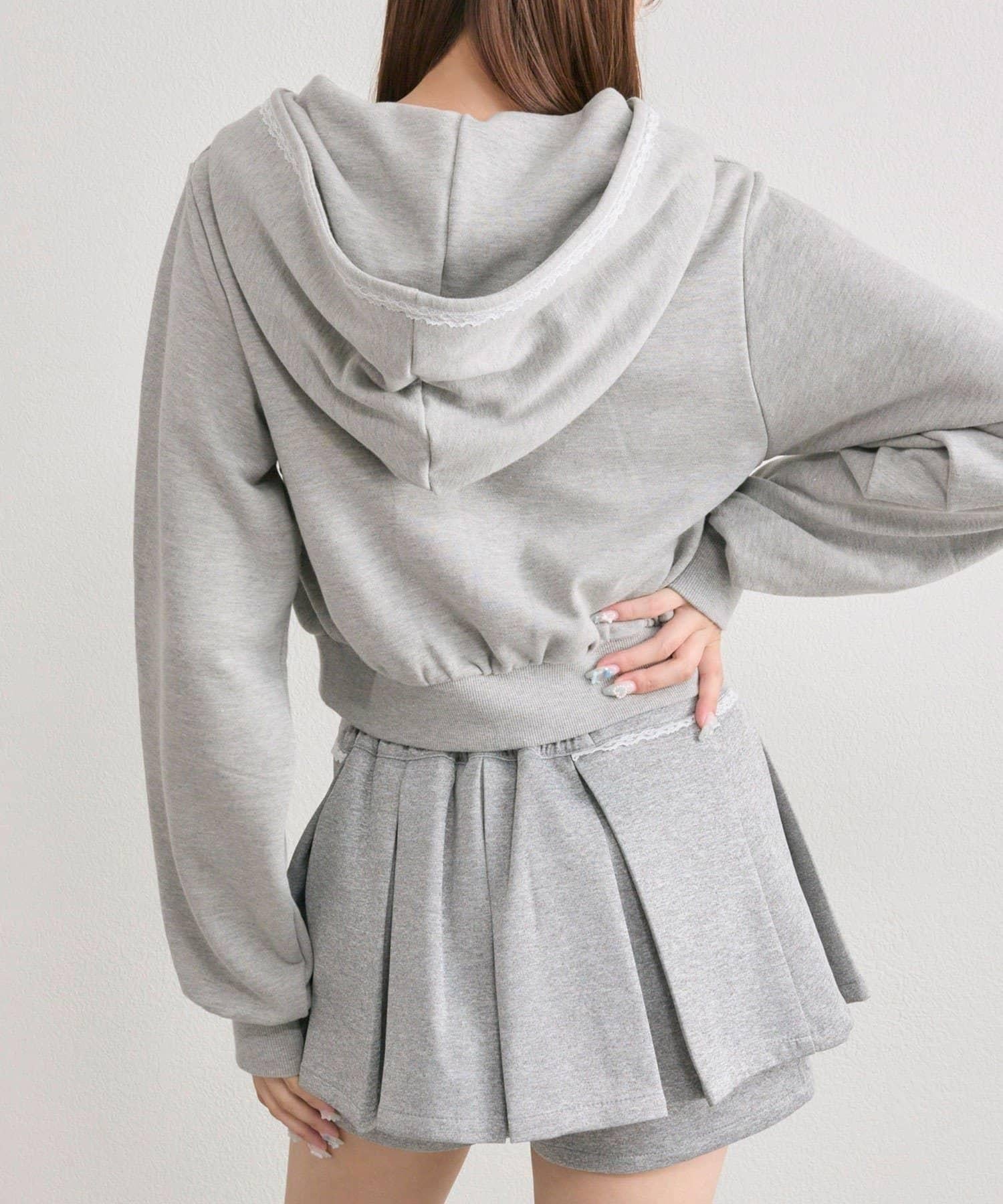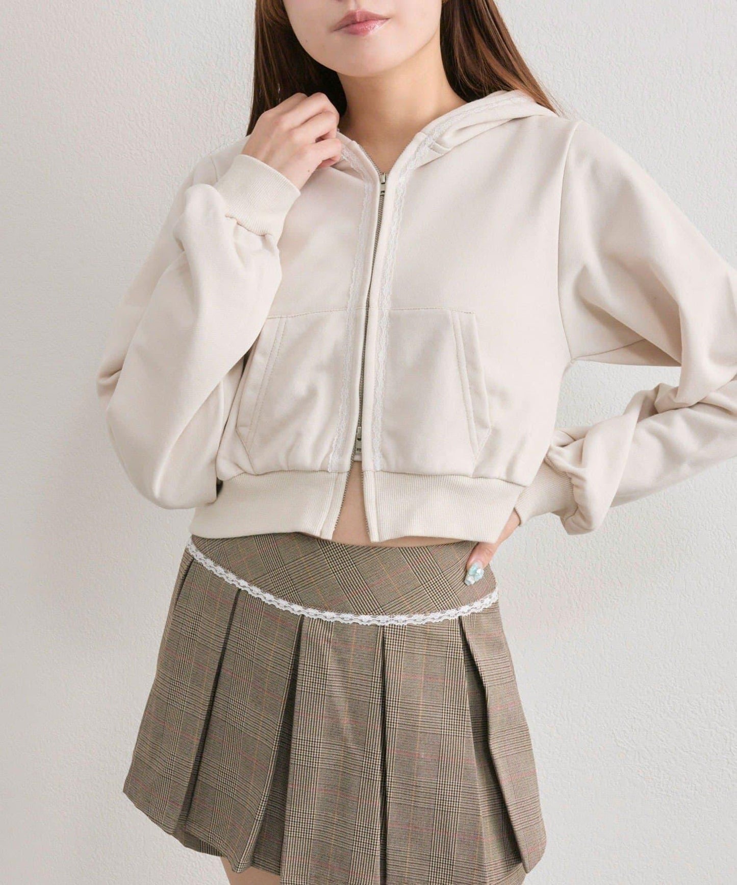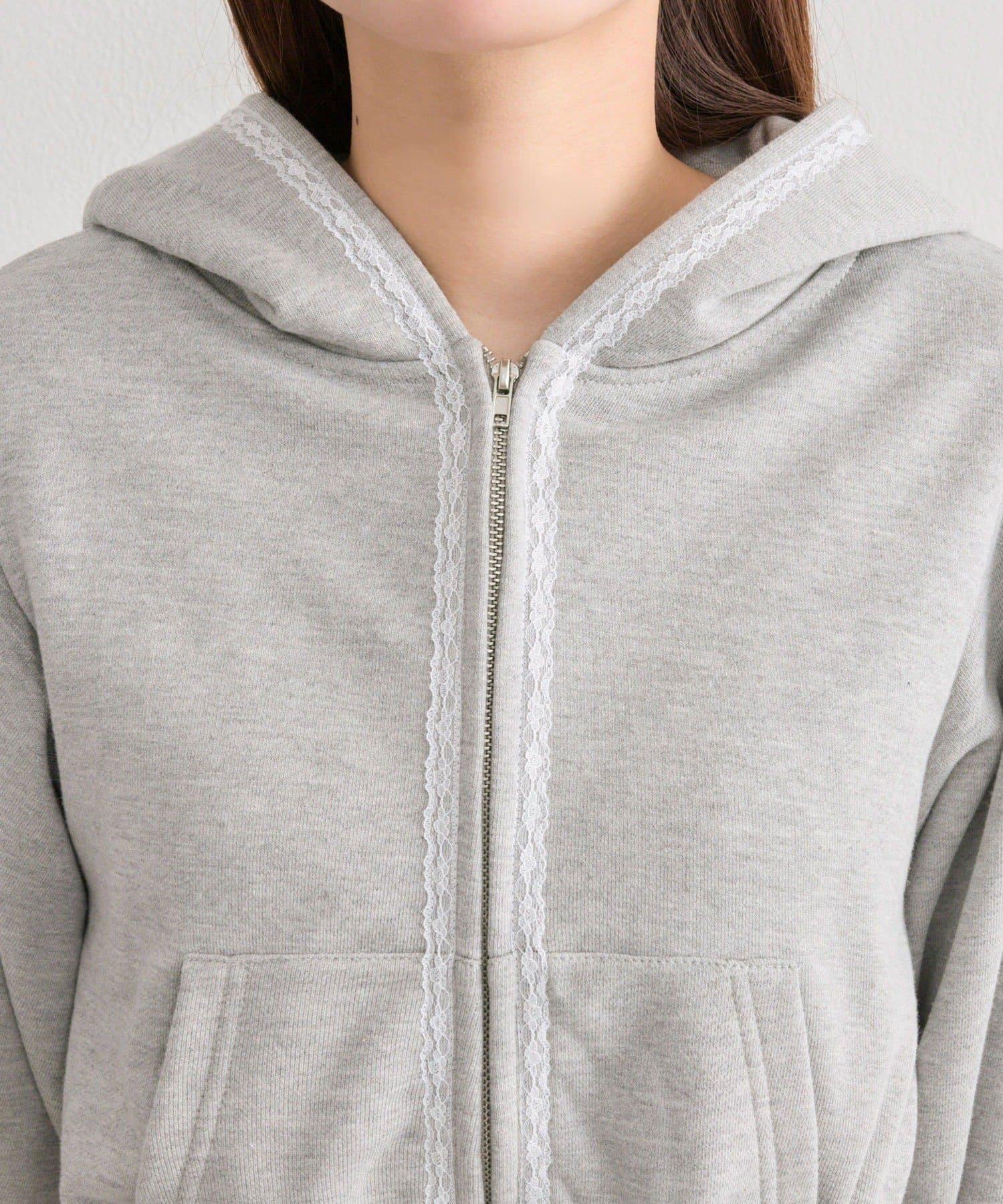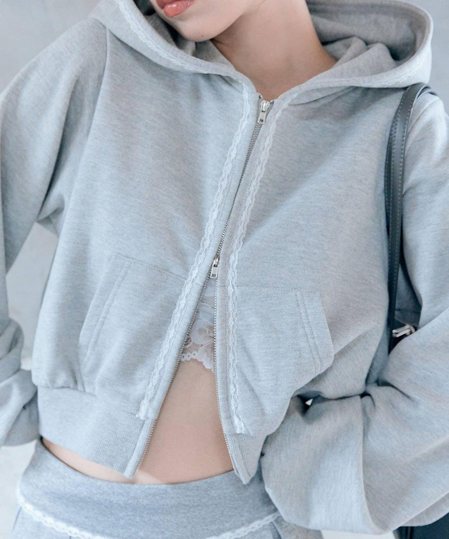 連帽上和拉鍊旁的蕾絲花邊為設計增添了微妙的甜美感。