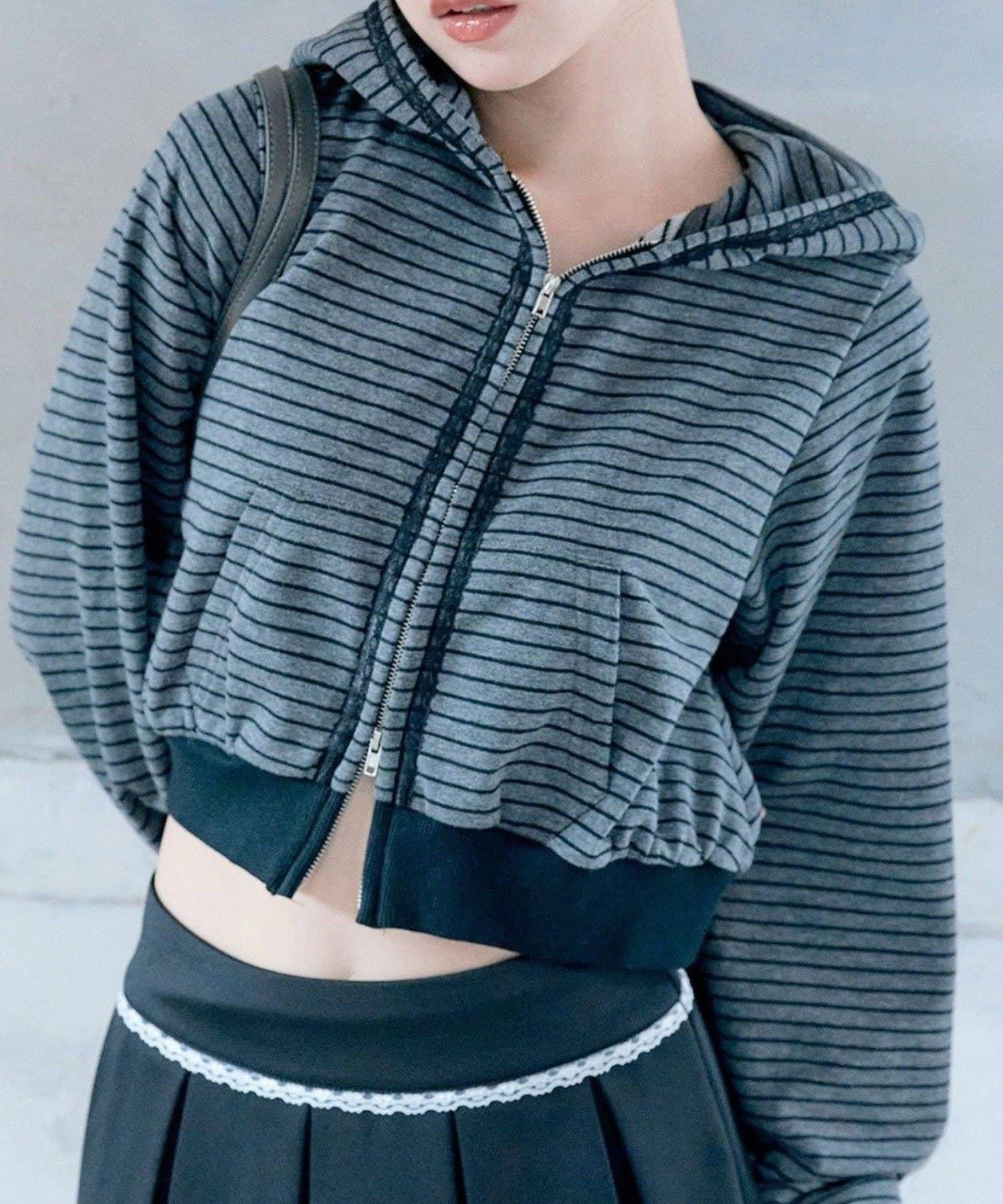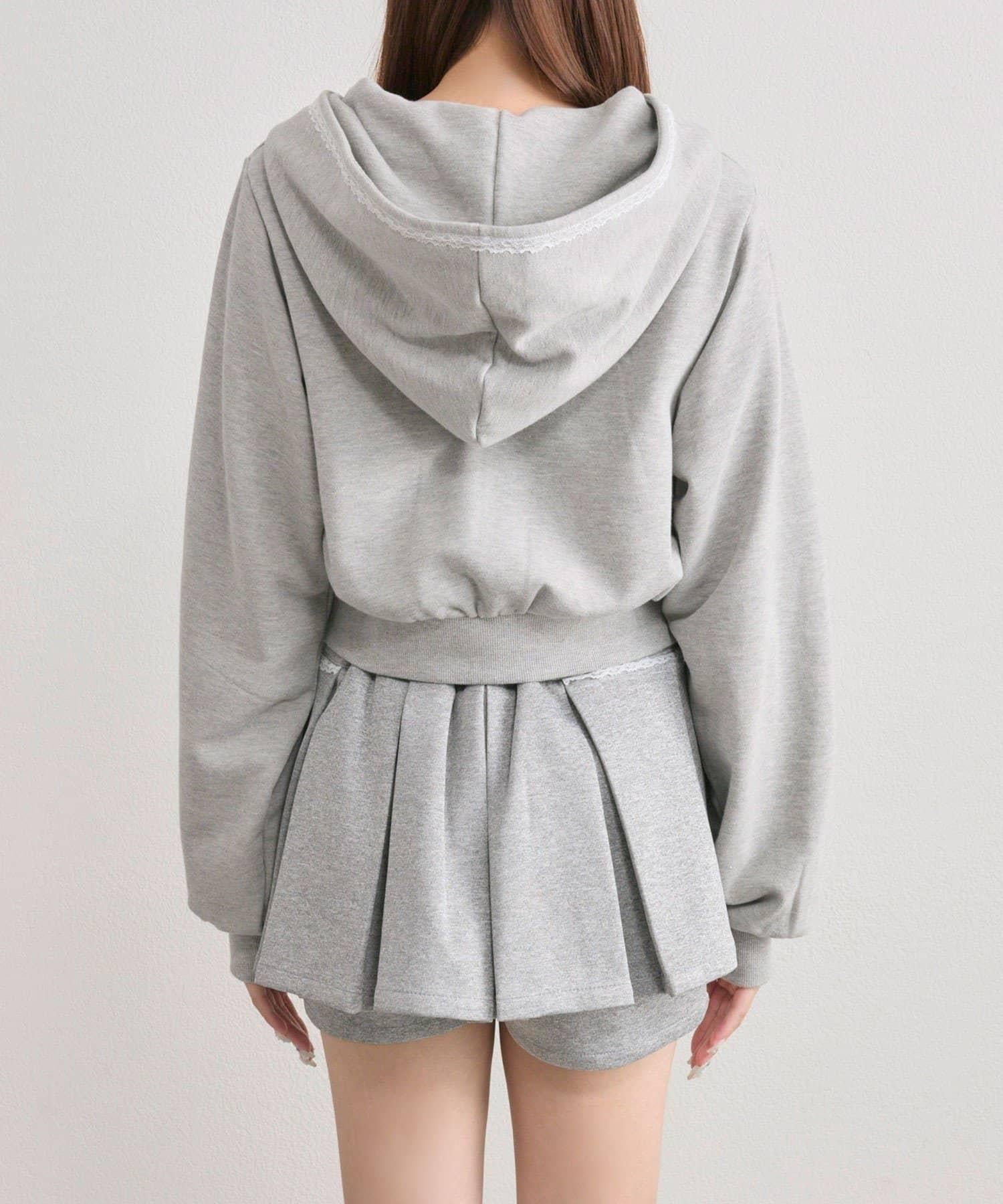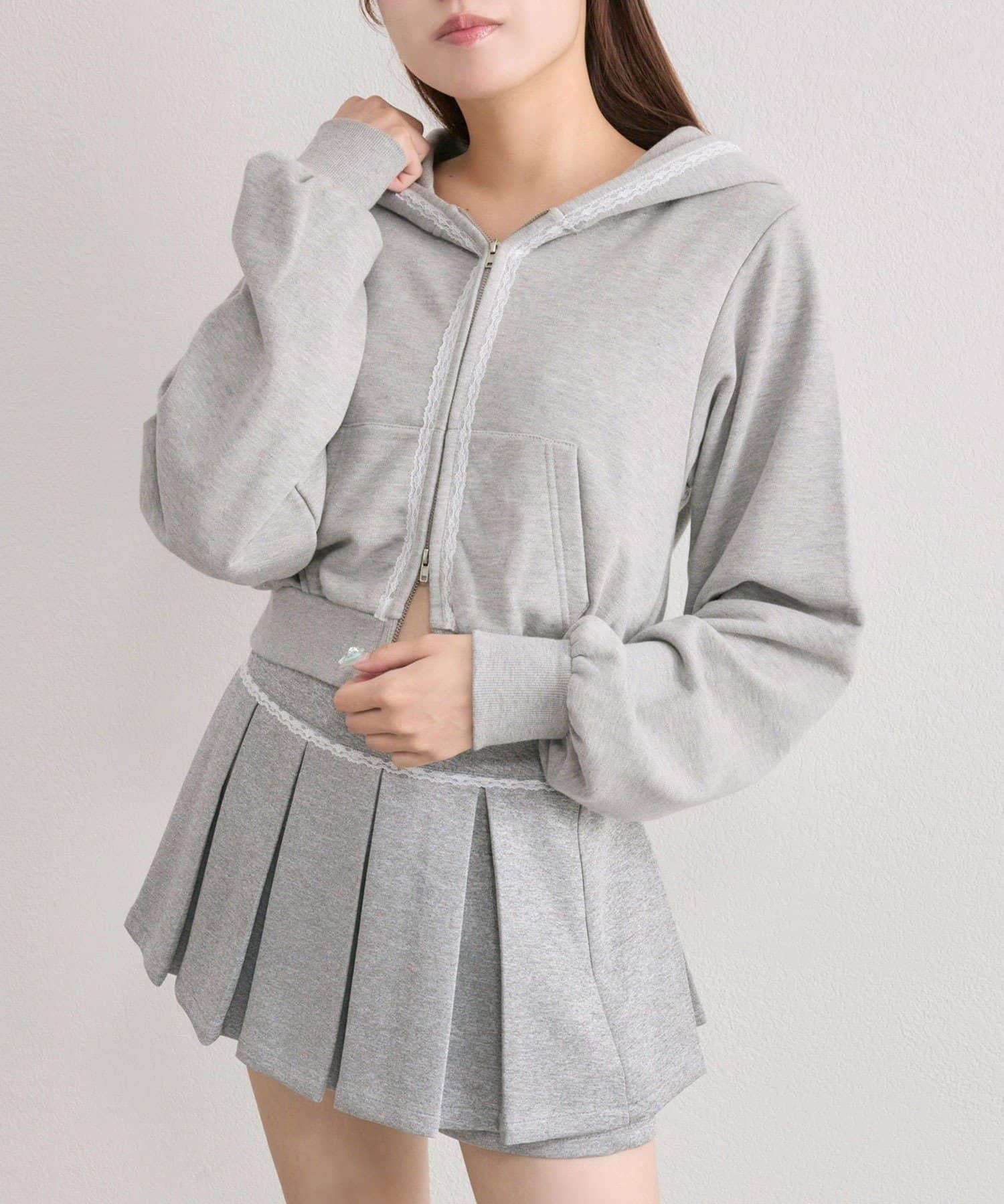 連帽上和拉鍊旁的蕾絲花邊為設計增添了微妙的甜美感。
