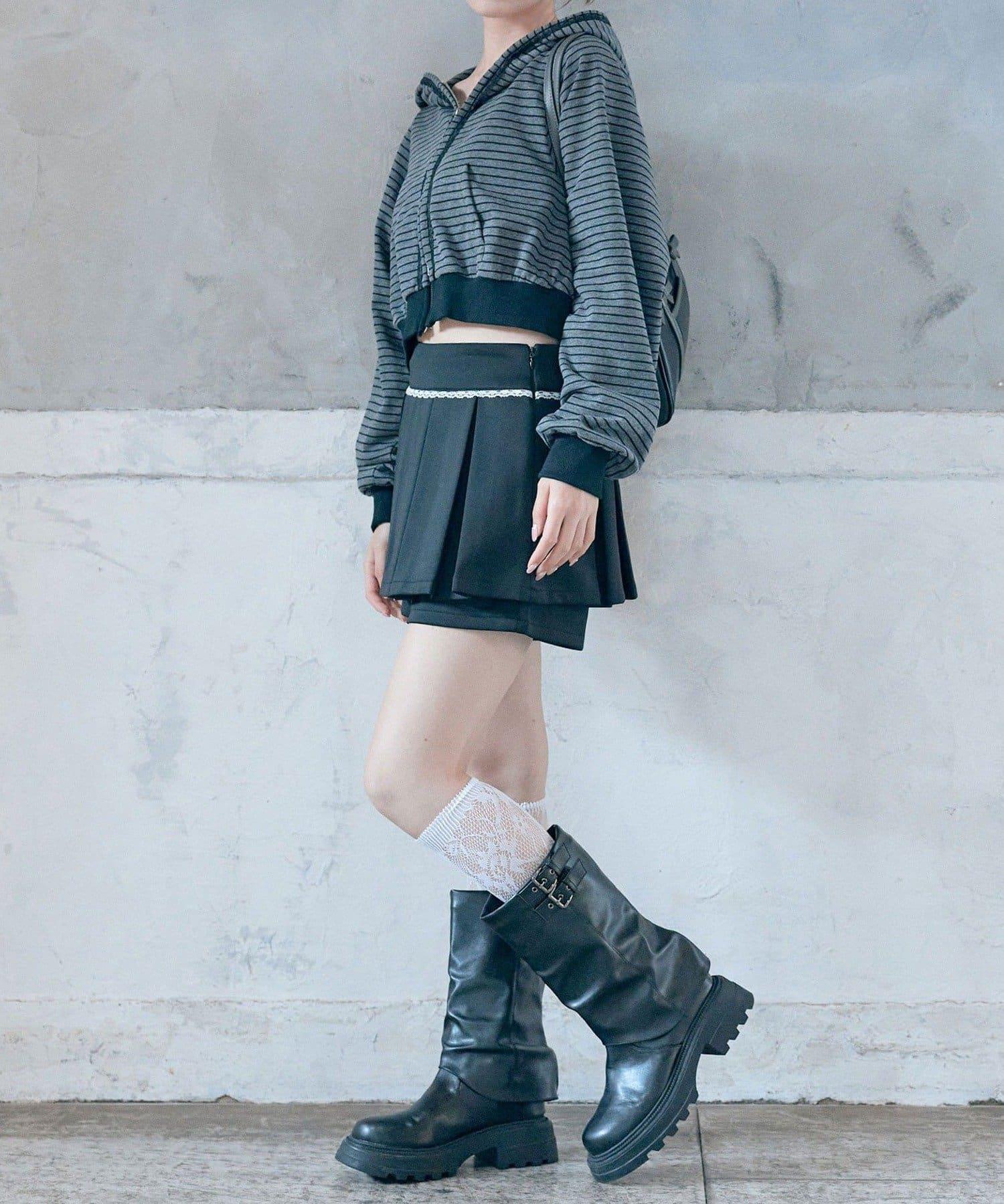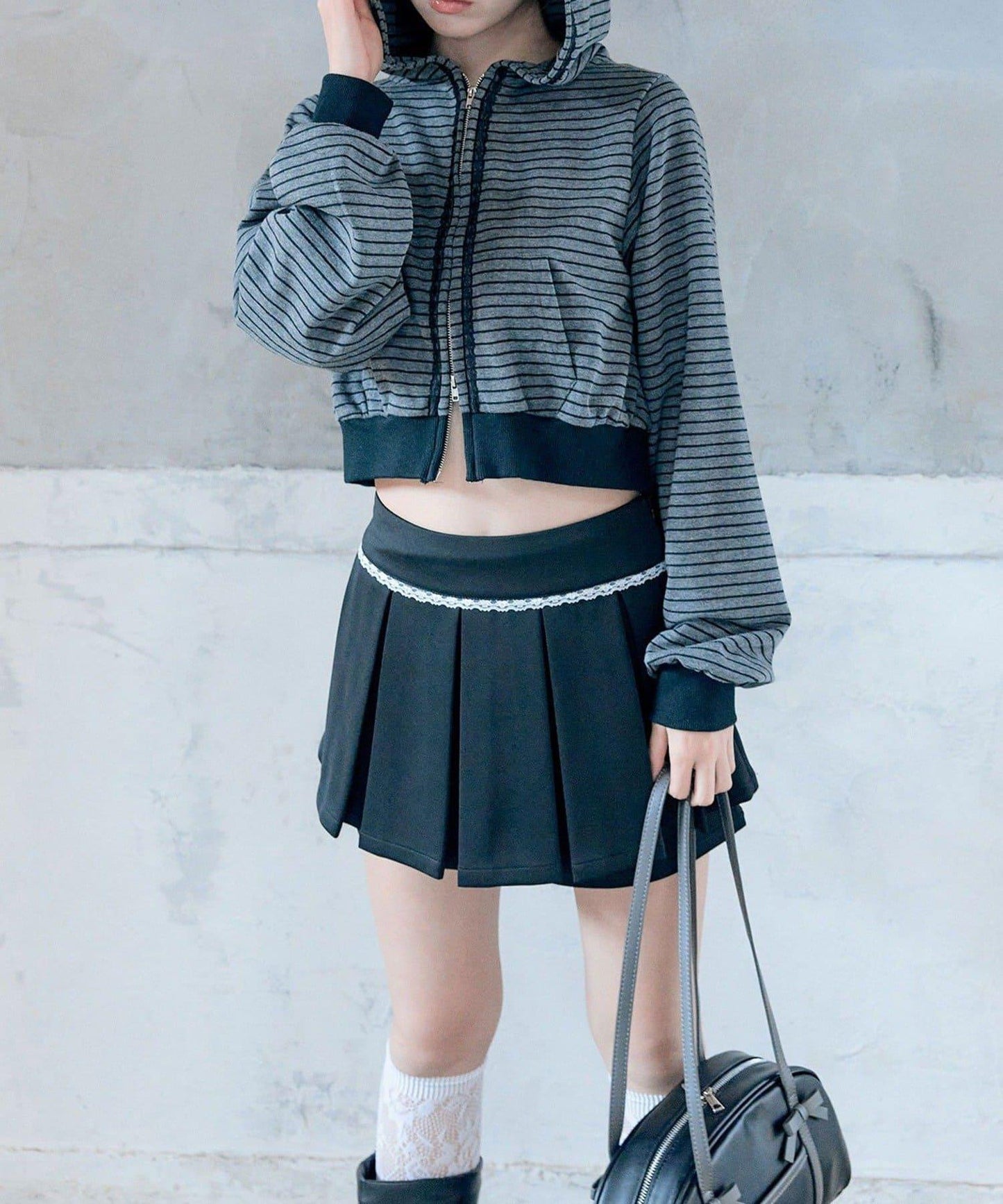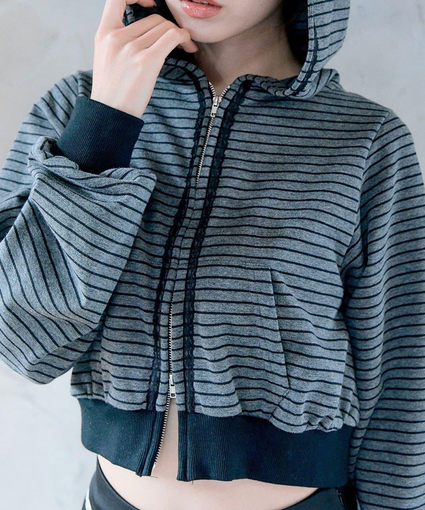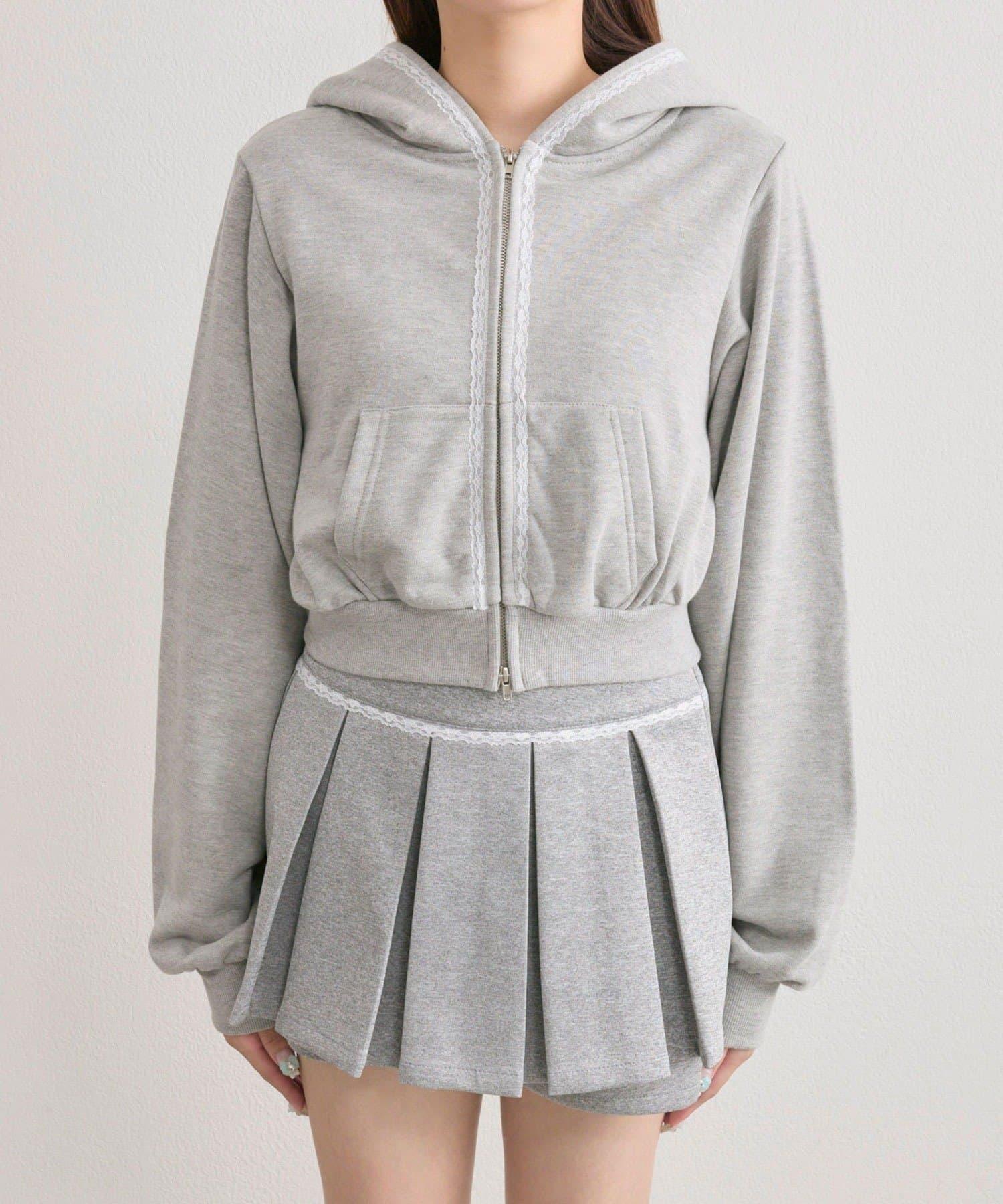 連帽上和拉鍊旁的蕾絲花邊為設計增添了微妙的甜美感。